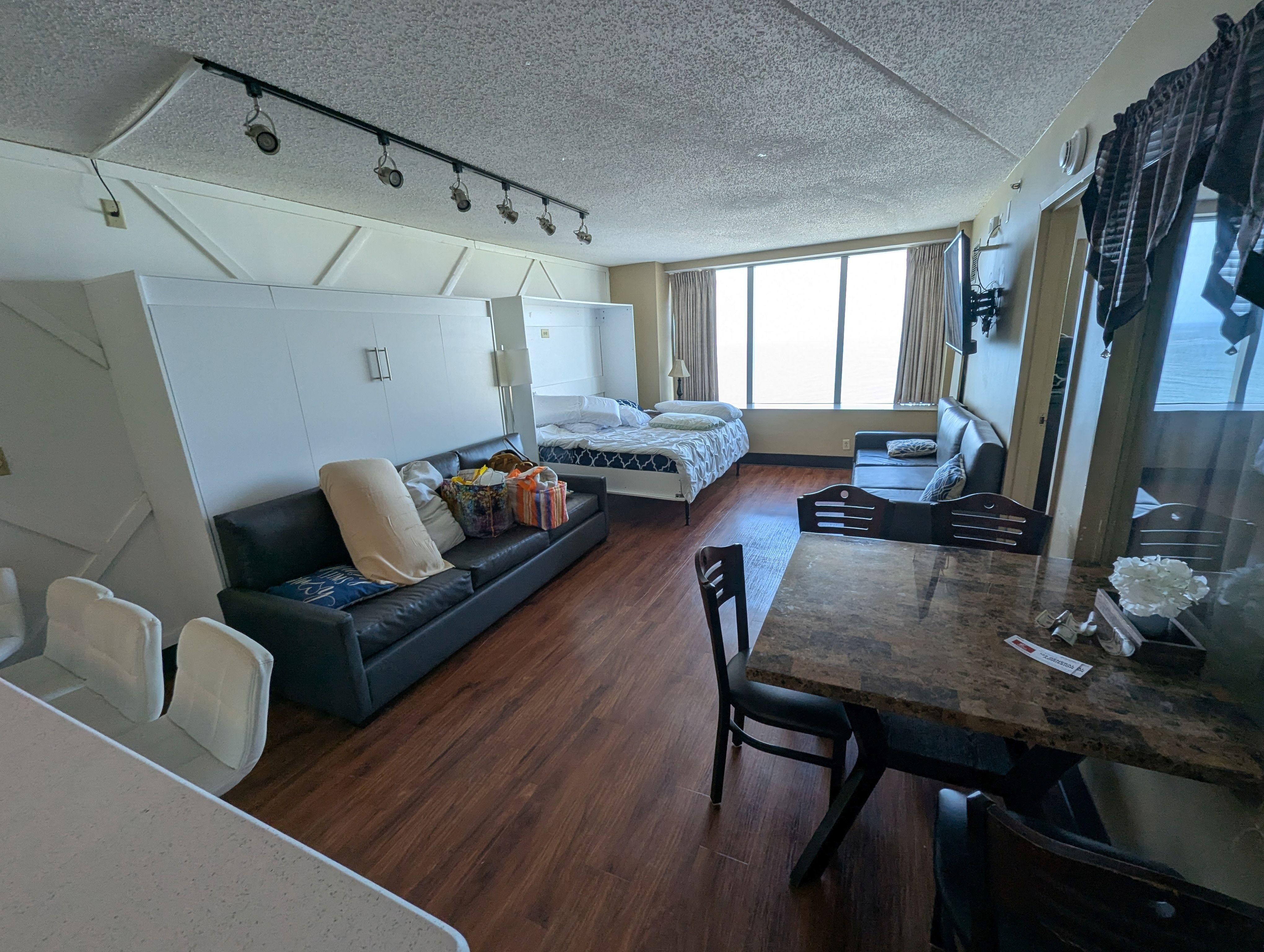 Overall, we had a lovely stay. The location was right on the boardwalk, so we could walk right outside and be in the hub of everything. It was also super nice to be so close to the beach. We liked the pool, and the view from our apartment was beautiful. The bed in the main bedroom was super comfortable, and the bathroom was nice and spacious. The kitchen was well stocked with all the necessities to eat and prepare food, although we didn't really use it. Also, when something came up, the host was quite responsive and willing to help us. We greatly appreciated that.