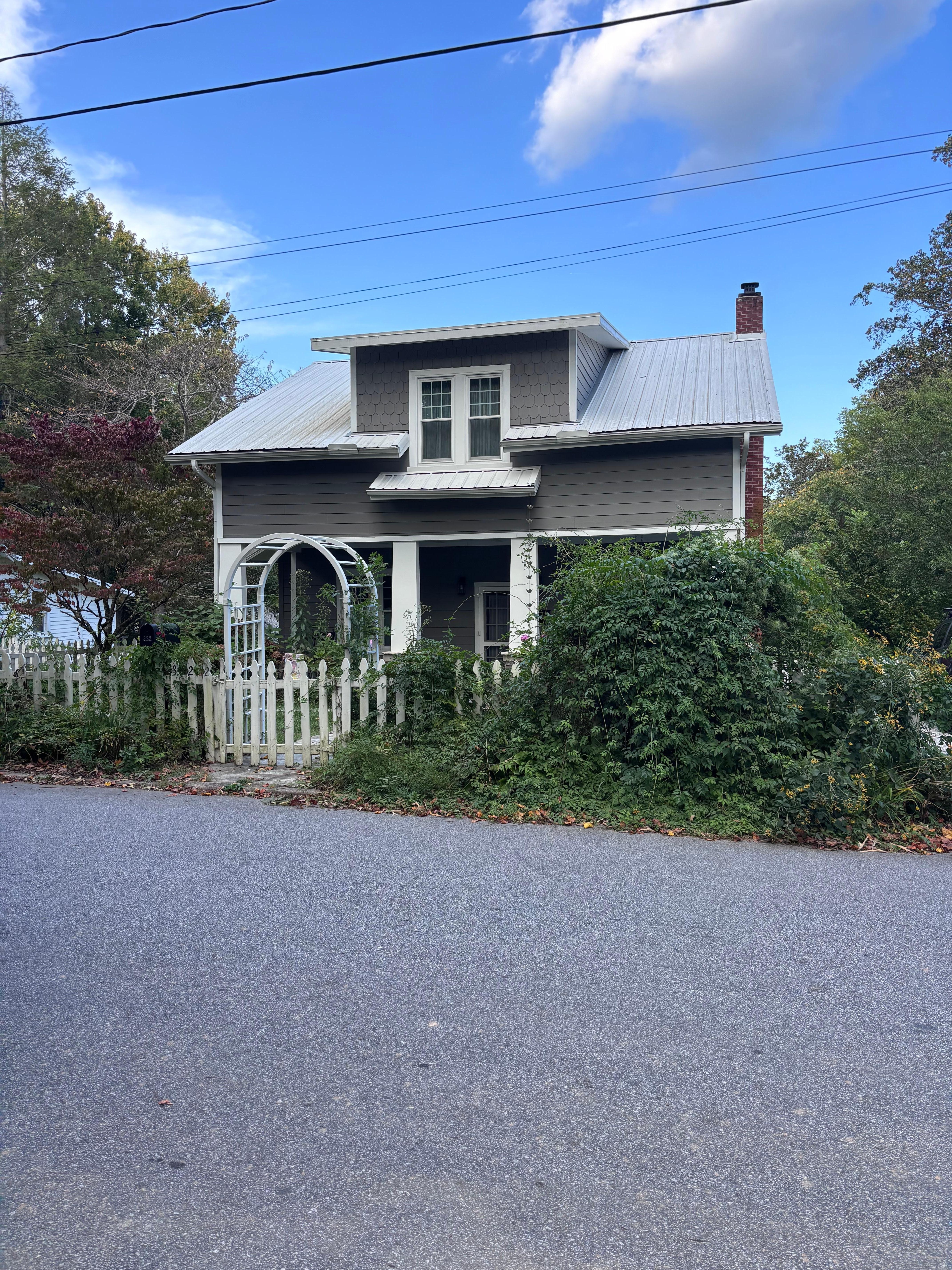 Wonderfully located, this three-bedroom, two-and-a-half-bath home offers unbeatable walking access to the heart of downtown Hendersonville. The updated interior features hardwood floors, two fireplaces, two clawfoot tubs, and a convenient half bath. Enjoy mornings on the covered porch or the new deck in the backyard, which also offers a firepit. Gather for movie nights in the sunlit living area, appointed with a flatscreen TV and a gas fireplace. The updated kitchen has a full suite of appliances, butcher block countertops, and ample cookware. When it's time to eat, the kitchen bar seats three, and the table seats four.