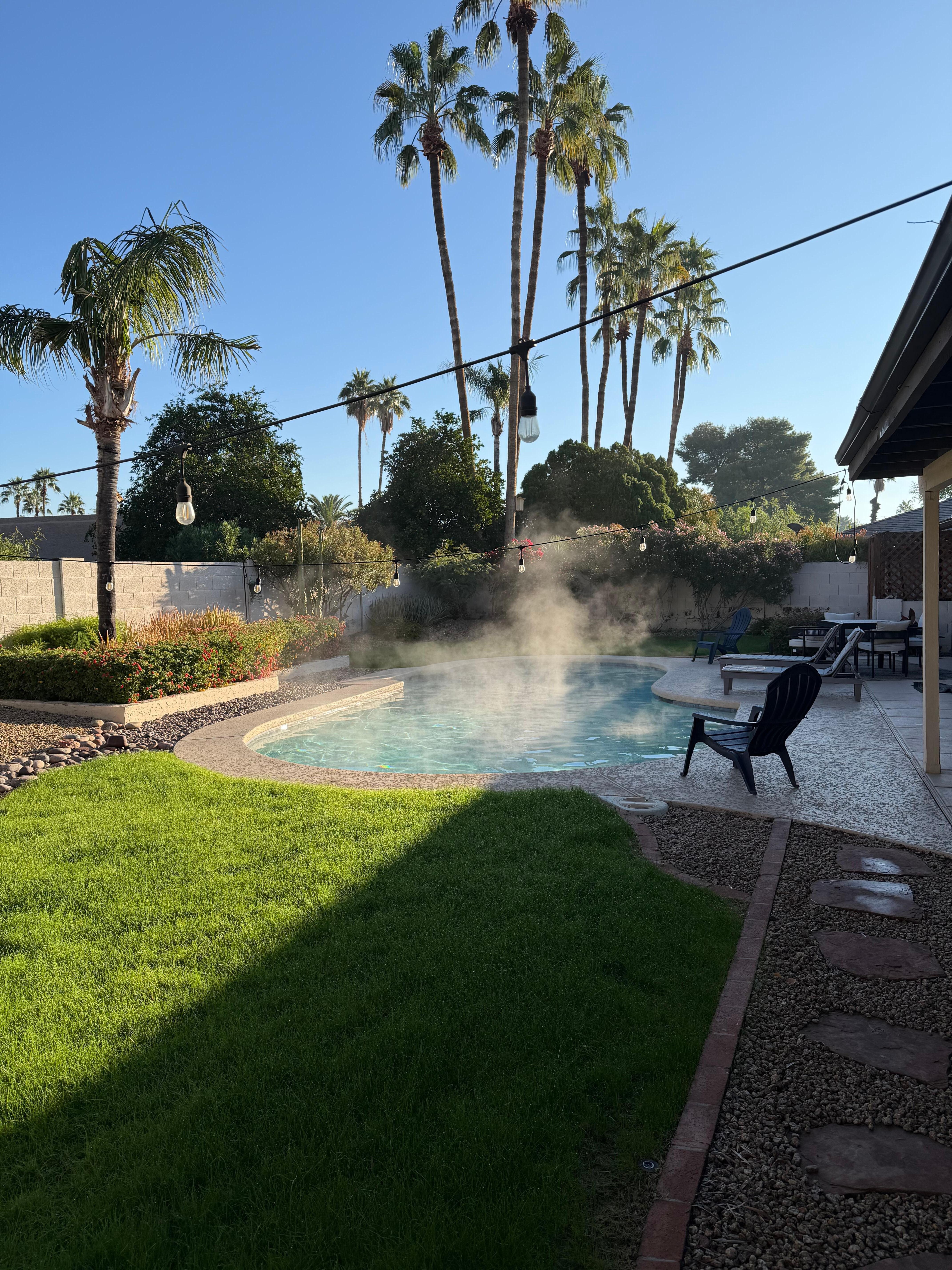 Splash. Thinking of booking October 15-April 15? The weather in Arizona can be quite volatile this time of year. There may be soaring heats over 100 degrees or temps that can drop below 50 degrees. This home is equipped with a heat pump, reel and cover. The heat pump that is responsible for heating the pool is at full efficiency if the weather stays above 50 degrees allowing the pool to get to a comfortable swimming temp of 85 degrees. Should you want the pool heated, please book with that option now. As your reservation date approaches, should you find the temps heading below 50 degrees you can make a final decision if you wish the pool to be heated based on weather conditions. We can refund the pool heat fees should you be concerned about not being able to enjoy this amenity as intended.