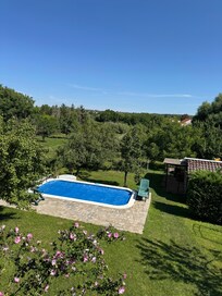 For 7 (max 8) persons. In a native environment with a large garden. Possibility of tasting with Hungarian specialties.(Additional costs) The center can be reached by public transport within approx. 60 minutes.