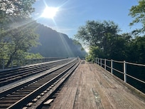 This vacation rental is located in the heart of downtown historic Harpers Ferry and in the middle of Harpers Ferry National Historical Park. It offers fantastic views, historic charm and significance, and prime location. It is amongst museums, shops & restaurants, steps from the Potomac & Shenandoah Rivers, the C&O canal towpath, Jefferson Rock, Virginius Island, the Appalachian Trail, Maryland Heights and Loudoun Heights. Hollywood Casino at Charles Town Races is a short drive away, as are a number of Virginia Wineries and Harpers Ferry Brewing. There is a large porch that looks onto the mountains, the Potomac River, and Harpers Ferry gap. Kids (and train-loving grown-ups) love to watch the trains pass on the very active rail line and you can even ride the train to this destination, as it is in walking distance to the Harpers Ferry train station, which services both MARC and AMTRAK. The house is bicycle friendly (there is ample space inside to store bikes), and being within walking distance to the C&O canal towpath, is a perfect spot for towpath riders. There are fantastic hikes, from easy to strenuous, right outside the front door (no need to drive). The house offers an open floor plan perfect for larger gatherings, and the whole home is clean, nicely furnished and maintained. We strive for customer service and try to provide everything that a guest might need, including detergents and hand soaps, sugar, salt, pepper, basic spices, coffee filters, toilet paper, papertowels, napkins, etc., etc., etc. Our guests tell us over and over that this is the most well-stocked vacation rental that they have ever visited.