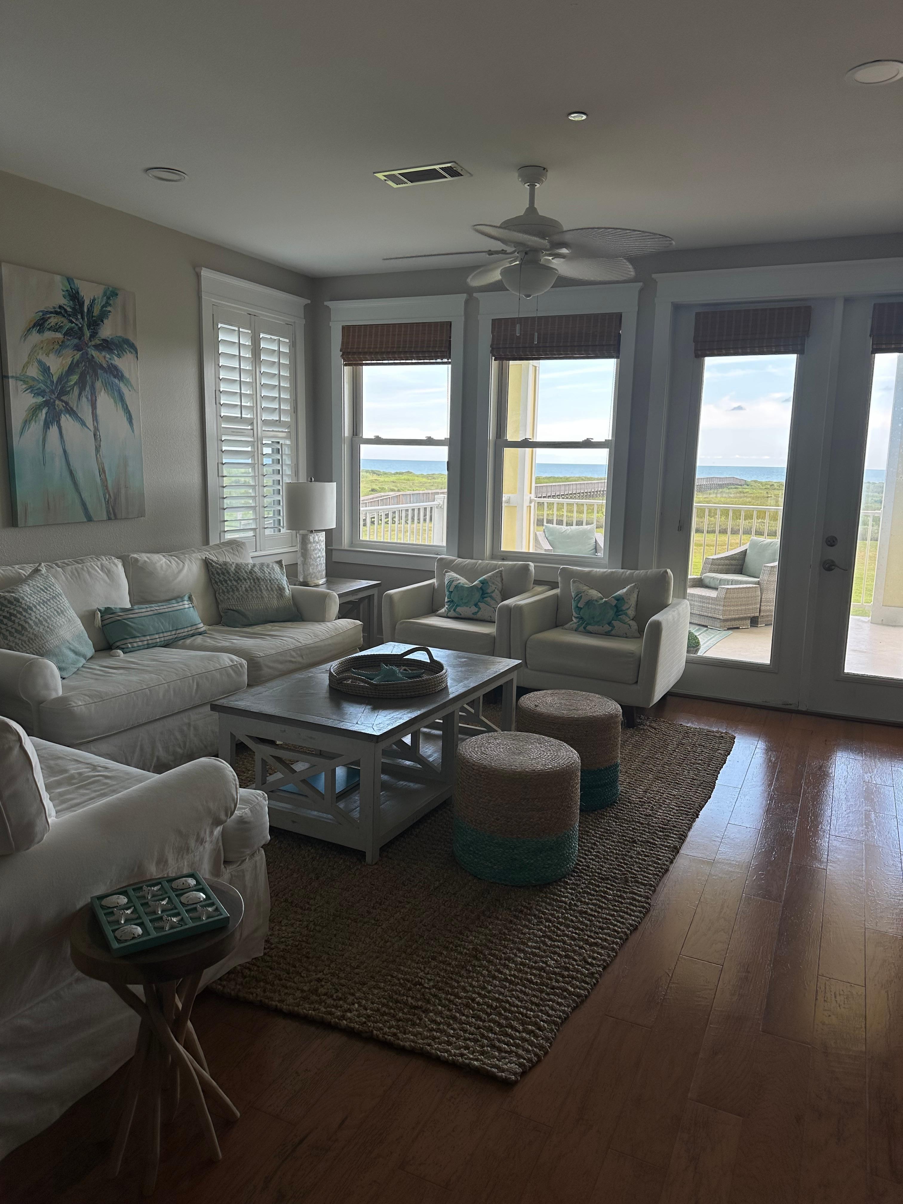 Our condo has 2 spacious living areas in relaxed yet luxurious "Boho Beach Coastal" style. The living room has comfortable slipcovered furnishings and a 70" smart tv to delight anyone ready for movie night. The second bonus living area has a full sized sleeper sofa, a game table, and a large 55" smart tv. A wide variety of games, puzzles and cards are available for guest use. We also have a Wii gaming console with many fun Wii games for guest use! All the bedrooms have tv's as well and all 5 in the condo are smart tv's with Xfinity, wifi and premium movie channels.