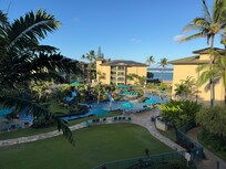 The resort is located at the 1/2 way point between Poipu on the south and Princeville on the north with the airport just 10 minutes away. This location offers some of the best shopping & restaurants on the island and is also within a short drive to hidden beaches such as Tunnels & Secret Beach. For those that don't want to explore, the resort is fully self contained and includes a restaurant on the beach which serves drinks & food at the pool and spa areas, there are several gas BBQ areas for your use and Safeway food store is located across the street. Shopping and other restaurants are located within walking distance. The resort offers elevators for access to each building & each condo has central air conditioning, which is hard to find in many other resorts.