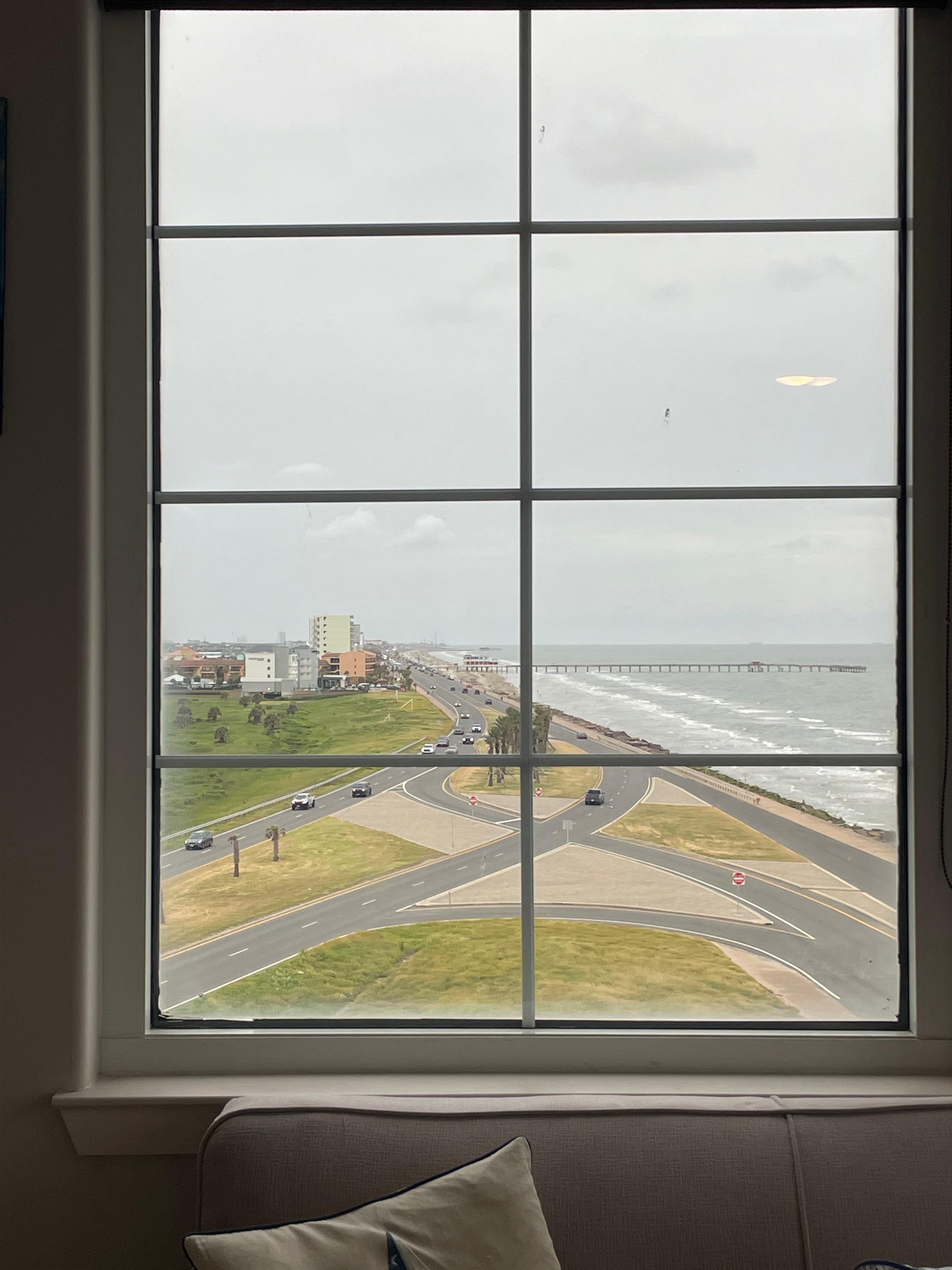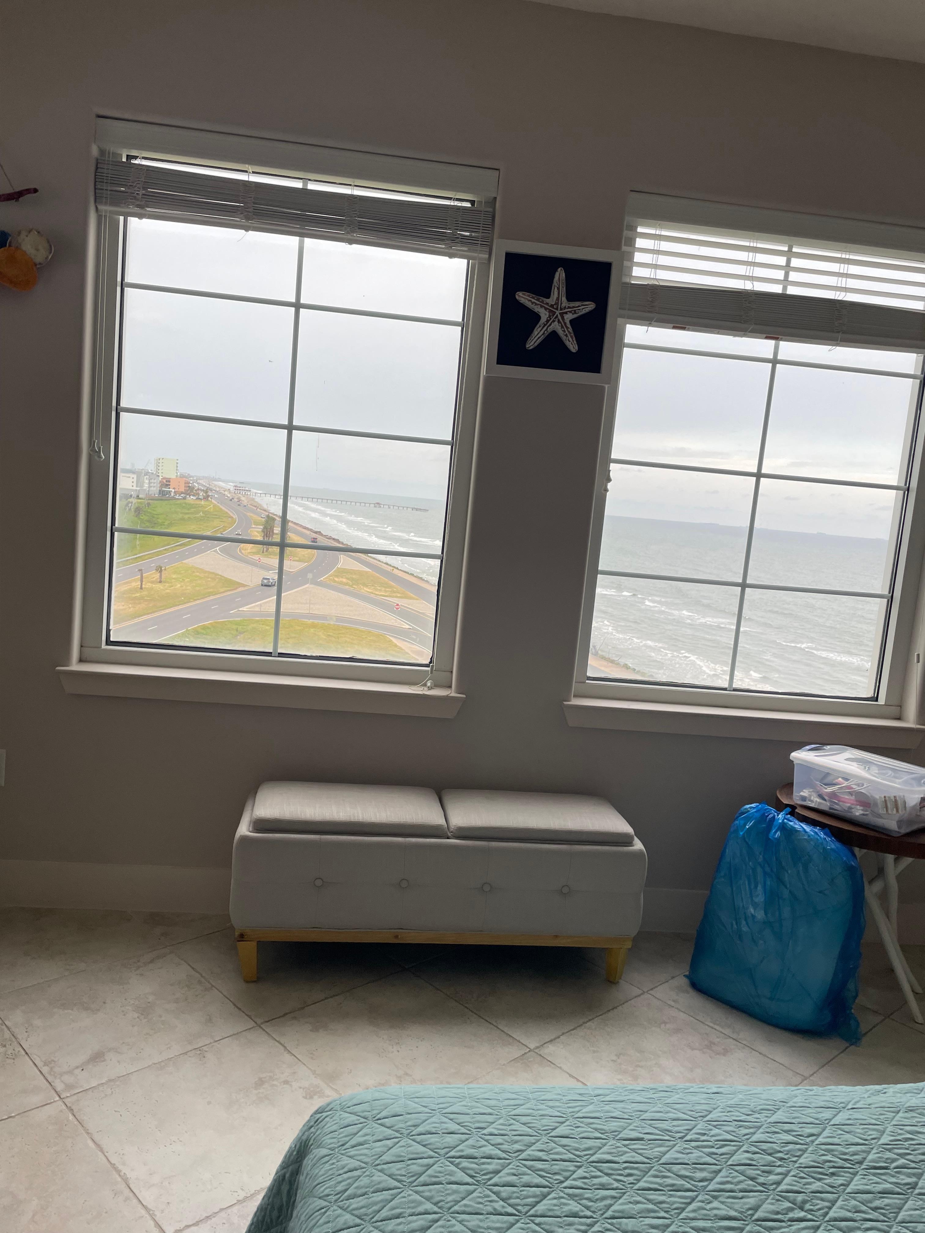 This very special property has a curved wall of glass that surrounds the spacious open concept living/dining/kitchen area with direct views to the Gulf of Mexico as well as the view of the evening fireworks that take place at Moody Gardens on summer weekend nights and other special occasions. This unit boasts a view from every living area including both bedrooms! Updated, custom kitchen with large island, custom cabinetry and stainless appliances. A view to the water while you prepare the spectacular "fresh catch" of the day. The primary bedroom features king size bed and en suite bath with walk in shower and flat screen television, The second bedroom has two twin beds, flat screen television and a gorgeous view of the water. Second bath has deep soaking tub to relax after a long day enjoying all of the amenities of The Diamond Beach Resort.