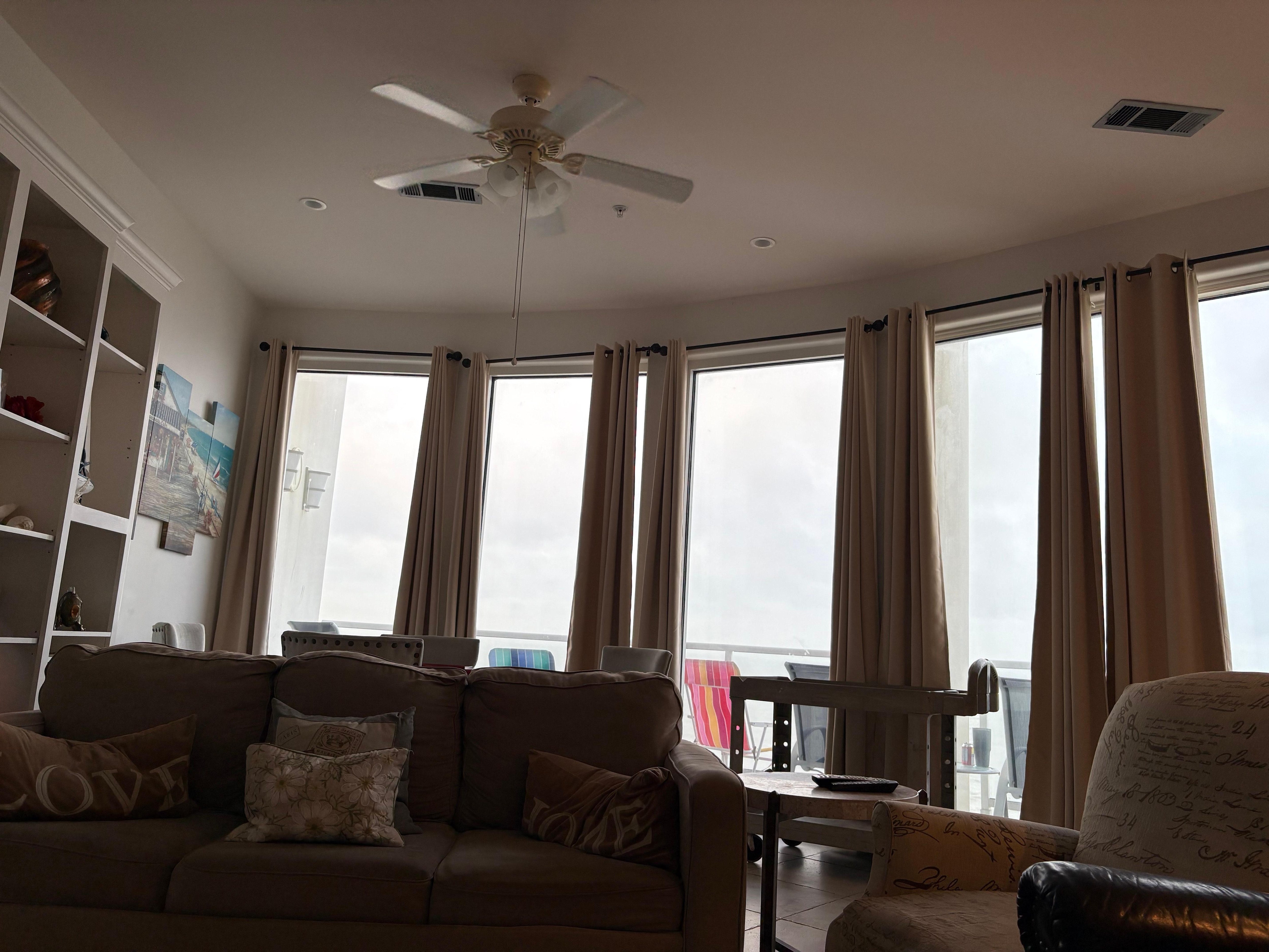 Perfect for up to eight guests to relax in coastal comfort, this spacious condominium provides breathtaking sunrise and sunset views of the Gulf of Mexico. Inside, wall-to-wall windows let you glimpse the palatial swimming pool, lazy river and shimmering Gulf whether whipping up a meal in the gourmet-inspired well-appointed kitchen, savoring a bite at the round dining table or curling up with a good book in the leather club chair. Head out the sliding glass doors to the long, private balcony. Furnished with comfortable chairs and side tables, it’s the perfect spot to immerse yourself in the sights, sounds and smell of the coast while enjoying a fresh cup of coffee in the morning or cocktails during a sunset happy hour. Sit long enough and you’re sure to catch the wonderous flight of the brown pelican as it flies by with an impressive six-foot wingspan!