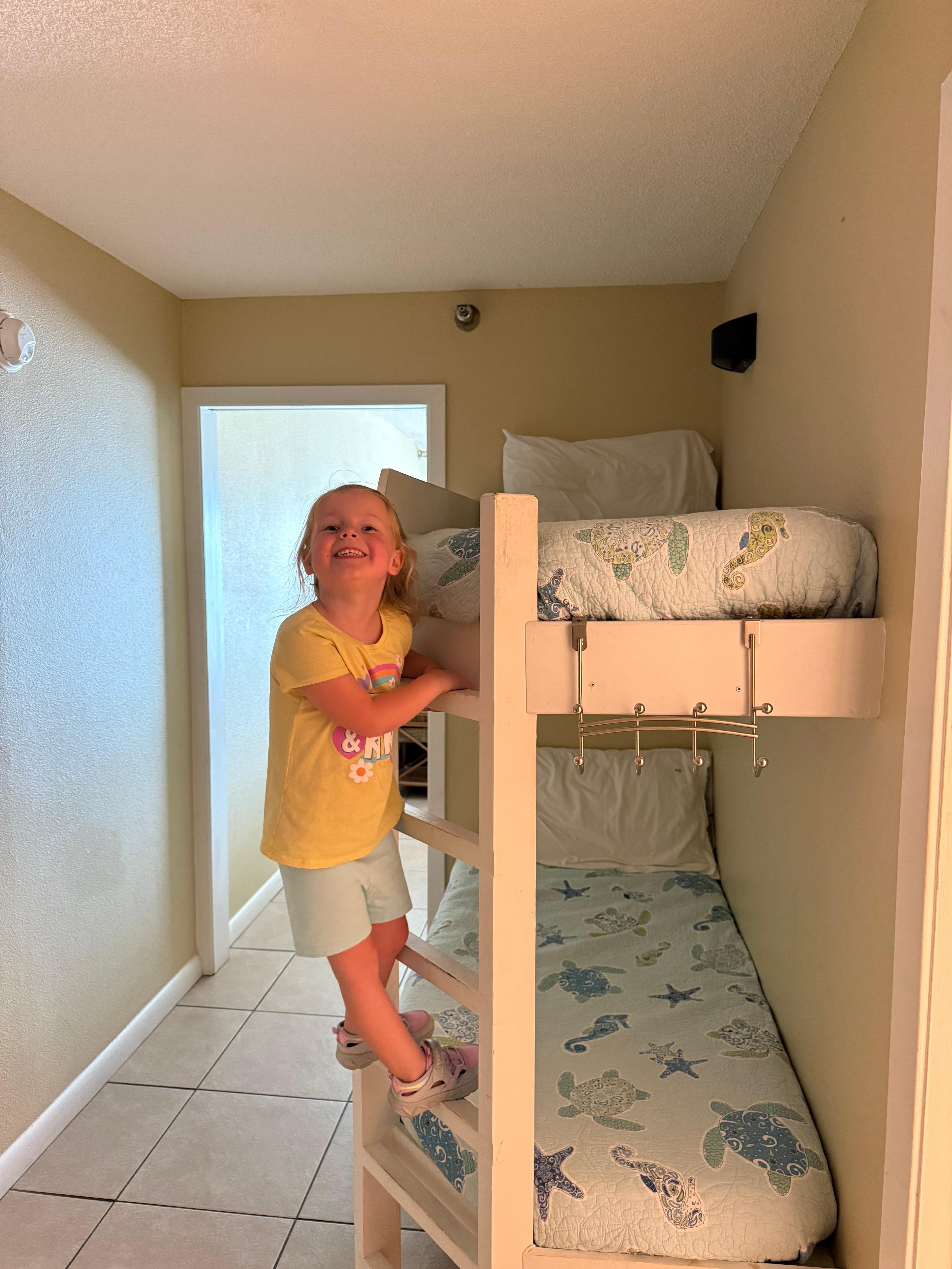 ** Bunk beds (for children only, please) can be separated from the main living area by a pocket door **