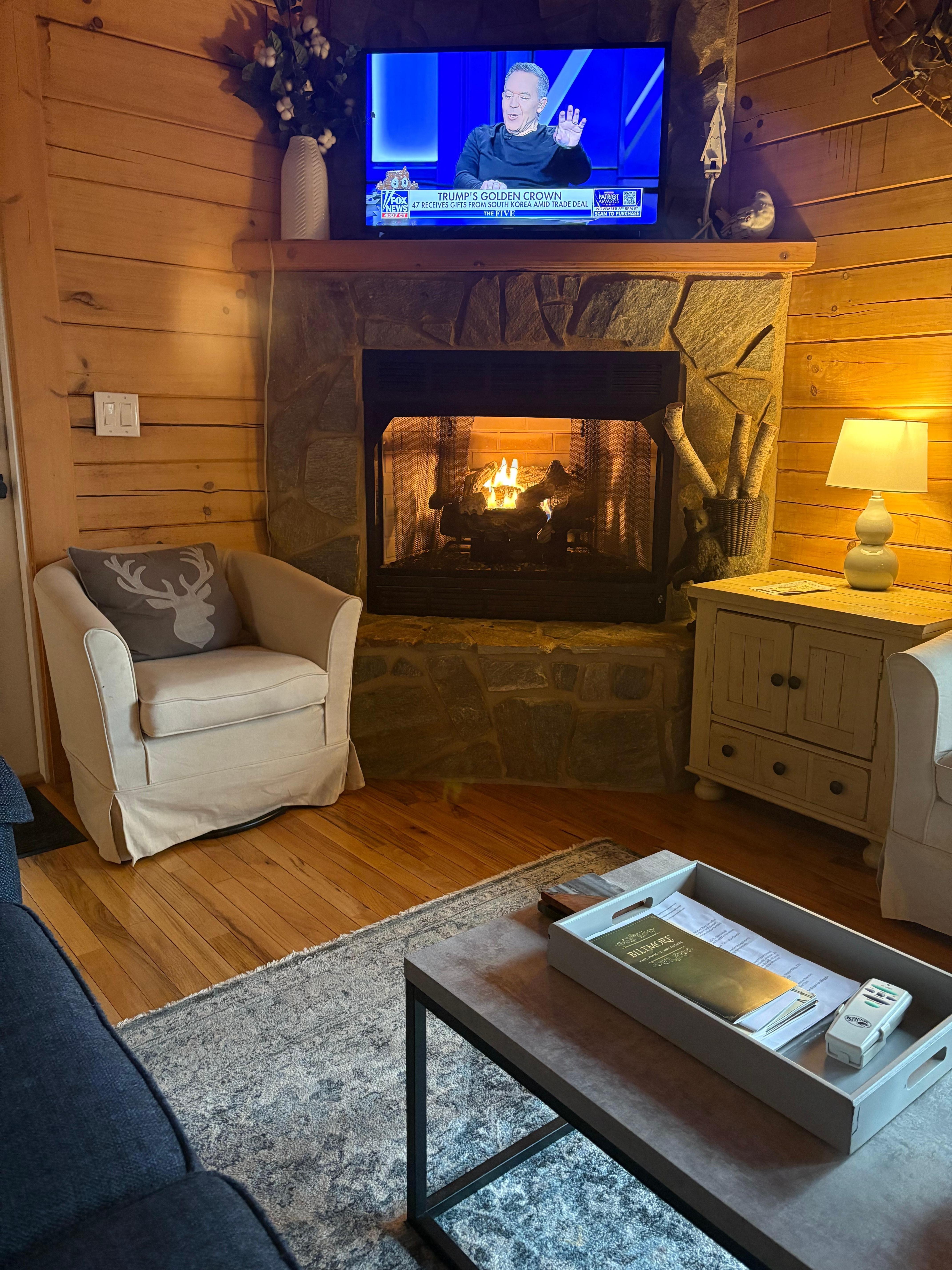 Once inside, you’ll appreciate the large open living space complete with stone gas log fireplace, massive accent beams, custom tongue and groove cathedral ceilings and a wall of almost floor to ceiling windows. The open kitchen features the clean look of quartz counter tops and stainless-steel appliances. See yourself seated around the adjacent dining room, enjoying a family meal or fun filled evening of board games or cards. The master bedroom and master bath are located on the main floor as well, with the master bath connecting to the main living area. Wide stairs lead to the large open loft overlooking the main living area and includes two twin beds for additional sleeping space. A queen bed and second full bath are located in the lower level sleeping area as well. A family TV room is also located there. This property comes equipped with washer/dryer, central heat and A/C, Wifi, Apple and Smart TV with loads of apps, Spectrum cable, gas fireplace, hot tub, firepit, and charcoal grill.