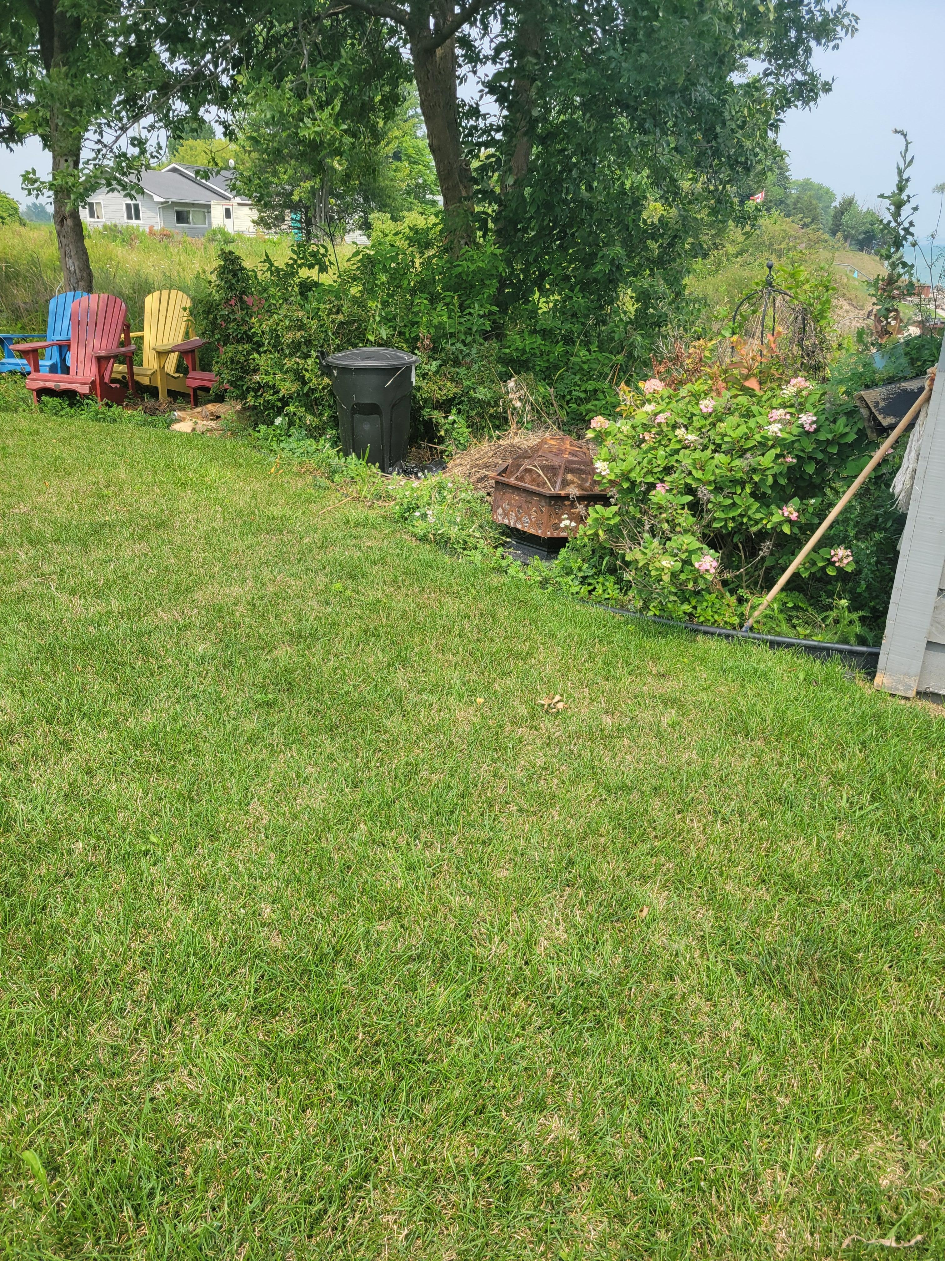 Front yard and back yard has fire pits with Muskoka chairs in back yard enjoy sun and mind calming water waves.