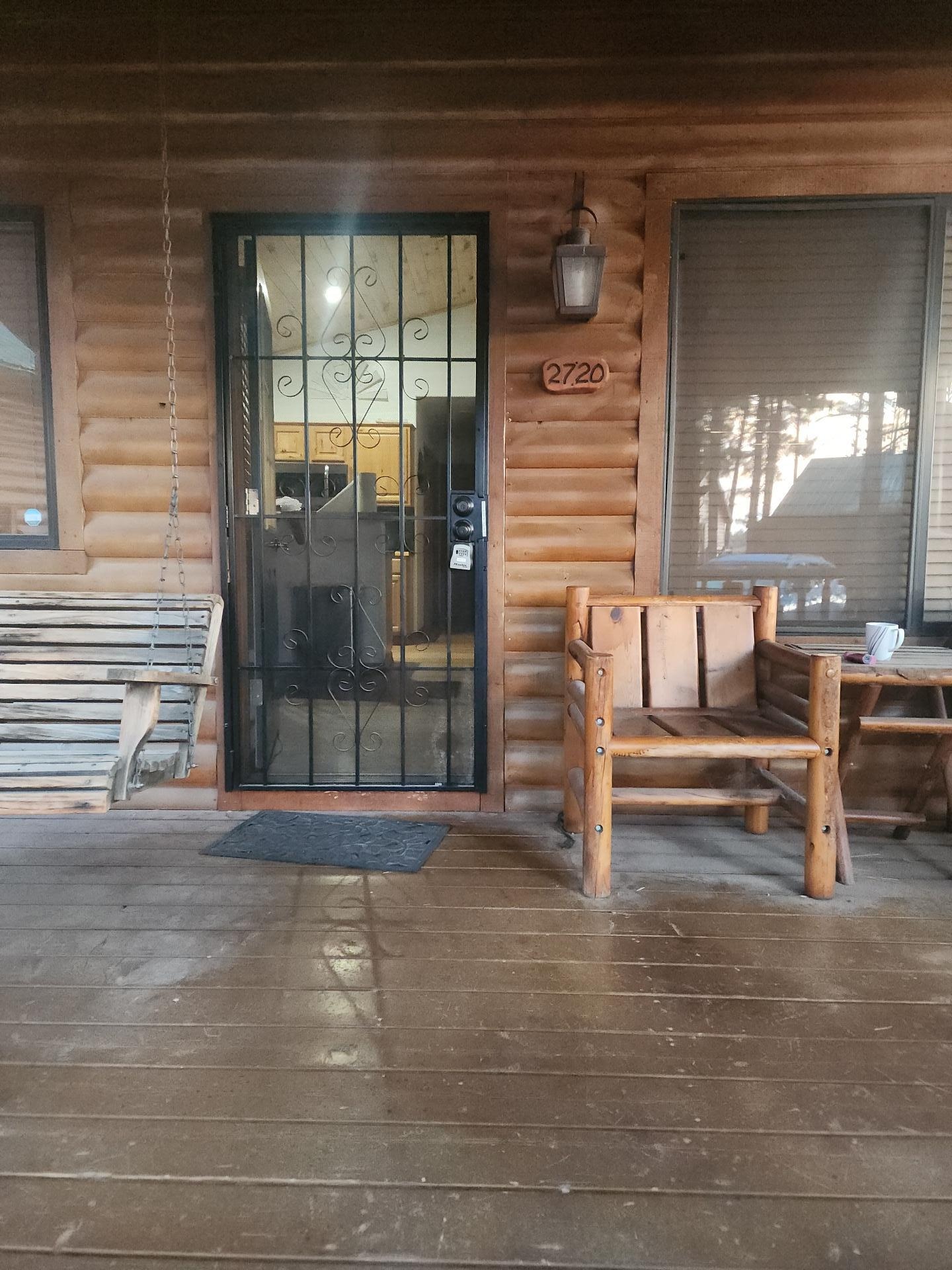The front porch has a swing, please swing slowly to avoid hitting the cabin.