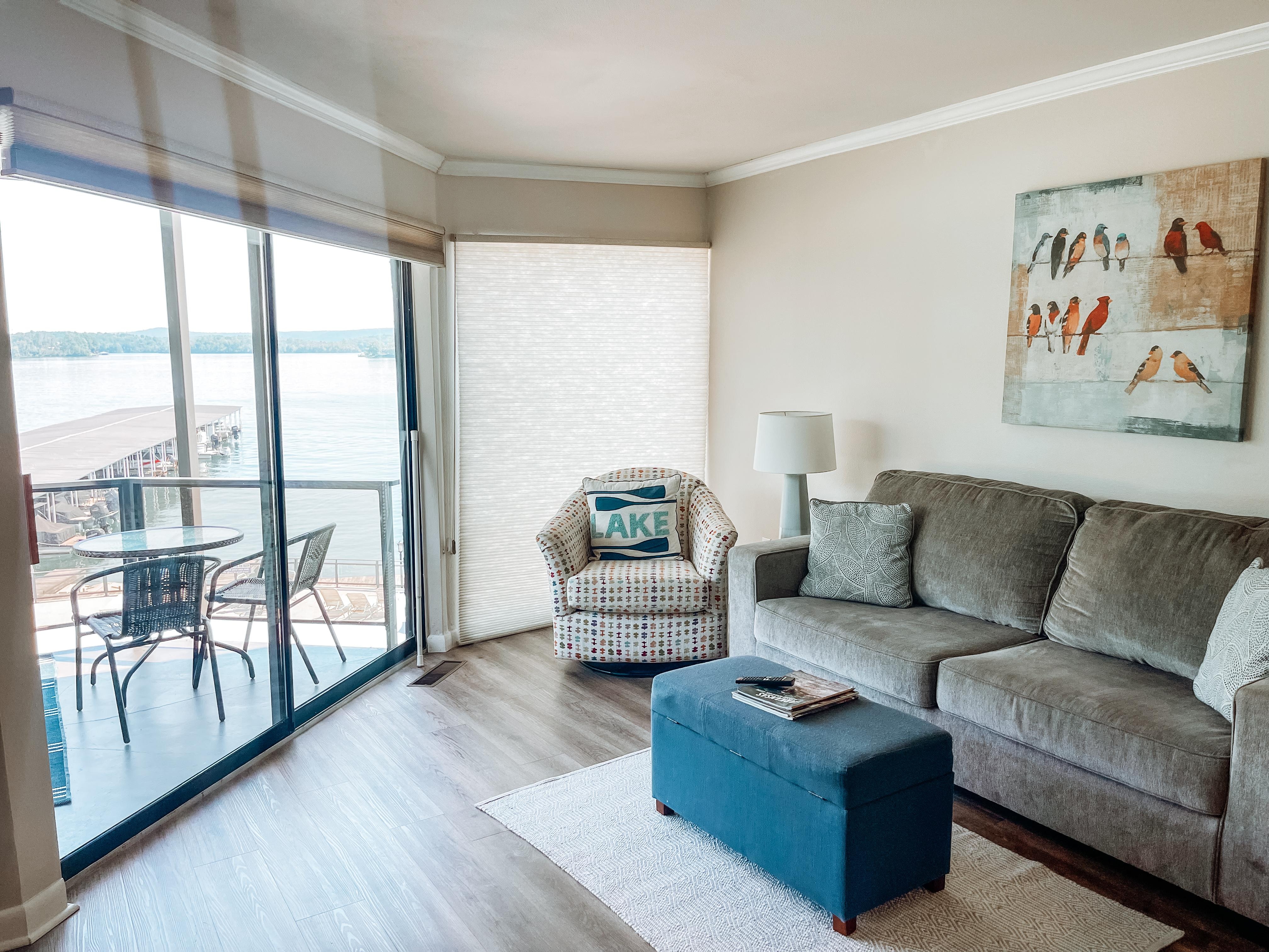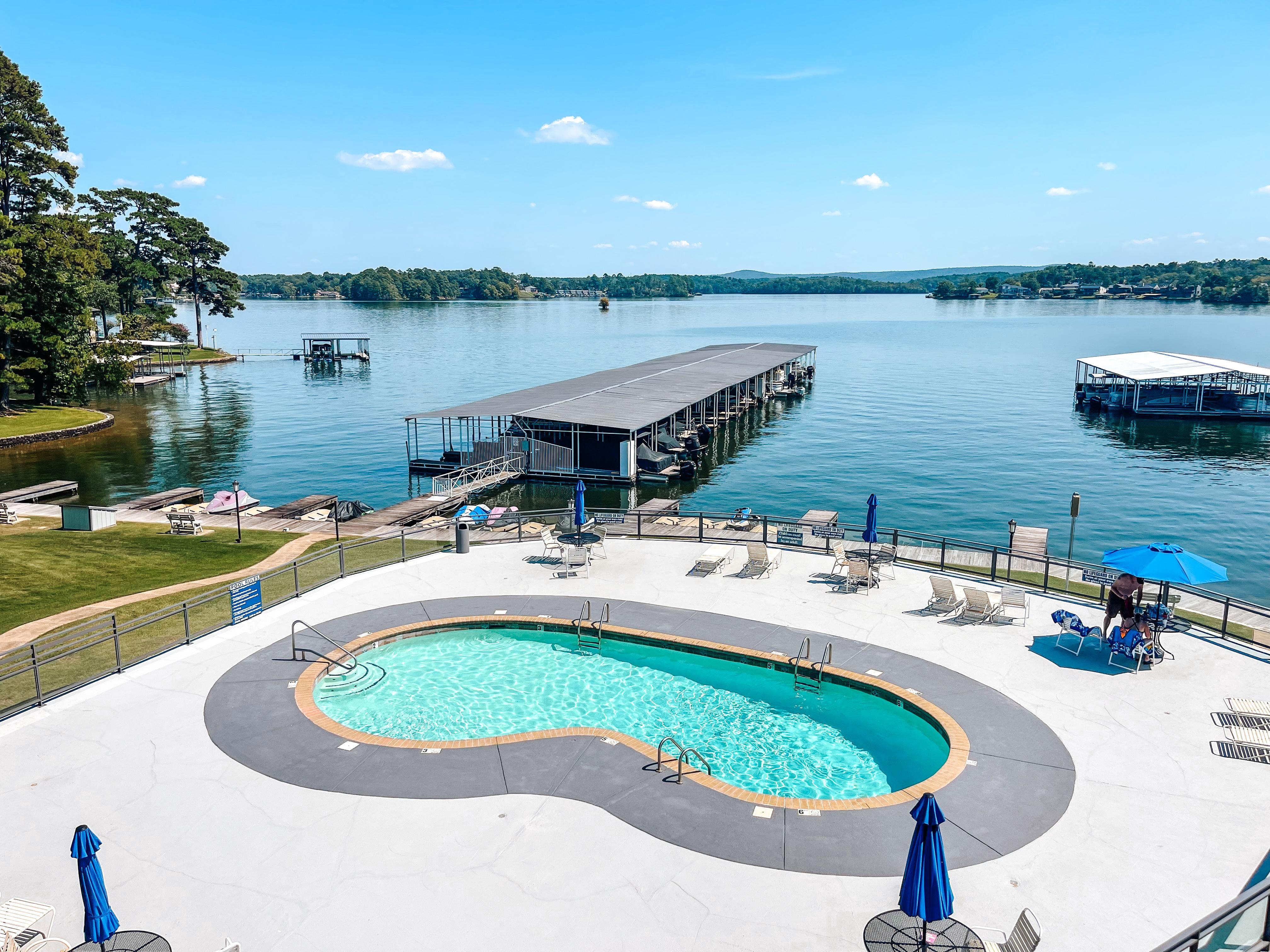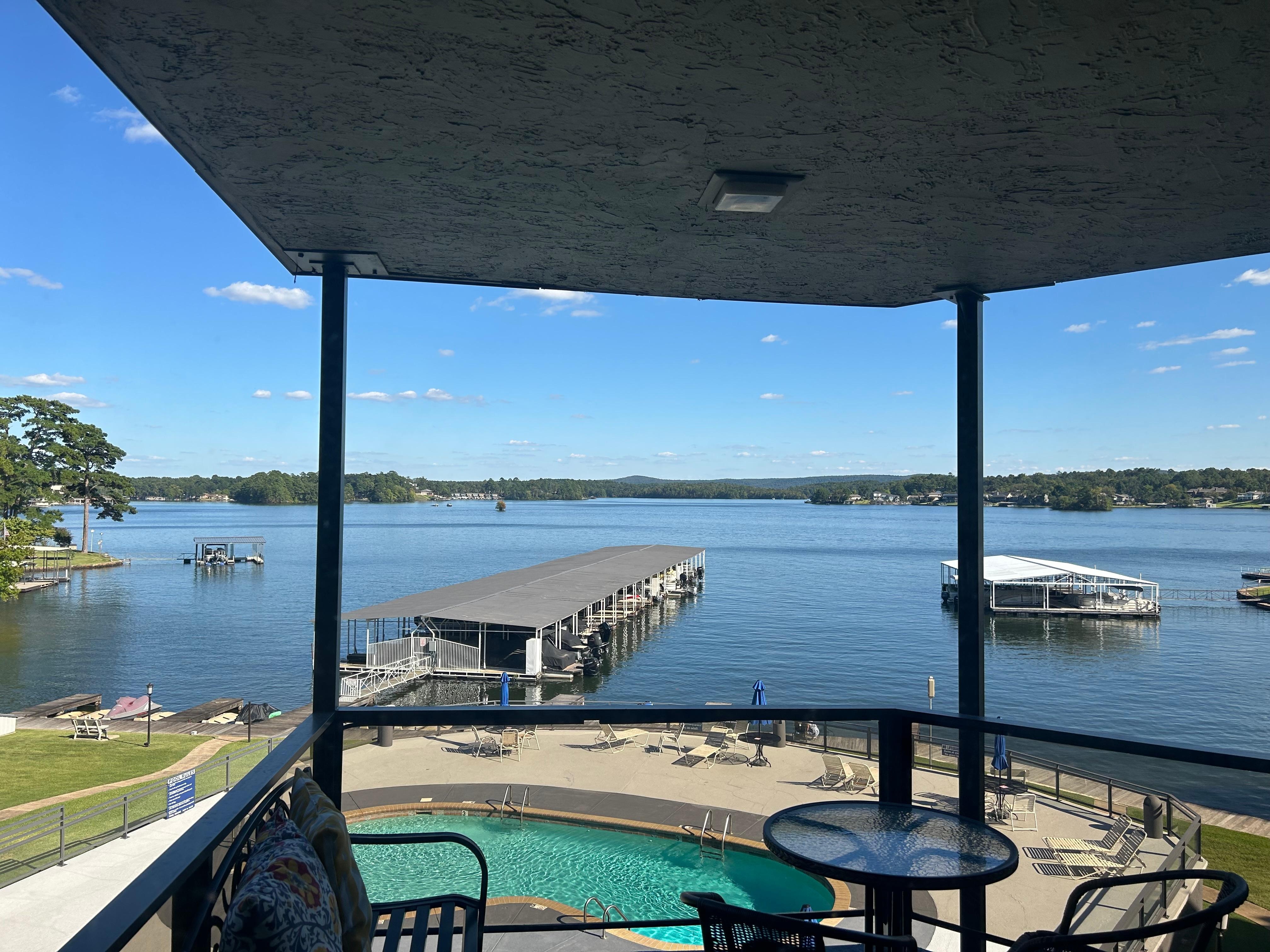 This condo is in a quiet condo complex on the shores of Lake Hamilton. We have a great view overlooking the swimming pool, boardwalk, and of course the lakefront water view.