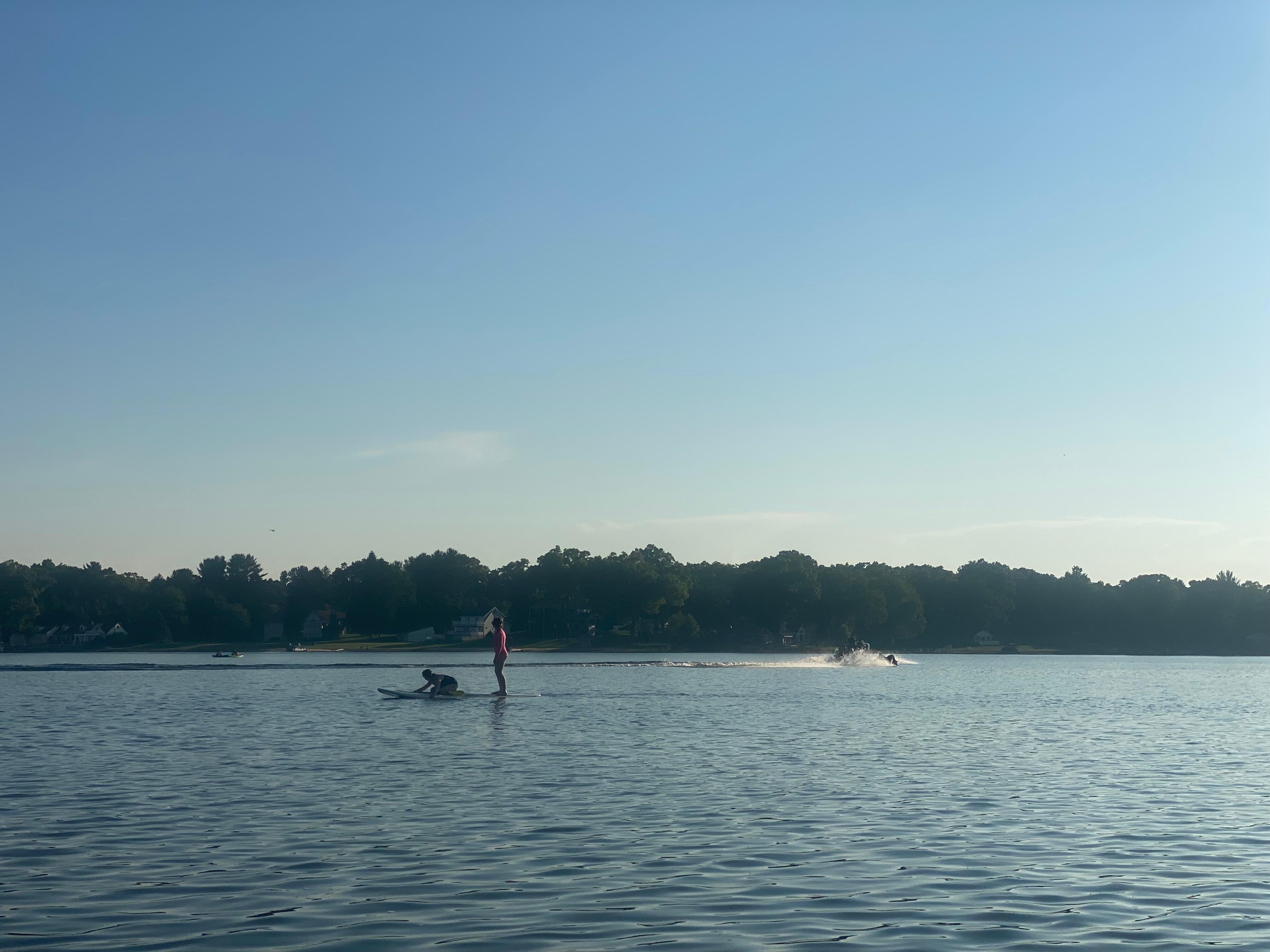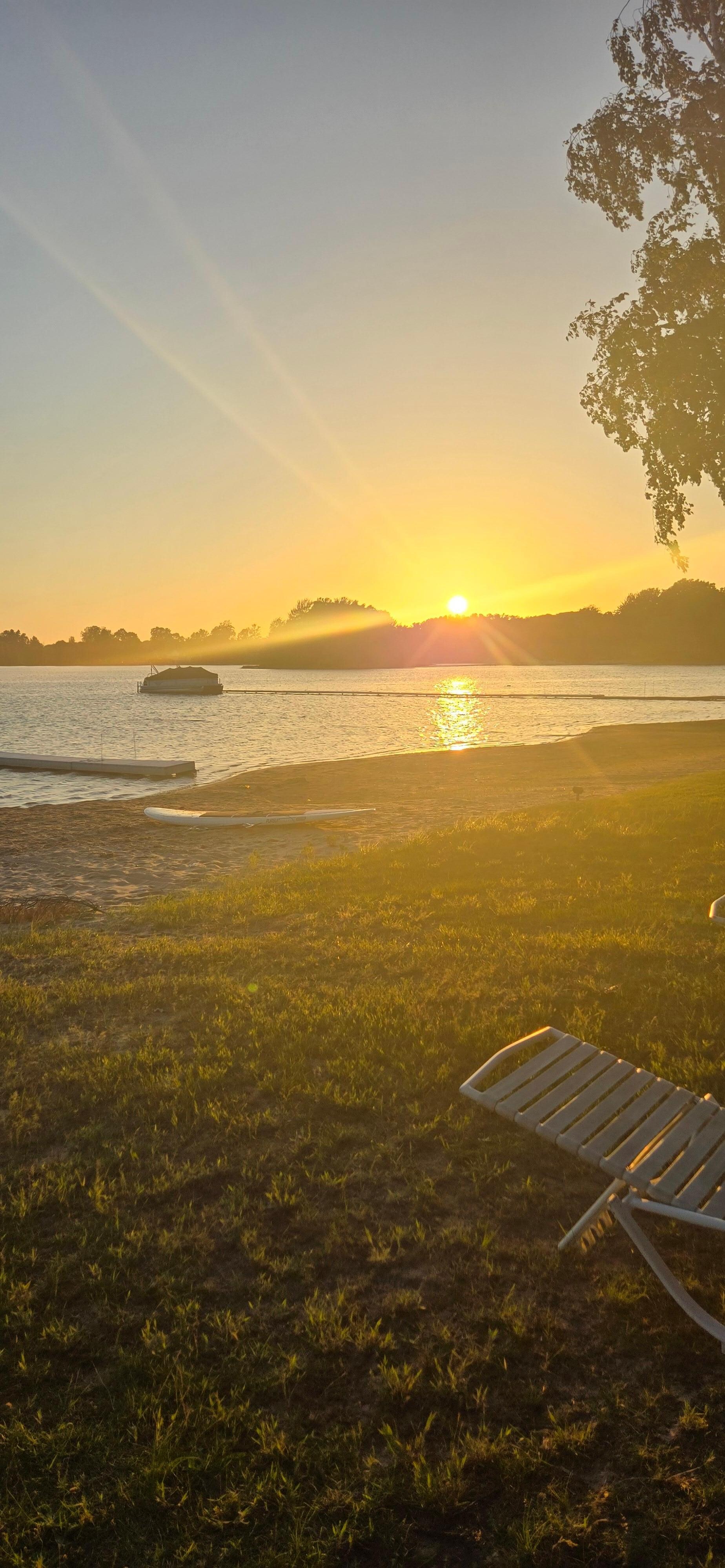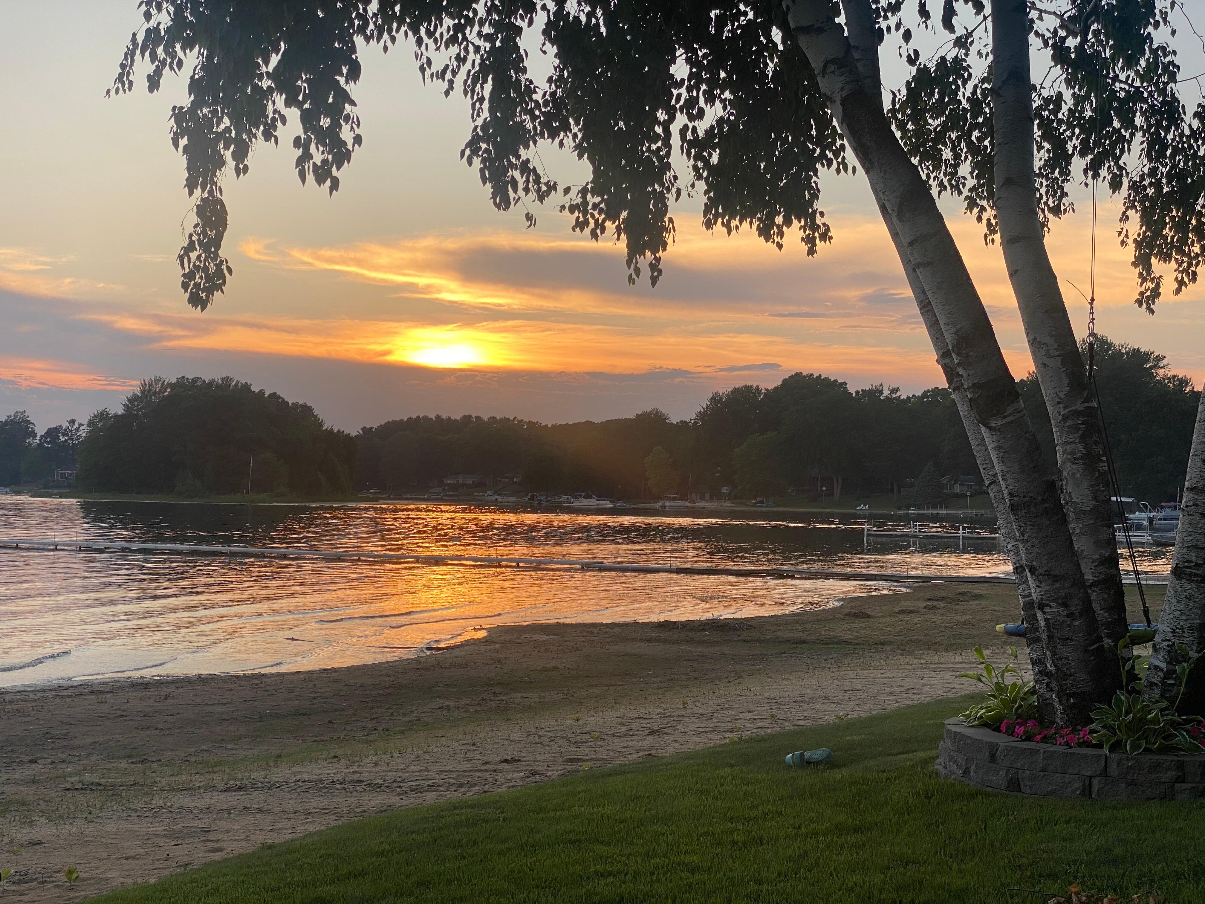 Great location! 60' of private frontage on all sports Twin Lake. Sandy shallow beach perfect for swimming, floating and playing. Great fishing lake and we provide 3 adult kayaks with paddles as well as 1 stand up paddleboard. We also have cornhole and inflatables for guests to use. Enjoy the beautiful sunset from the comfort of the beach, lakeside bed or porch. Sleeps 6 (maximum of 4 adults). Central air and central heat.
