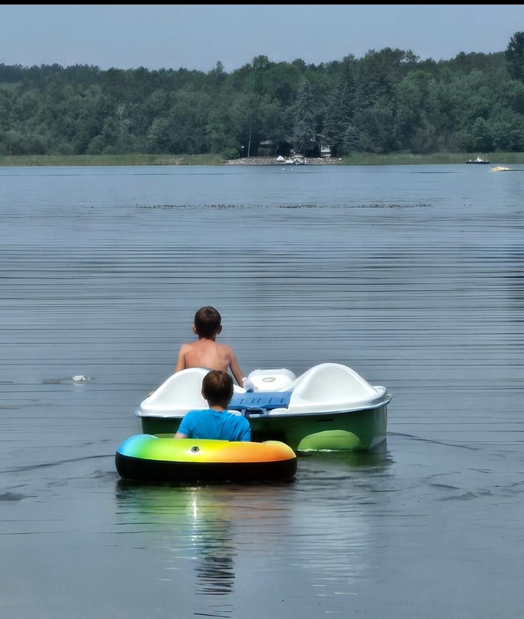This place is all about the beautiful beach and shallow, sand bottom swimming area in a protected bay on Boulder Lake. The lake has great water clarity and quality fishing. The back deck overlooks the large beach (more than 100' of sandy shoreline) with just a gentle slope down to the water's edge. Kids will have a blast catching fish right off the dock. Bring your own boat to tie up and/or enjoy using the paddleboat and kayaks (2) available during your stay. You will have a lake view from almost every room in the house.