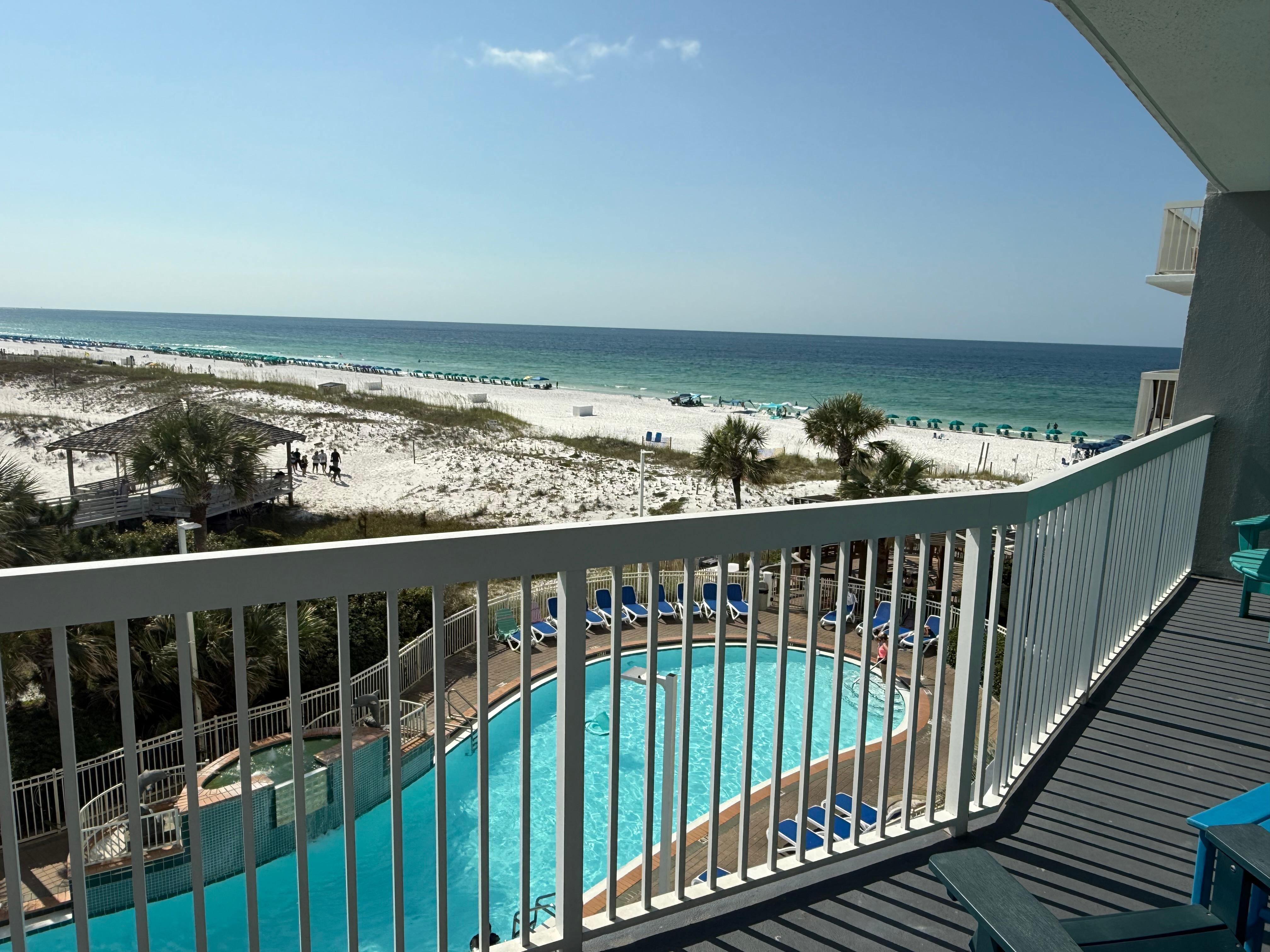 This unit has the best location in popular Pelican Beach Resort. 4th floor is high enough to have a fantastic view of the pool, beach, and the gulf, and low enough to view your teens enjoying themselves in the pool from your oversized private balcony. This unit is the next unit from the corner, giving an unobstructed view of the beach, the gulf and the pool.