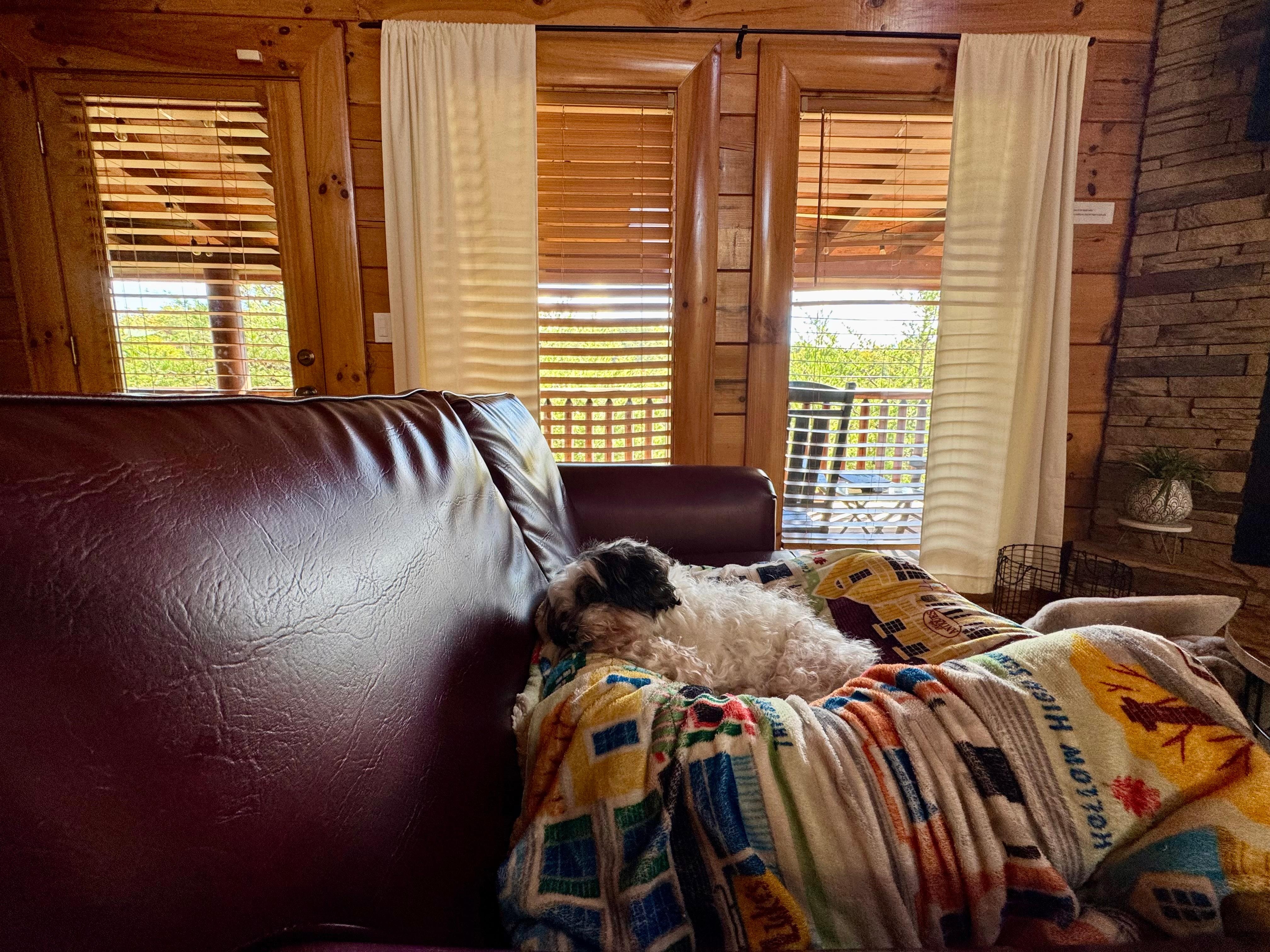 The whole family, and yes we are DOG FRIENDLY, will love the spacious open concept, all-wood cabin! It features two master bedrooms on the bottom floor with ensuite bathrooms, an indoor jetted tub, a log bunk bed sleeping area in the loft and a pull out sleeper in the living room.