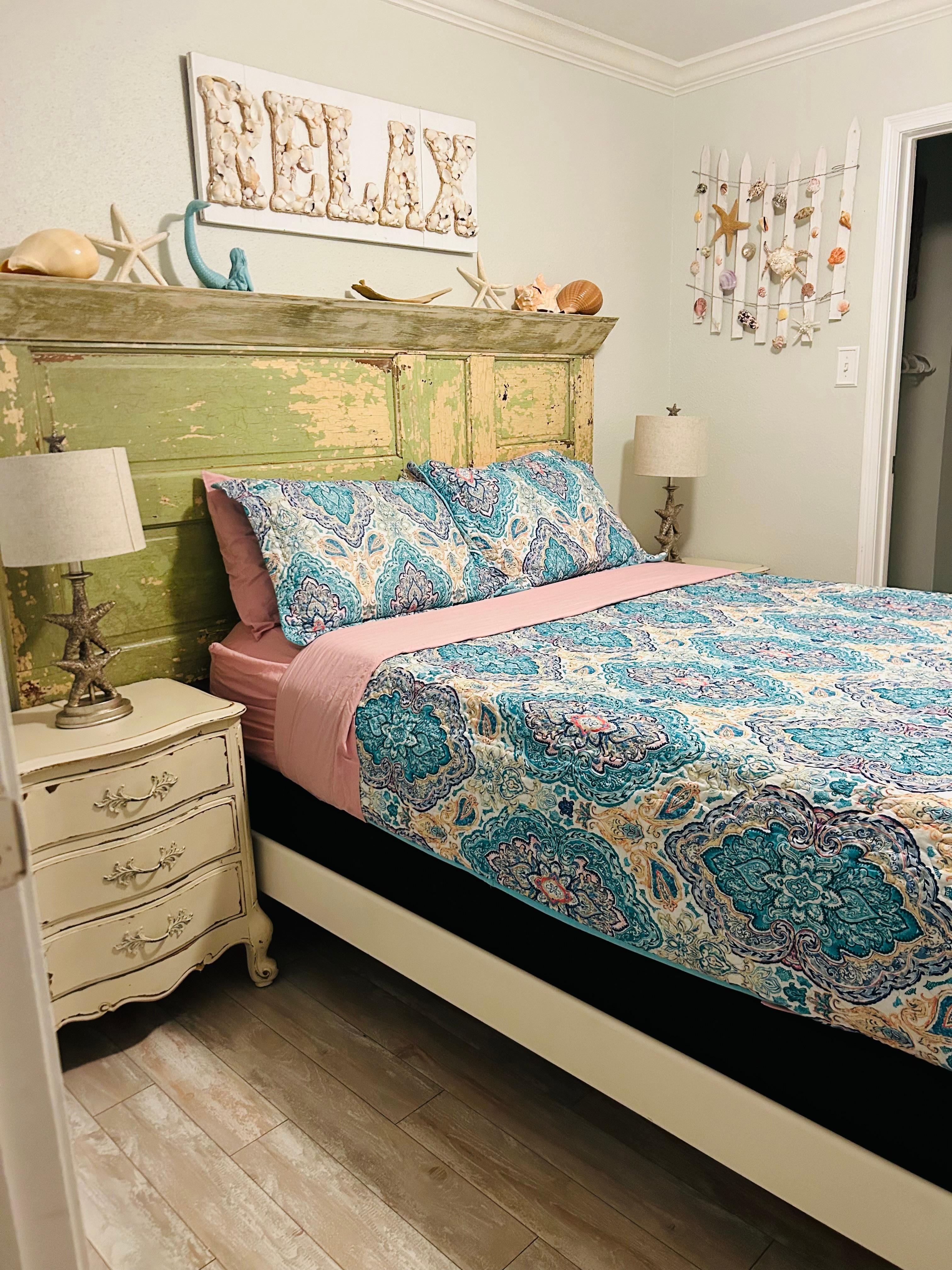 When you step inside you will be transported to another place - a BEACHY place you will absolutely adore. The decor is gorgeous, the beds comfortable, and everything you could think of has been thought of for you! Fromt he private bedroom with a large closet and television, to the quaint dinette set, to a kitchen with 2 burner cooktop, refrigerator/freezer, microwave, dishwasher and countertaop appliances, plus all the cookware, dinnerware and glassware you will need.