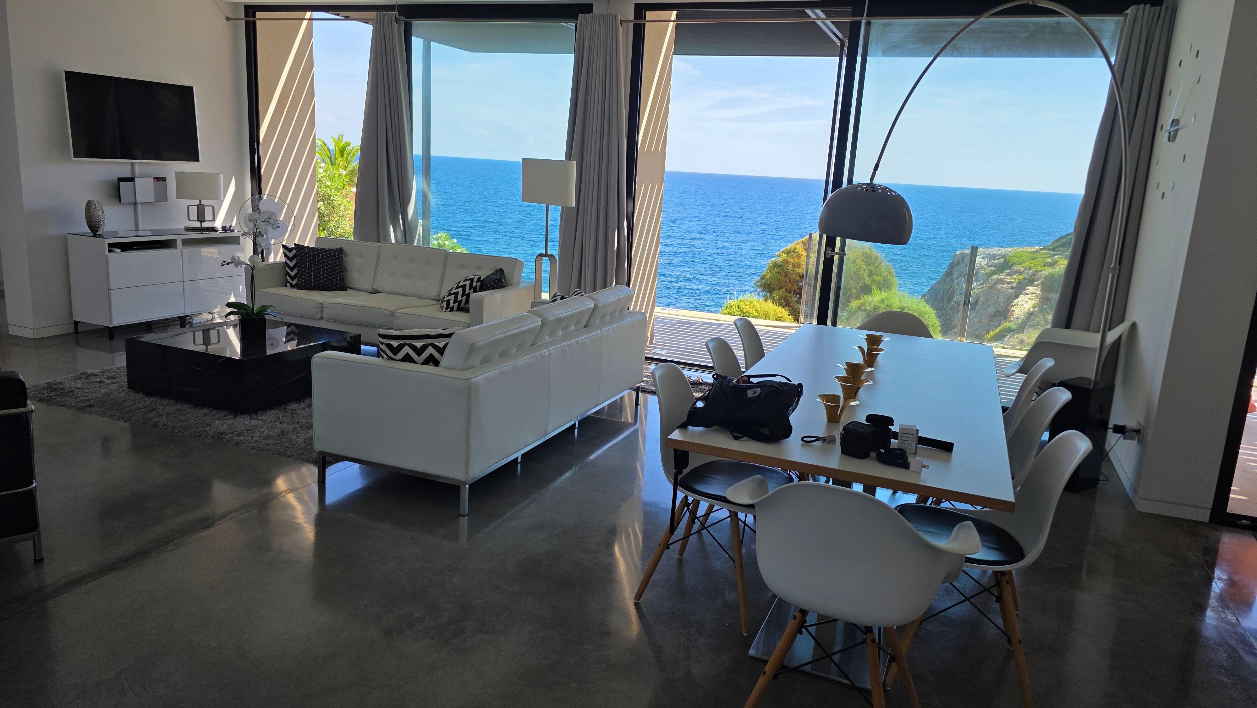 The perfect orientation of the villa towards the south as well as a room layout that offers the same double view to the 4 double bedrooms with bathrooms en suite will delight you as a guest. Open the floor-to-ceiling sliding windows and feel the light breeze of the sea. The living-dining level comprises a stylish kitchen in white with an espresso machine, gastro coffee machine for 8 people, dishwasher, fridge-freezer, ...