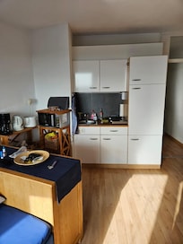 Unterkunft ist schön gestaltet. Picobello sauber. Schlafcouch ok. Küchenzeile hat alles was man braucht. TV ist leider etwas klein. Kein WLAN obwohl im Zimmer ein Router vorhanden ist. Schade. Wir hatten die Tage max. 25 Grad Außentemperatur und Nachts hat es gut abgekühlt. Bei höheren Temperaturen und warmen Nächten sollte man einen Lüfter dabei haben. Klimagerät wäre von Vorteil, da nur Innenrollos. Die Wohnung ist rollstuhlgerecht zu erreichen. Für „rollstuhlgerecht“sollte aber eine barrierefreie Dusche und keine Badewanne vorhanden sein. Parkplatz hat von 8-20 Uhr nur 2h Parkdauer und ist gut frequentiert. Die im Angebot enthaltene Garage kann nicht benutzt werden, da keine Karte mehr vorhanden ist. Wer mit dem Auto anreist muss aber die Garage nutzen können. Das Angebot der Vermieterin, den Hausmeisterdienst in Anspruch zu nehmen war ehrenwert, aber nicht zweckmäßig. Ein Fahrrad sollte man mitbringen wenn man nicht ca. 20 Minuten gehen möchte, um ins Zentrum des Geschehens zukommen. Im direkten Umfeld gibt es ein gutes Chinarestaurant, das hauseigene Restaurant öffnet seine Pforte erst ab Mittag. Ansonsten viel Wasser und Segelboote. Trotz aller Wünsche, die die Unterkunft noch attraktiver machen würden, war es ein erholsamer Aufenthalt. Die Besitzerin und das Servicepersonal waren sehr freundlich und hilfsbereit. Ich würde wieder kommen.
