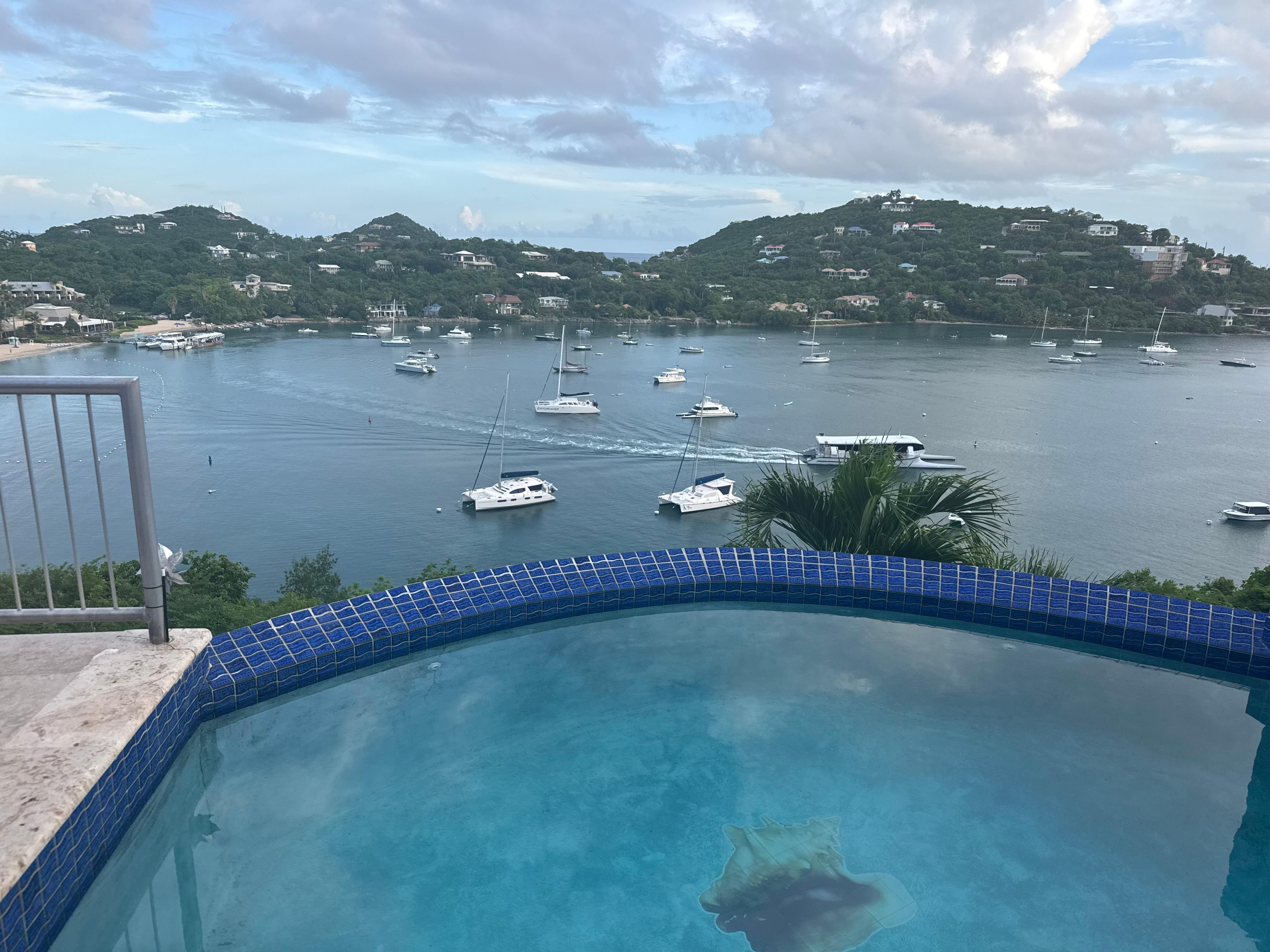 Breath taking views of Great Cruz Bay harbor and beach, constant ocean breezes and tradewinds, private swimming pool, Wi-Fi access throughout villa and on decks, very comfortable memory foam mattresses w/luxurious Egyptian cotton linens, soothing open air showers. Close proximity to shopping restaurants and night life of town (Cruz Bay), yet very peaceful and quiet surroundings.