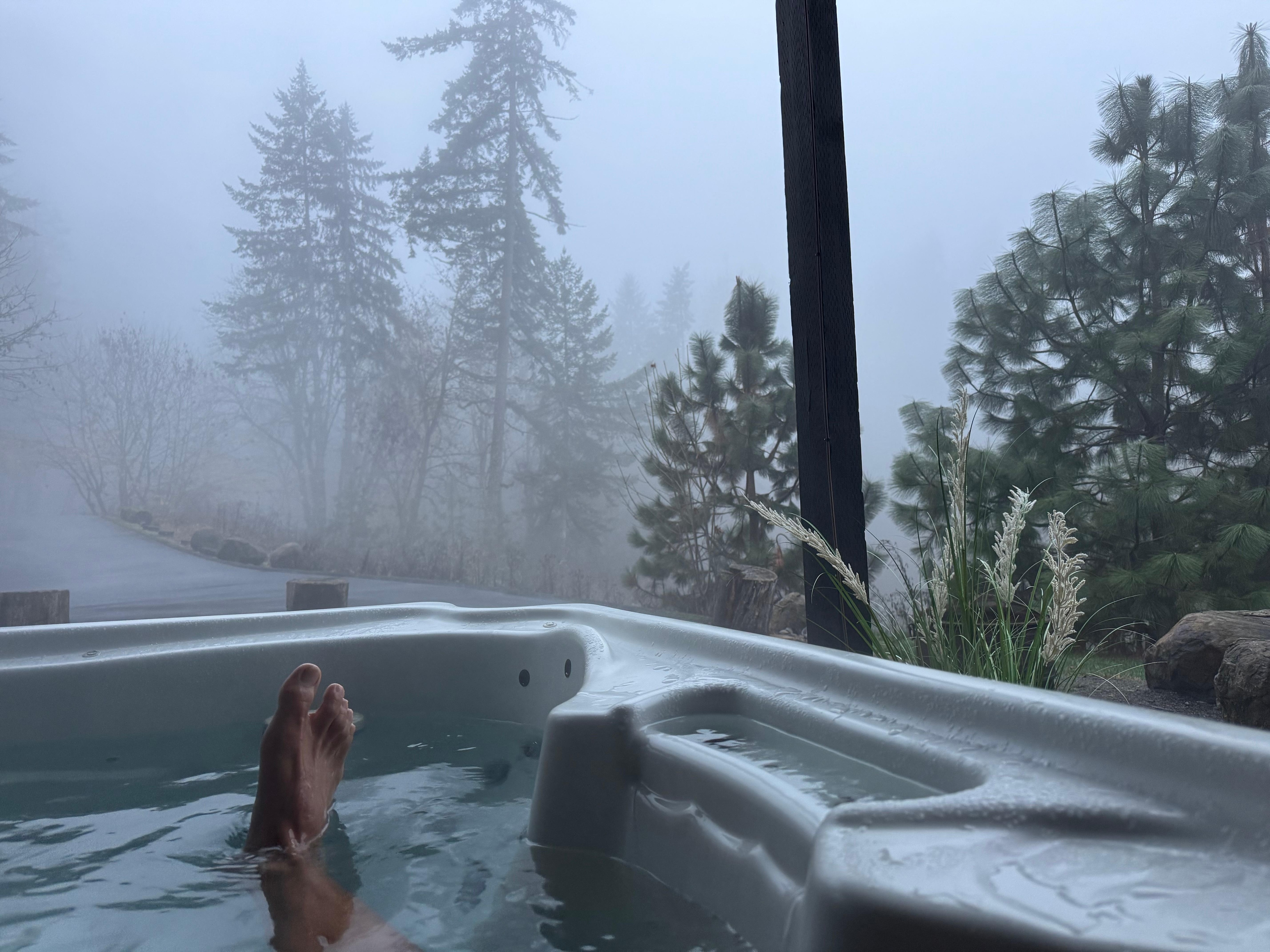 The downstairs includes a kitchenette with a wet bar, professional grade massage chair with all the bells and whistles, two oversized bedrooms with California King beds, a large sofa, Smart TV, and access to our 5-6 person sparkling covered spa, covered patio, and outdoor fire pit. Sticks for s'mores, and plenty of firewood are provided to fuel the perfect evening!