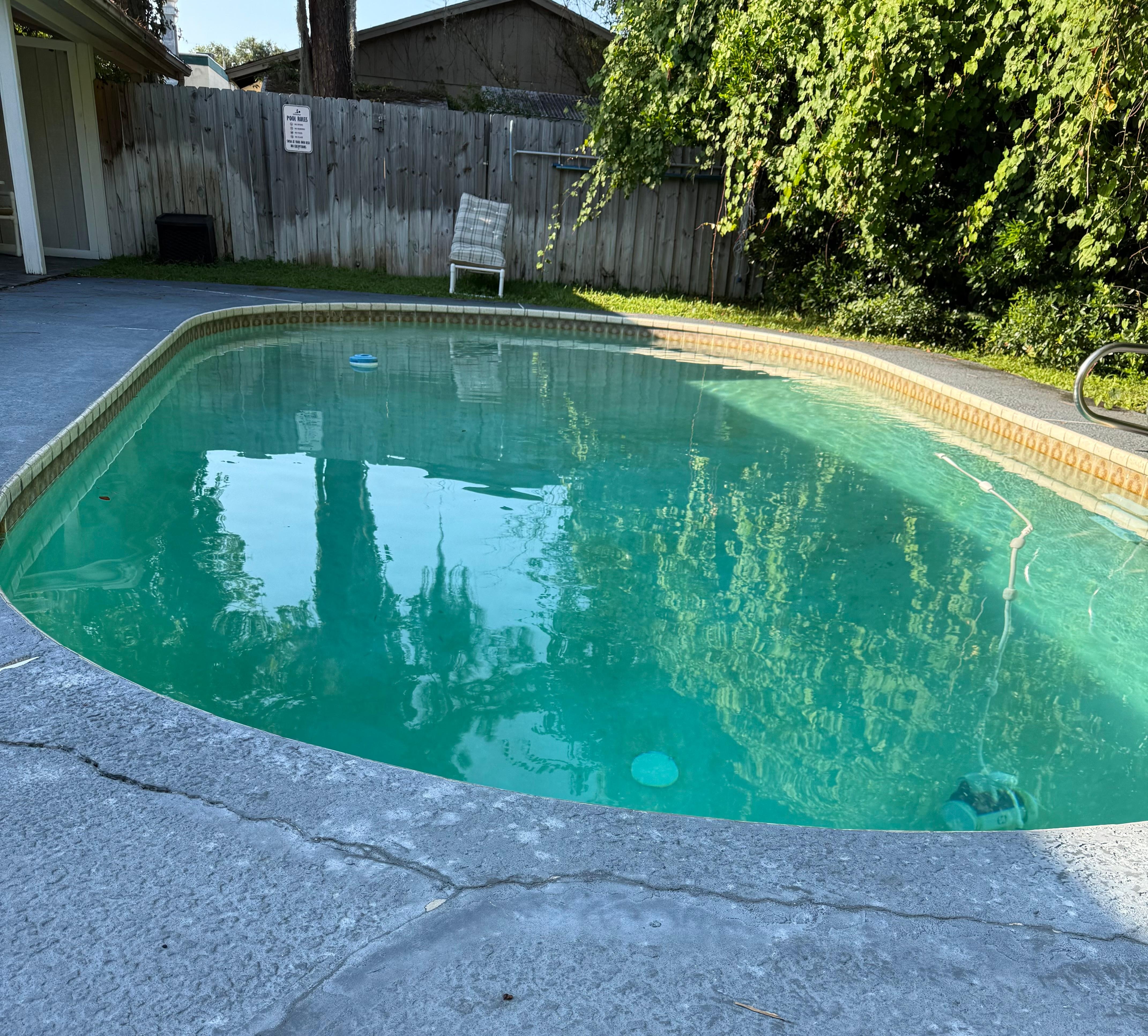 Private. Clean. Compact. Easy access and check-in with specific instructions. Appreciated the well-supplied kitchen. Cramped bathroom, no handrail into pool, sofa too low to the floor- all problems for me as I was having significant hip and knee pain. If I had known about no handrail, I would have booked elsewhere as I was hoping for a lot of pool time. Photo of the pool- the irregular stairs are at the far left end.