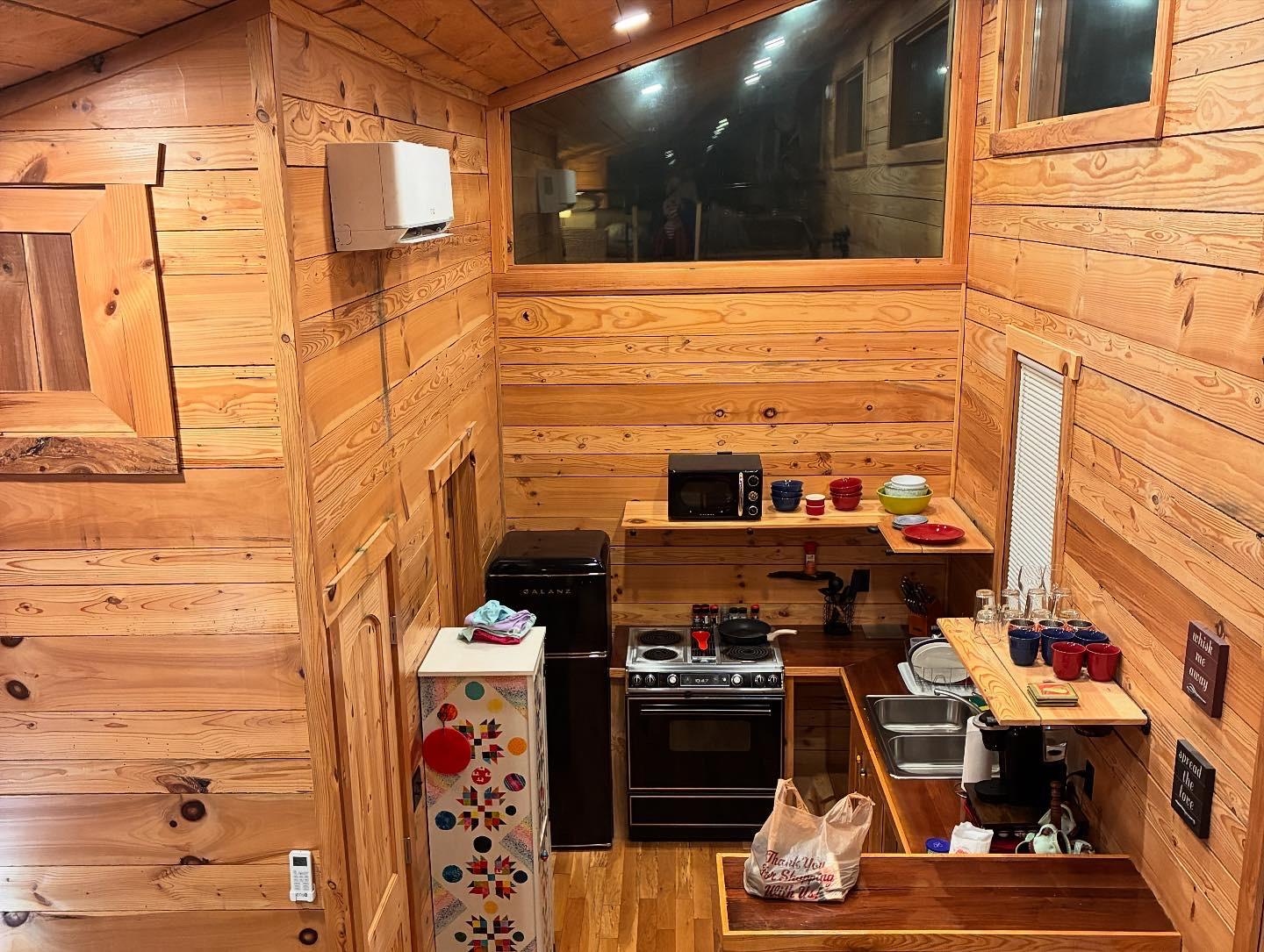 The stay was amazing. The view was magnificent. Loved the cows and the lightning bugs. We used the fire pit and enjoyed it. Brought our own firewood because wasn’t sure if it was included. Bed was comfy. Location was great. The pots and pans were really nice. I’m thinking about getting myself a set for my home. I needed more counter space in the bathroom but I made it work. There was no closet, but that’s ok. I just lived out of my suitcase. I’d stay here again.