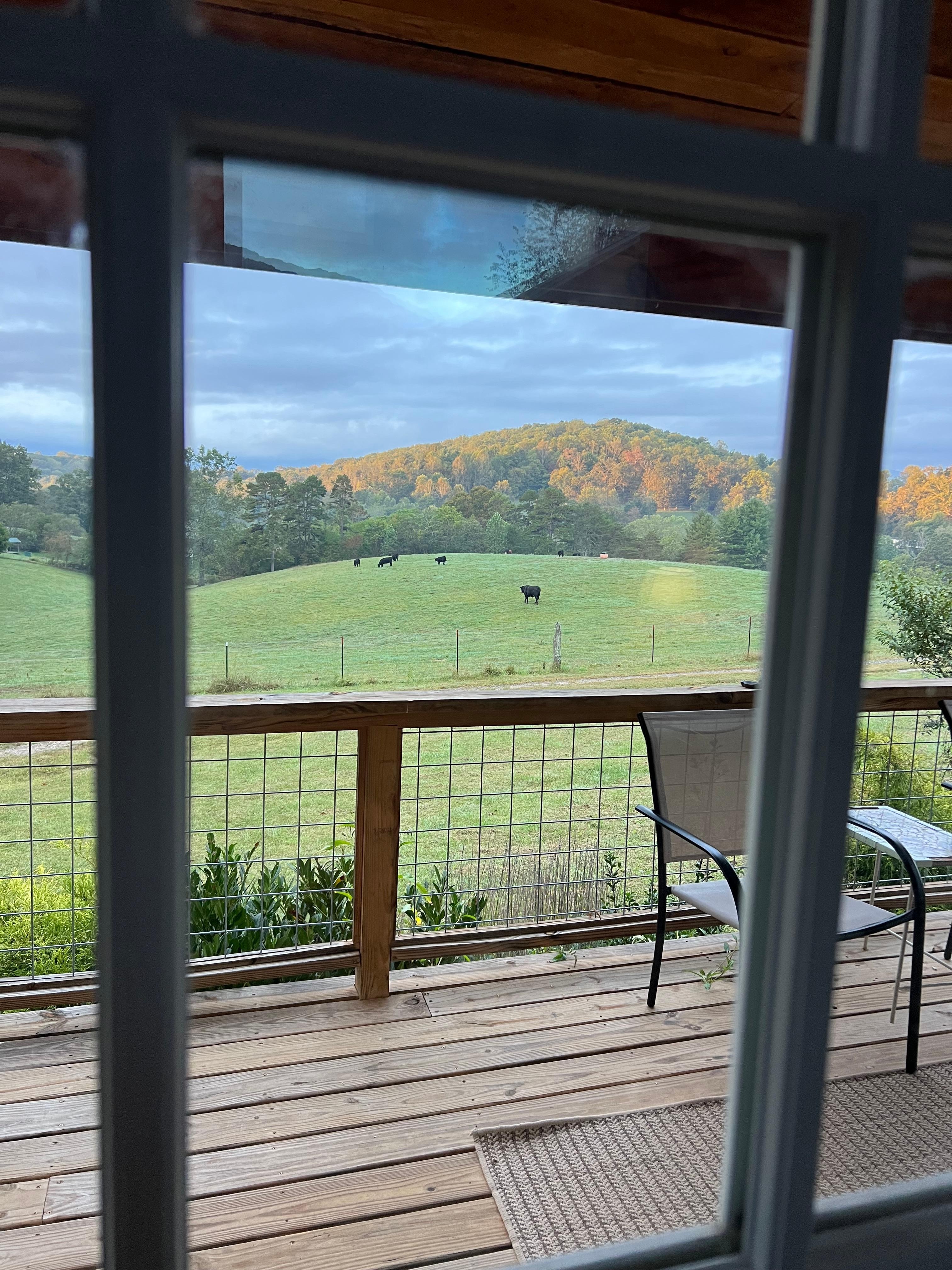 You won’t forget the peaceful surroundings of this custom cozy 360 sq. ft. cabin with views of the Blue Ridge Mountains. Our cabin is a short 20 minute drive to downtown Asheville and a short 20-30 minute drive to Canton/Waynesville. Wake up each morning and enjoy a cup of coffee on the porch next to the cattle in the field in front of the cabin while you plan the day ahead. After you finish the day of exploring the surrounding areas come back and cozy up and enjoy your stay!