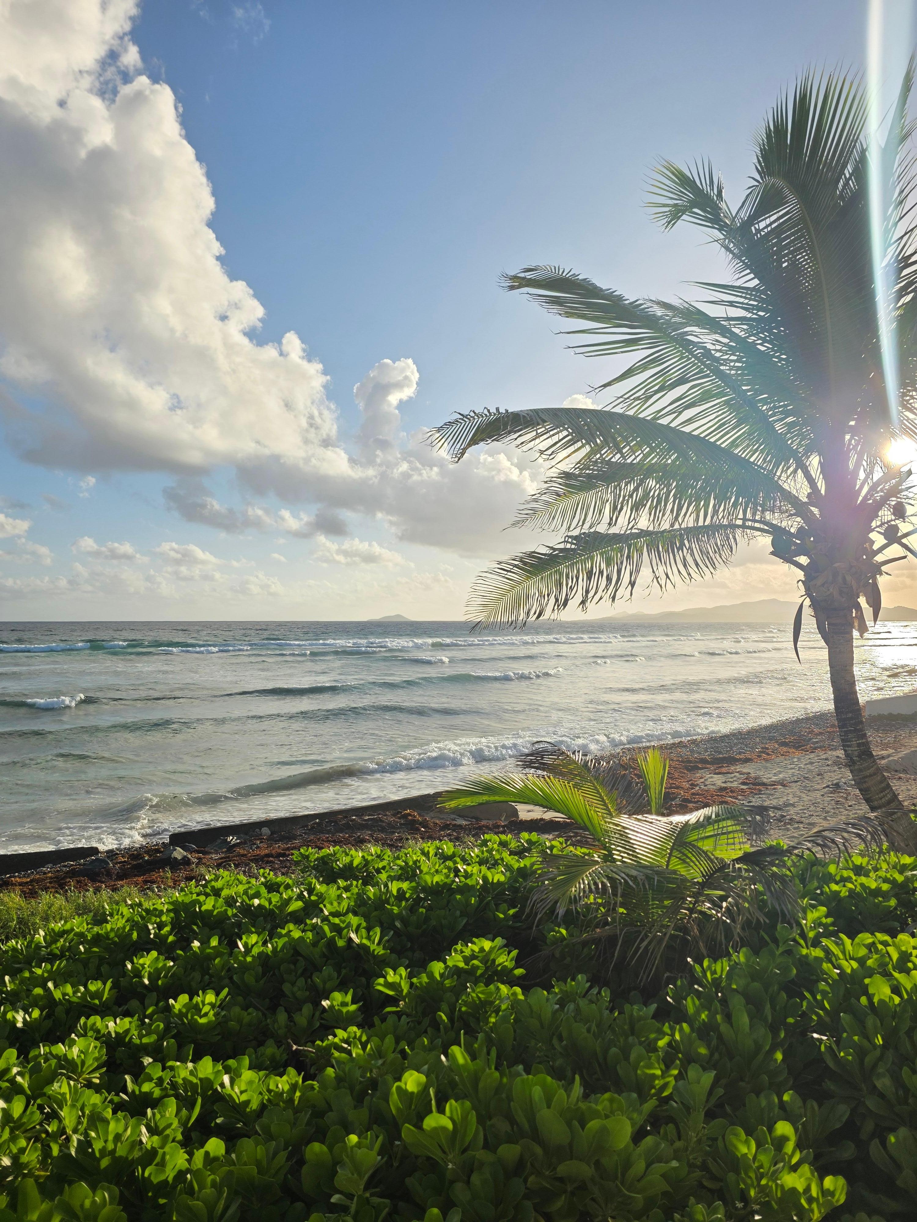 -Beachfront. Secluded beach is a combination of sand, rock, and greenery