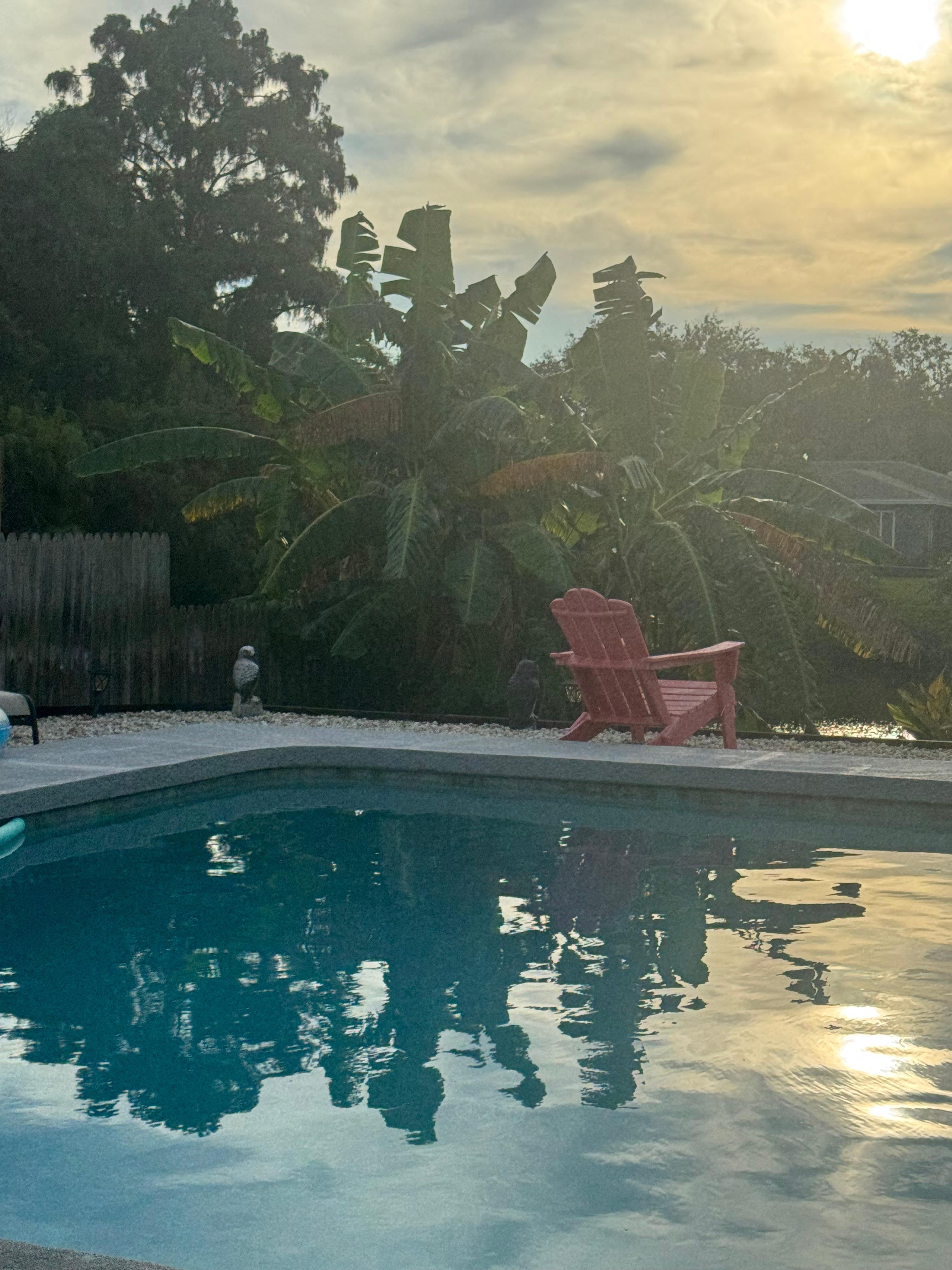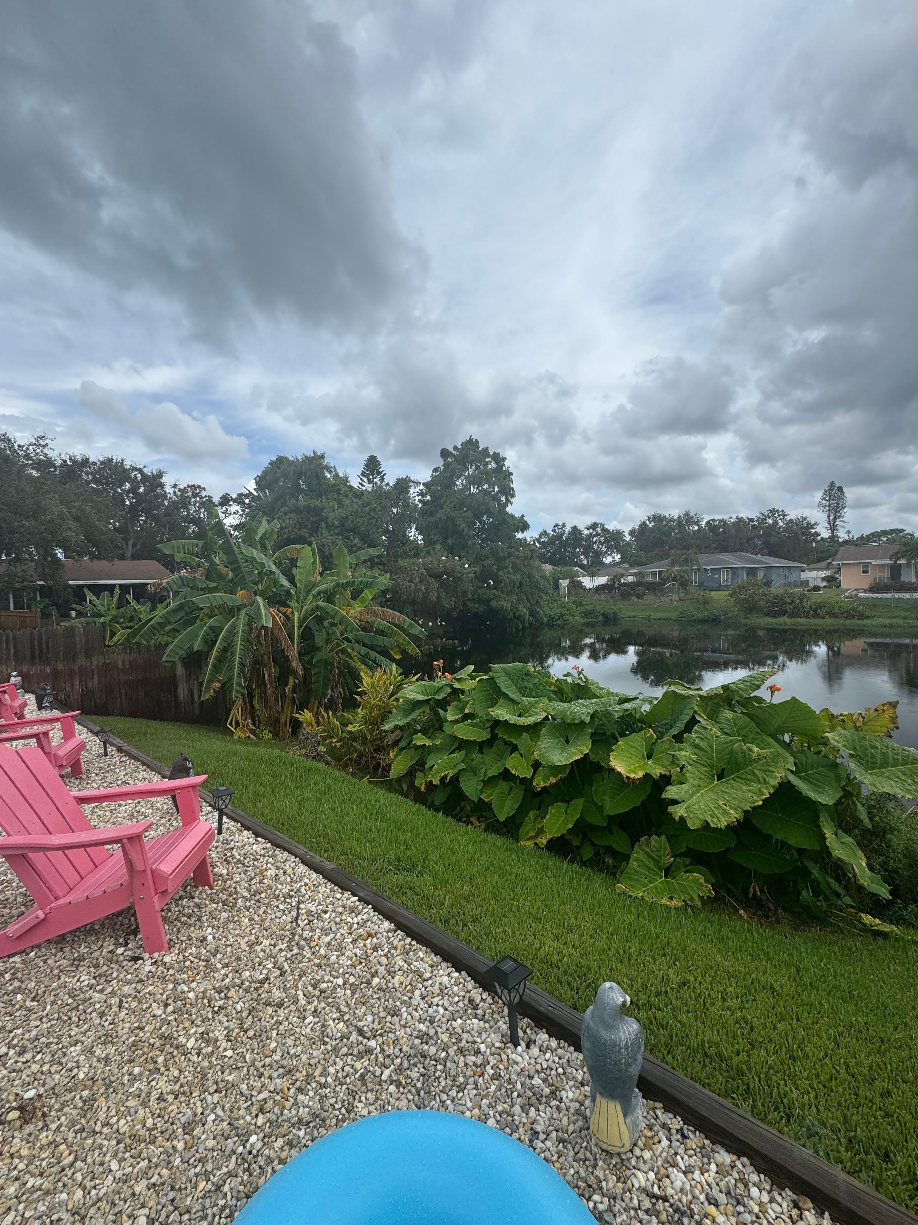 Step outside to a private oasis into the large sitting area with string lights and water views that overlooks the pool. If you need to break away for some peace and quiet, meditation or a little yoga, this is your spot!