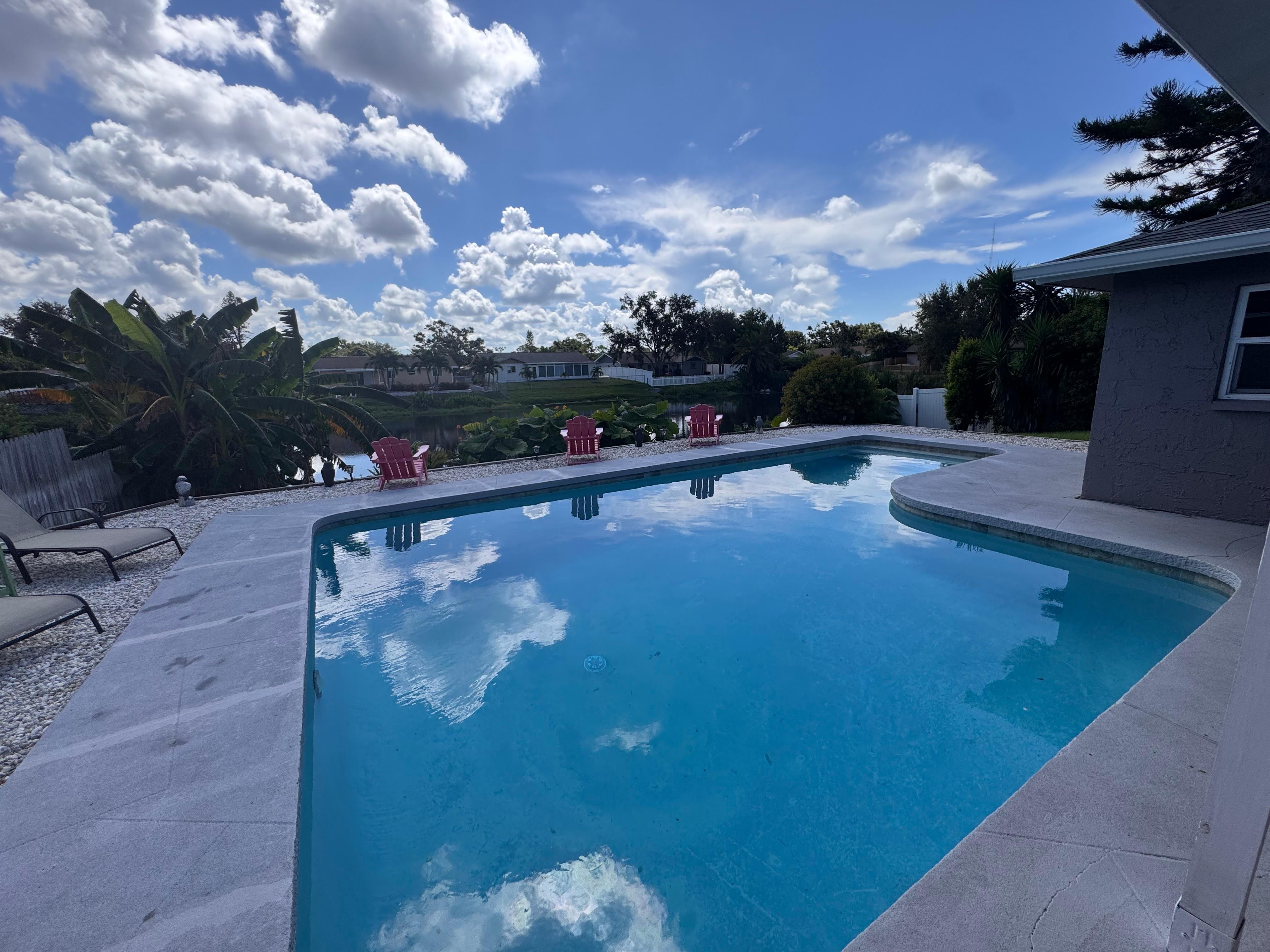 Brand New Listing! Welcome to our tropical flamingo hideaway! This chic open-concept home has been completely renovated and is perfect for those who want a relaxing getaway with water views and a pool! Each room has been tastefully decorated to provide a unique experience for all guests! This home boasts gorgeous sunrise views over the private water in the backyard while overlooking the pool. Less than 2 miles to Indian Shores and nestled a short drive from Madeira Beach & Indian Rocks Beach!