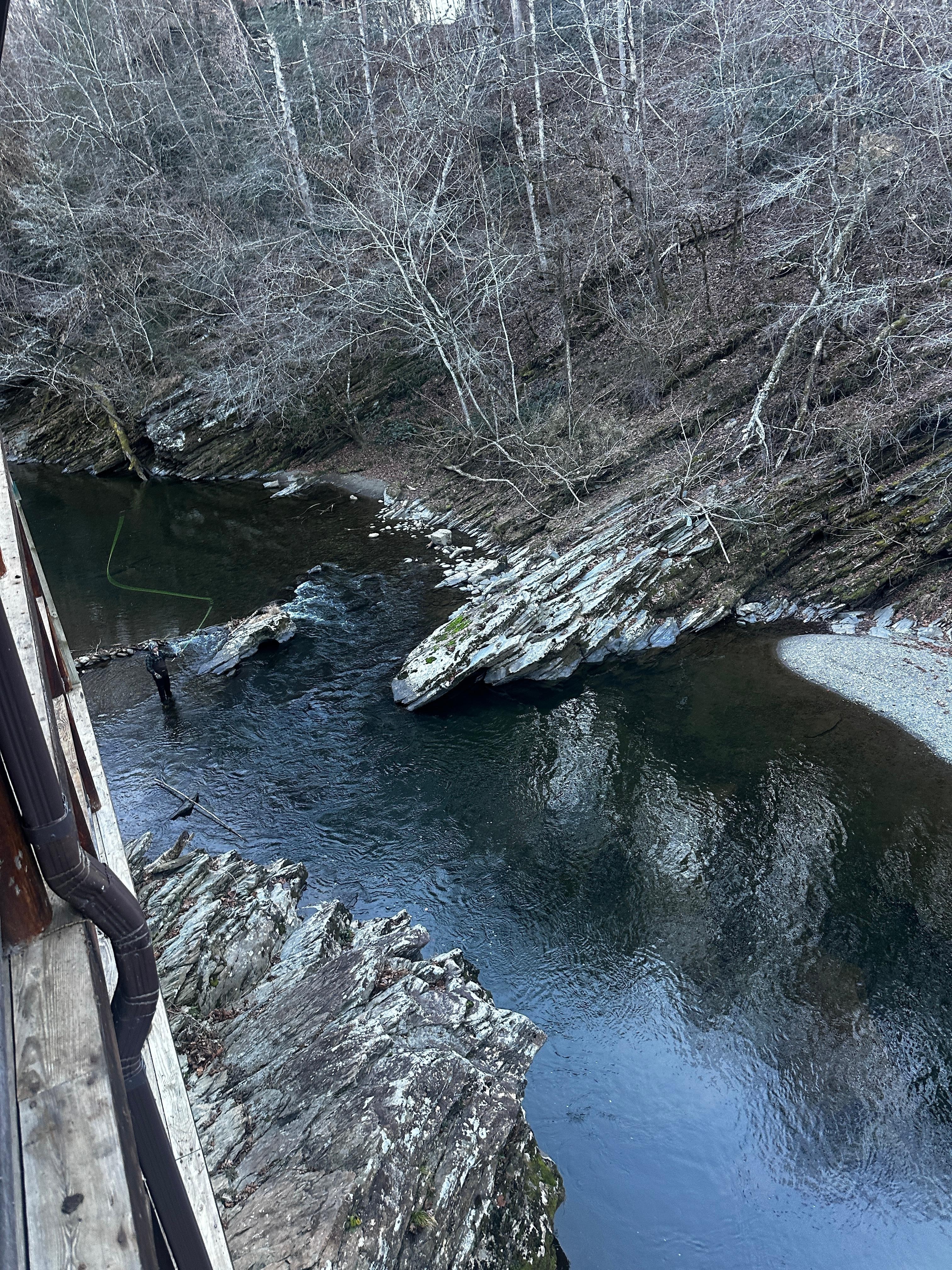 Dreaming of a vacation with privacy and peaceful surroundings with an amazing view? This river cabin is the place for you! Bask in the sunshine on your own stretch of river in this amazing 3 story cabin. Each level has its own bed and bathroom. With 300 feet of river frontage and 3 acres of seclusion, you will feel like you are on your very own private river! At night, while soaking in the hot tub on the deck, the undeveloped cliff on the other side of the river is your theater for fireflies.