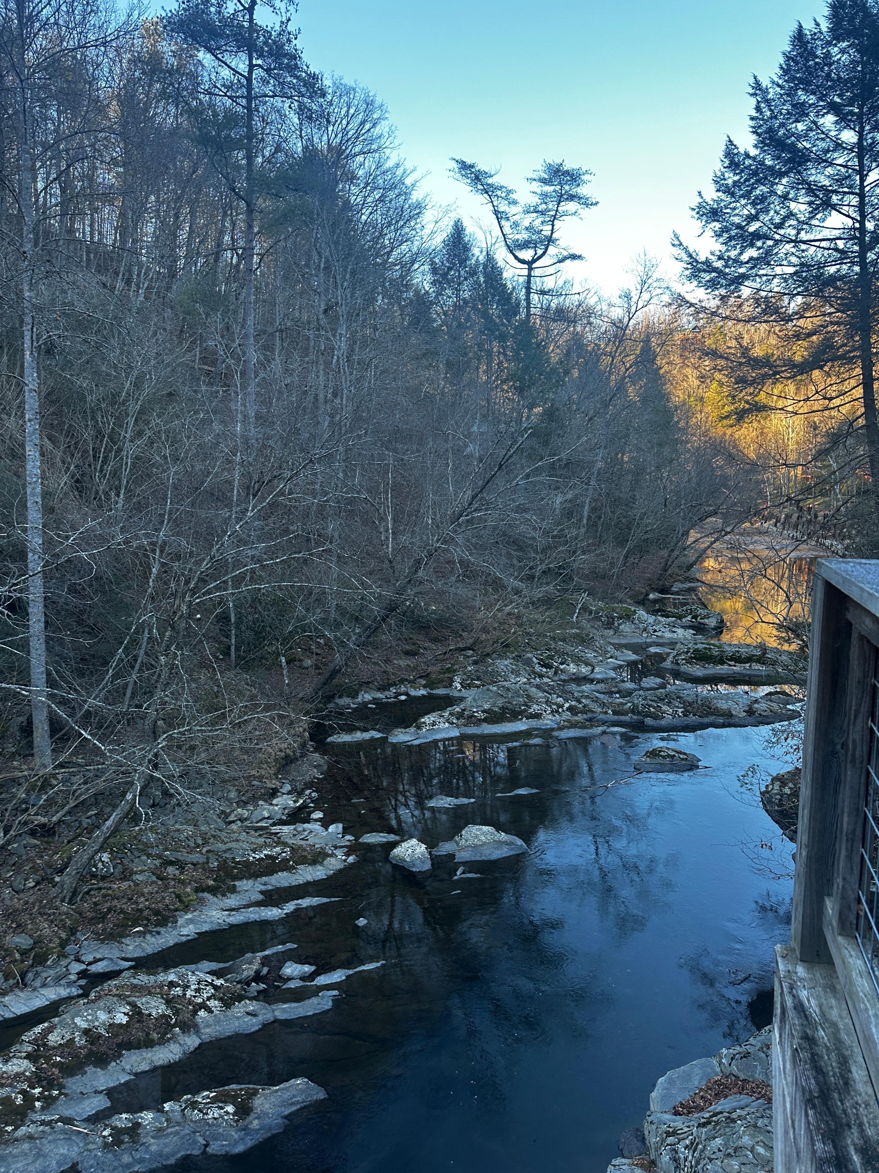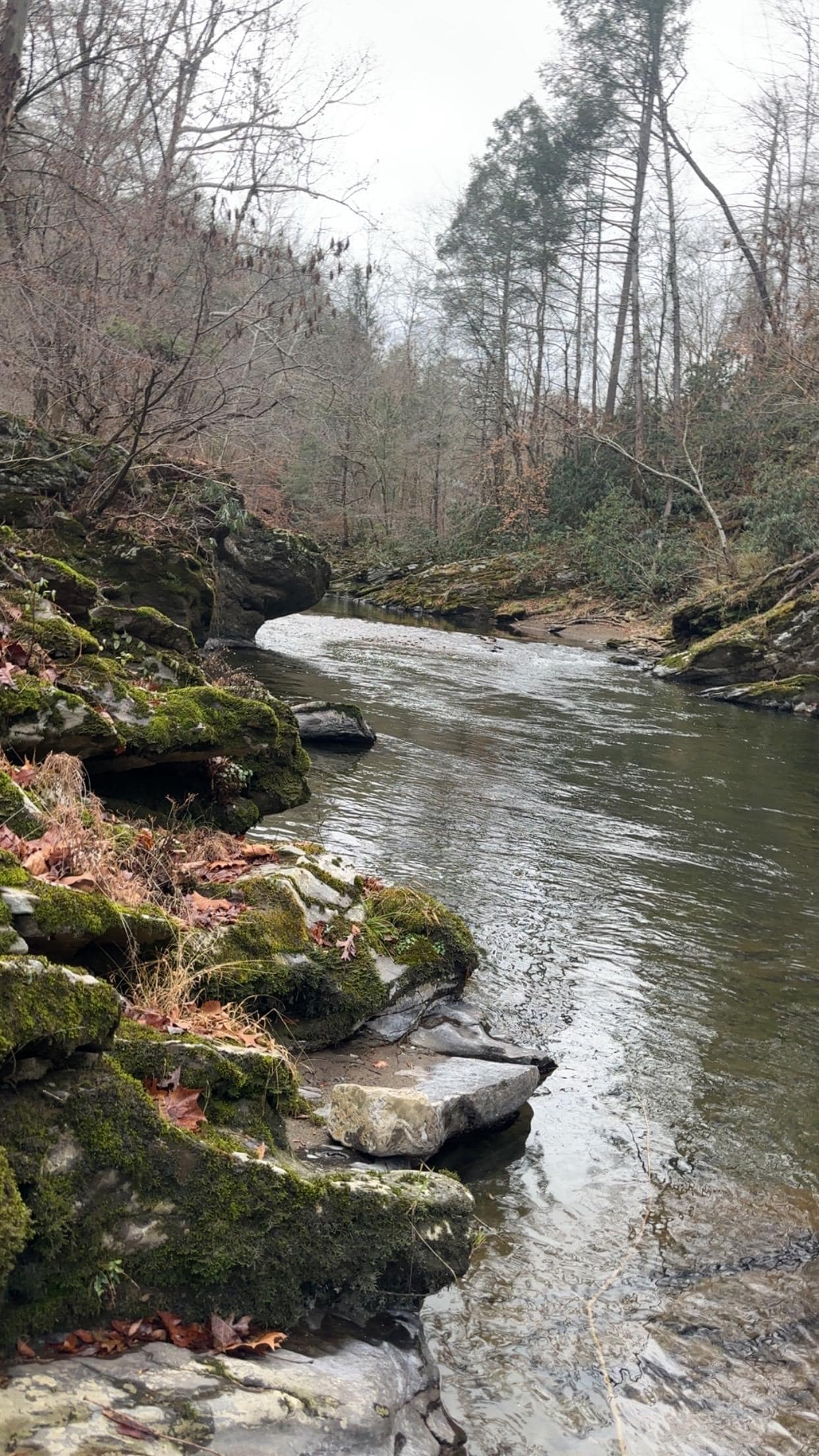 Beautiful riverfront cabin with super easy access for fishing or creek exploring! You can even fish from the lower deck of the cabin! It is that close to the water.