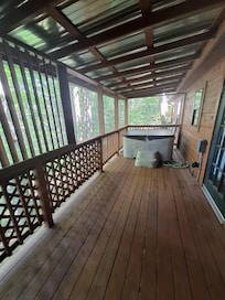 Discover Evening Shade, your cozy haven nestled in the Smoky Mountains. This charming cabin, ideally located between Gatlinburg and Pigeon Forge, invites you to relax and rejuvenate. Start your day with coffee on the front porch, then unwind in the hot tub after exploring. Inside, cozy up by the fireplace or enjoy the view from the windows. Retreat to the bedroom, featuring a Queen Sized Bed and access to the enclosed deck with a hot tub. Your perfect mountain escape awaits at Evening Shade.