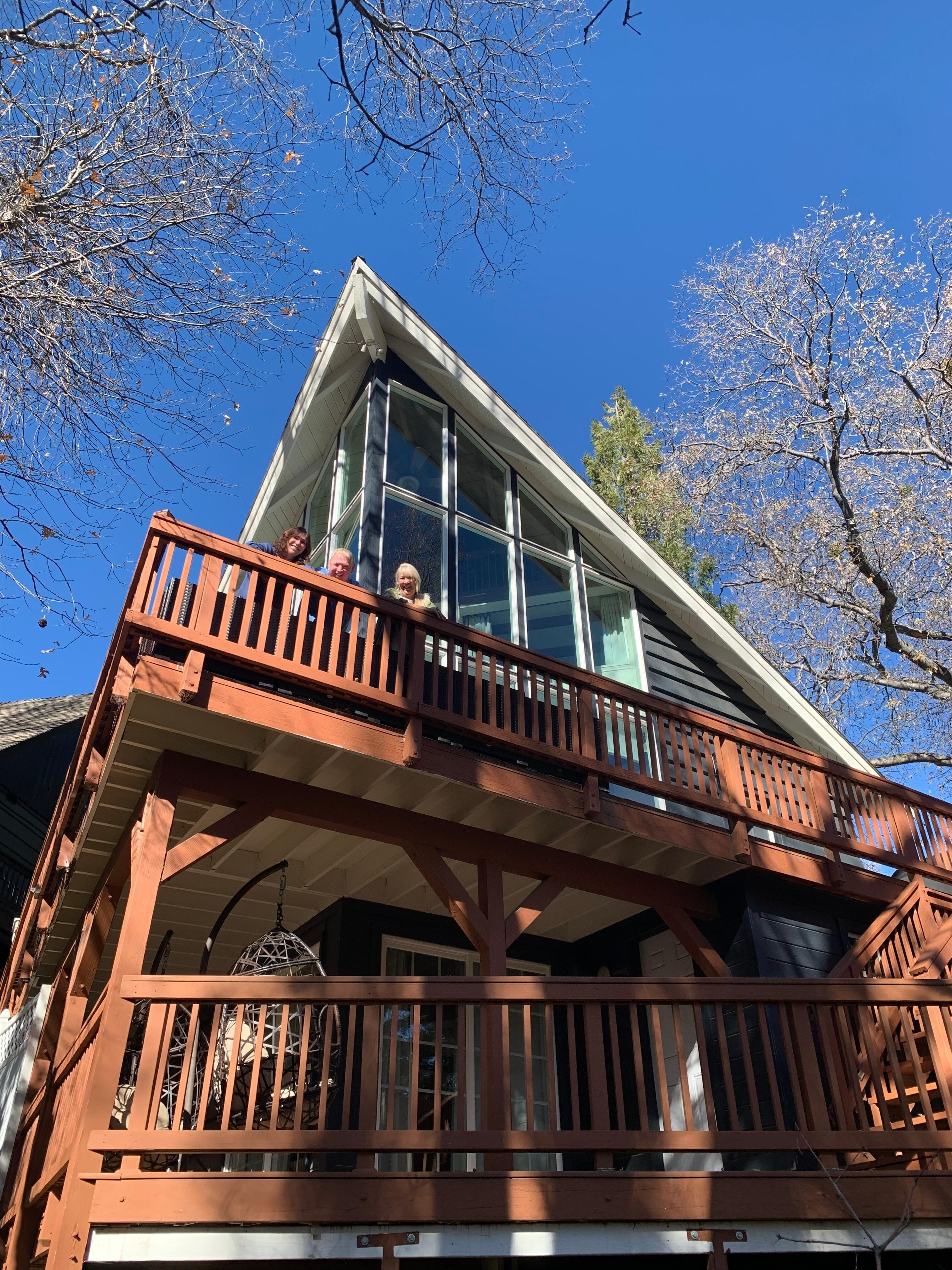Our cabin is a great place to relax and unwind. It is in a quiet residential neighborhood, very close to the walking trails surrounding Lake Arrowhead. Outside you’ll find a large wrap around deck, with patio furniture, a firepit, and BBQ. Inside on the main level - the living room has 25+ foot windows, a large sectional sofa, a gas fireplace, and Smart TV. Around the corner you’ll find a fully stocked kitchen, full bathroom, and HE Washer & Dryer. Upstairs has two bedrooms with a California King and a Queen Bed and desk. Downstairs you’ll find a family friendly room with a Queen Bed, a pullout sofa, a private full bathroom, a reading nook, a Smart TV, and a collection of board games.
