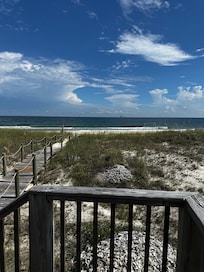 ✔️ Spacious Deck with Seating, BBQ, and Beach Access