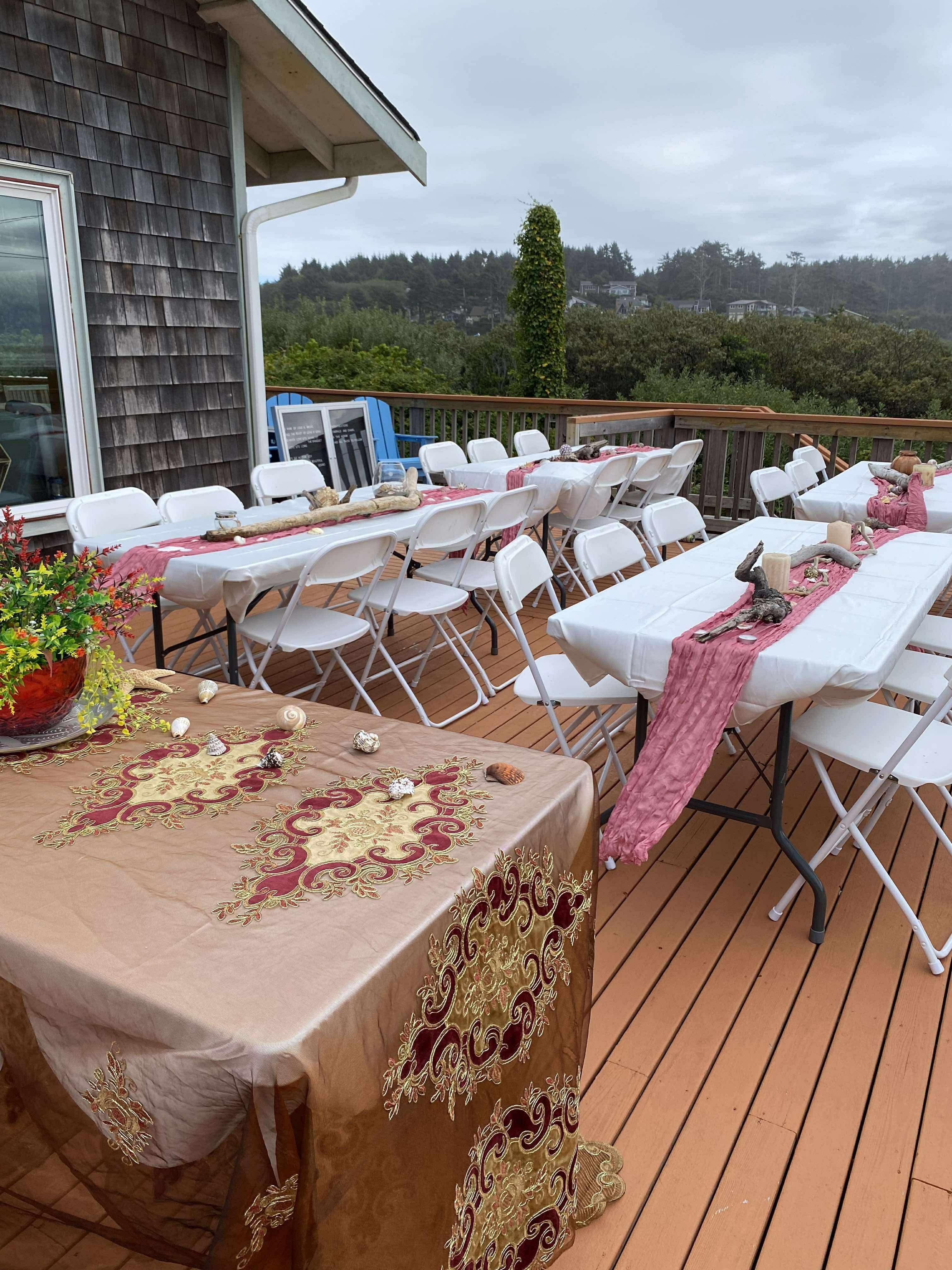 Whether you're looking to relax indoors or outside, we have everything you could need! Inside, there is a full kitchen with all amenities, including a microwave, fridge, dishwasher, coffee bar with wine fridge, and a Keurig. The dining table comfortably fits 6-8 people. There is a lovely variety of teas and coffees stocked. We also have a laundry room with a washer and dryer. Outdoors, you'll find a wrap-around deck with another dining space, fire pit, and a hot/cold outdoor shower for rinsing off after a day of sandcastle building or clam digging. And the perfect storm watch base, king tides viewable from almost every room in the house. Our discounted winter rates can’t be beat.