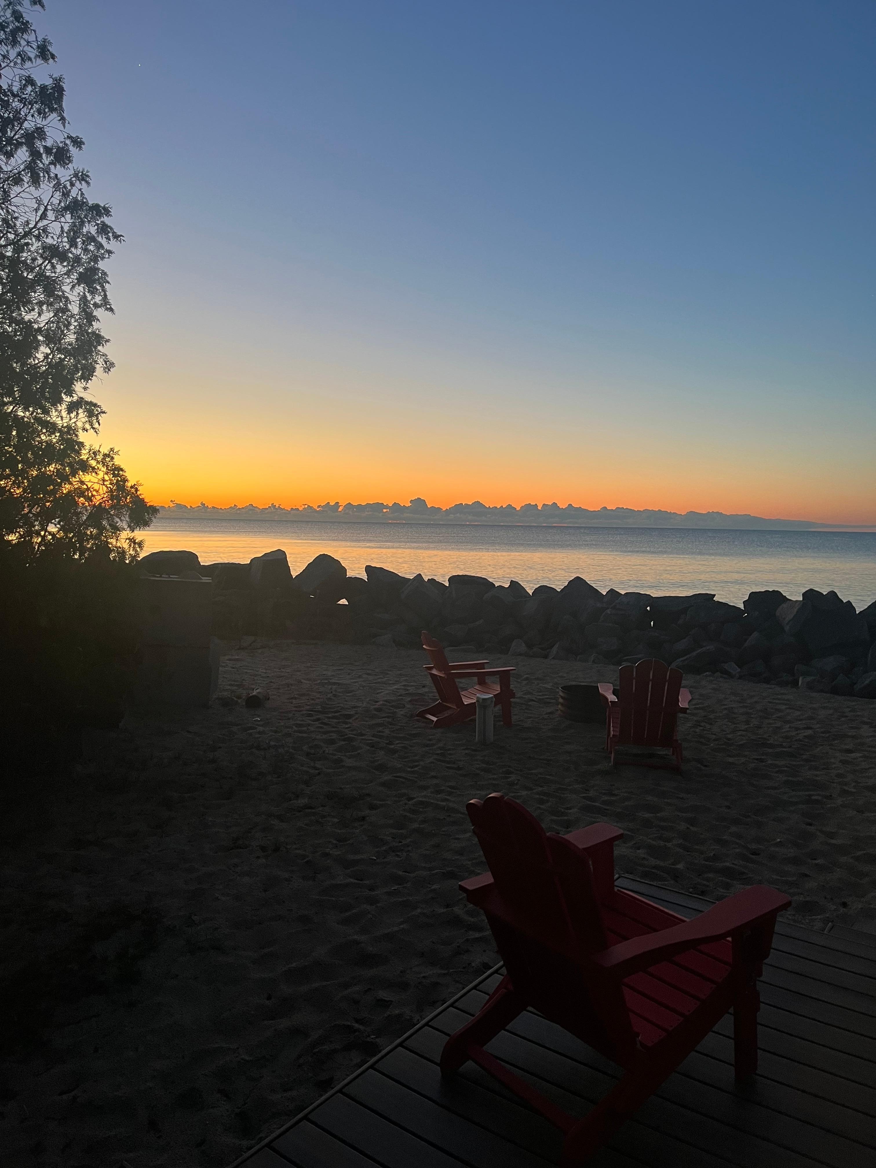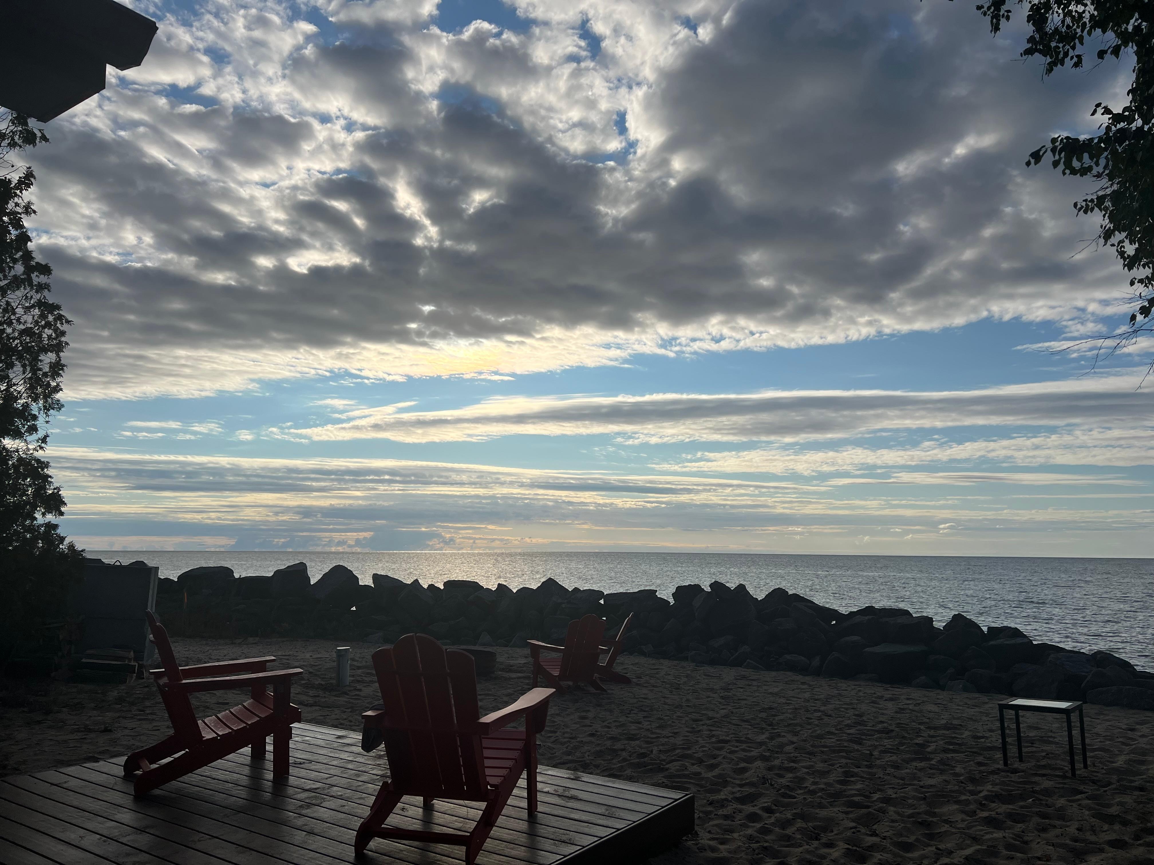 On The Rocks is a relaxing cottage located on Lake Huron. Come enjoy the view of the water, the morning sunrise, and relax in the sunshine during the day or by the fire pit in the evening. Only 5 min north of downtown East Tawas. Quite, private setting. Enjoy the BBQ or head into town and let some else do the work for you. Just minutes away from the state park with a great beach and lighthouse.