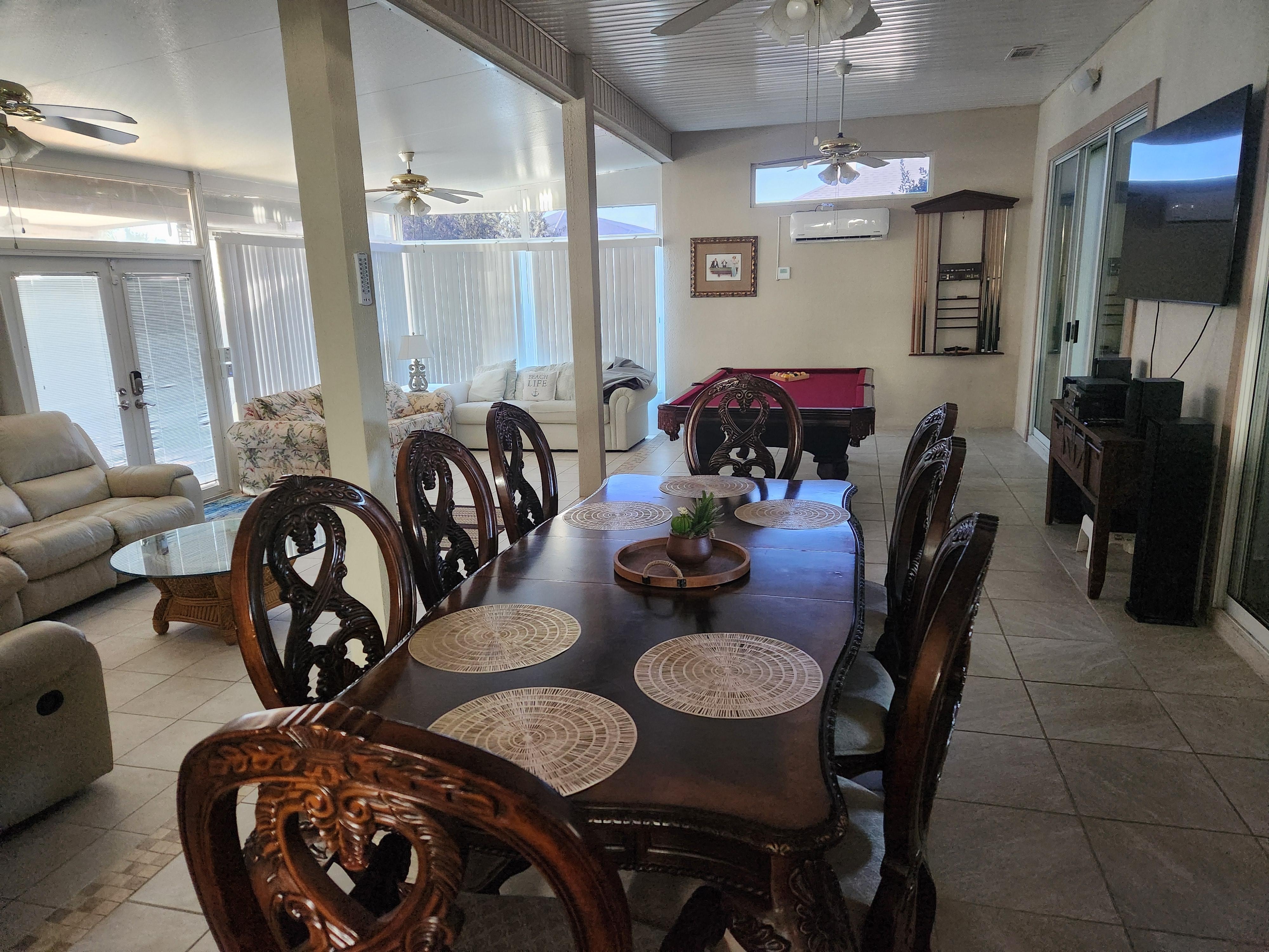 There is also a Queen Sofa Bed in the Huge Entertainment Room, which also includes a Pool Table, 70 inch Smart HDTV, DVD Player and High Power Stereo System with Bluetooth. This is a favorite area for Family gatherings and includes seating to easily accommodate a very large group in 3 Sofas and a Loveseat with 4 recliners.