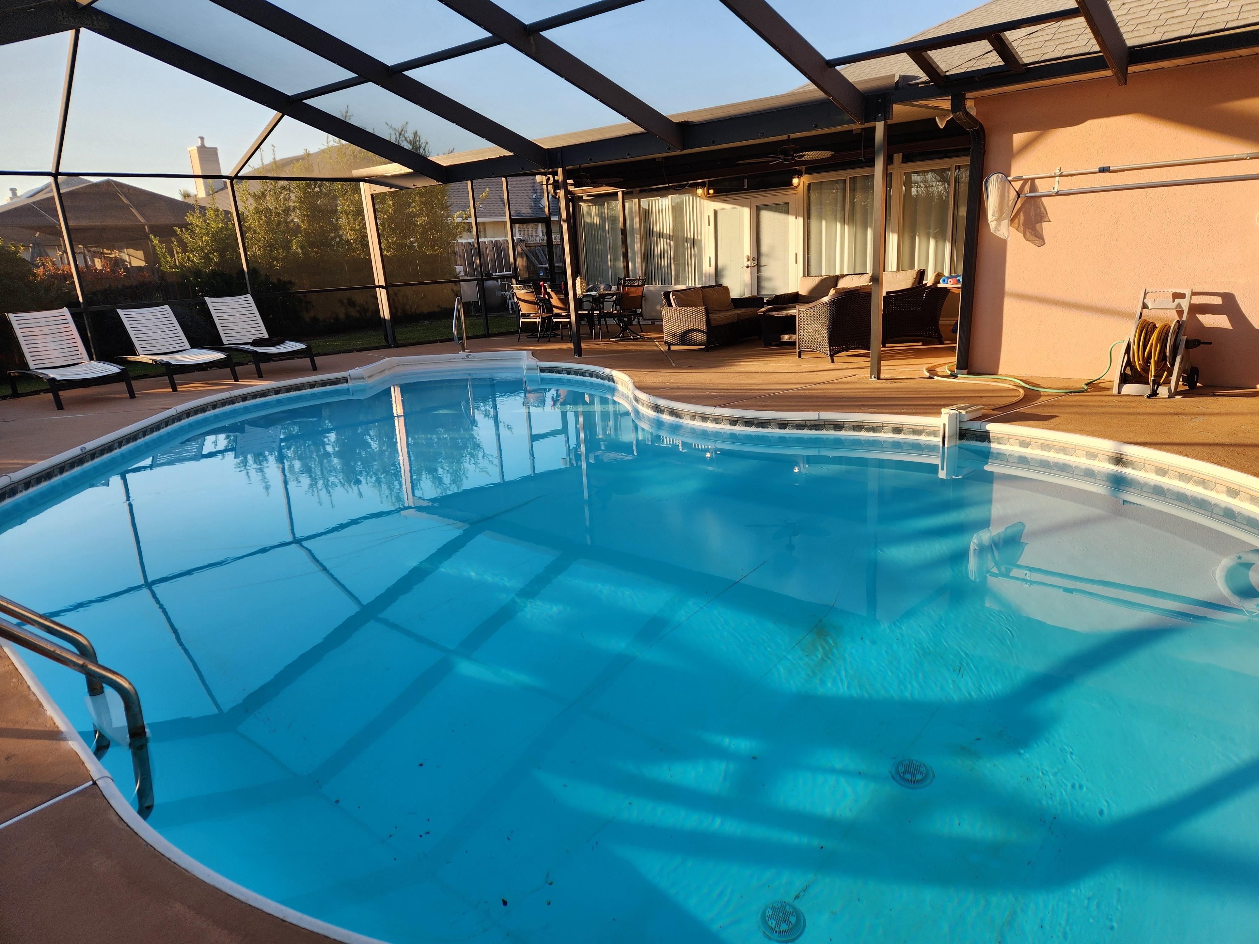 This spacious and open 2850 SF Luxury Stucco Home with HEATED Private Swimming Pool is located just off Gulf Beach Highway and Big Lagoon, in a popular subdivision, close to the beach and NAS.