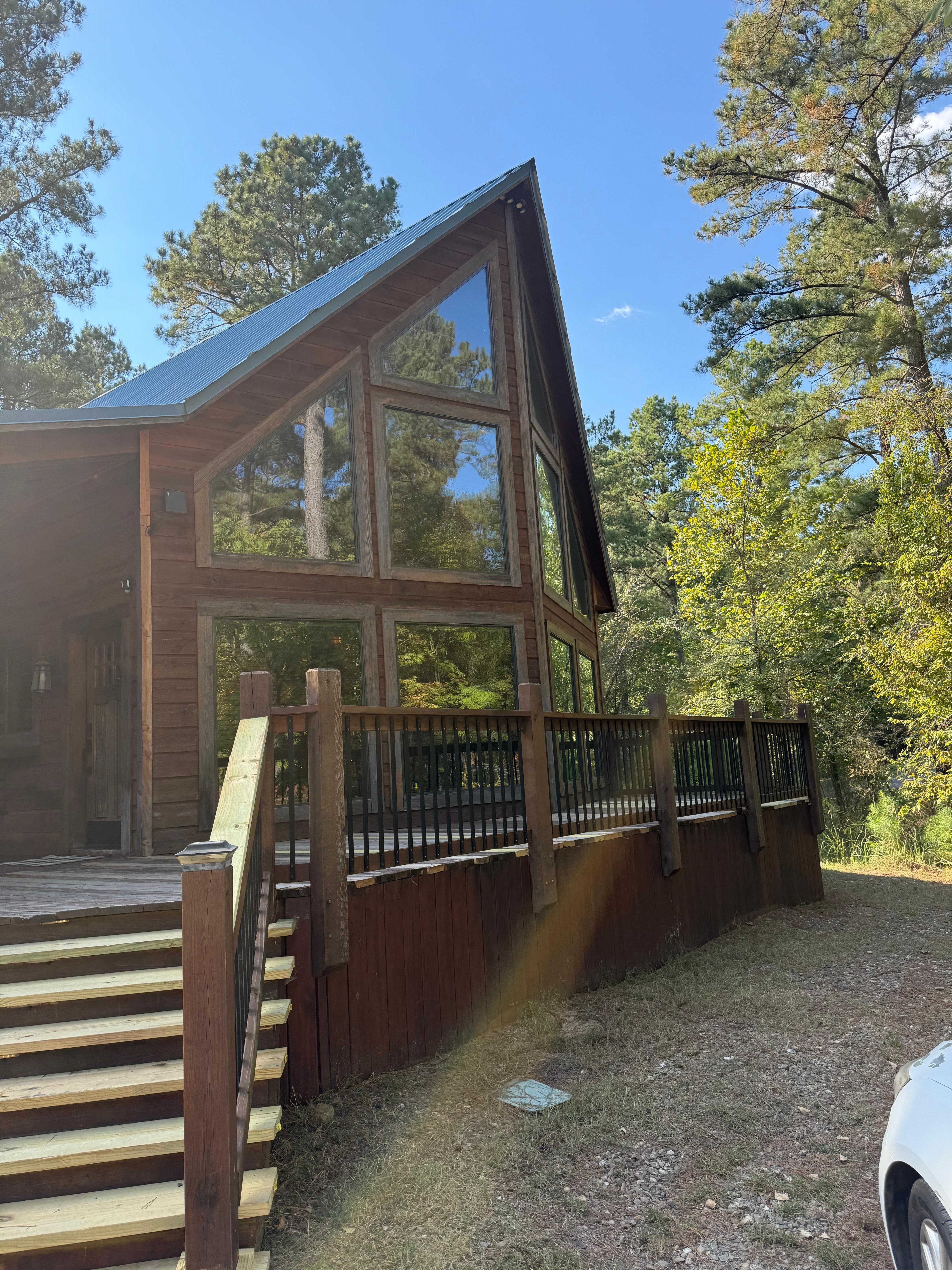 A Little Knotty can accommodate up to 6 guests in its 2-bedroom, 2 bathrooms (queen sleeper sofa available in living room). It’s nestled off a dead-end road on 1.25 acres. The main living area is a gorgeous open space and has an entire wall of beautiful windows that lets the morning sun warm the room.