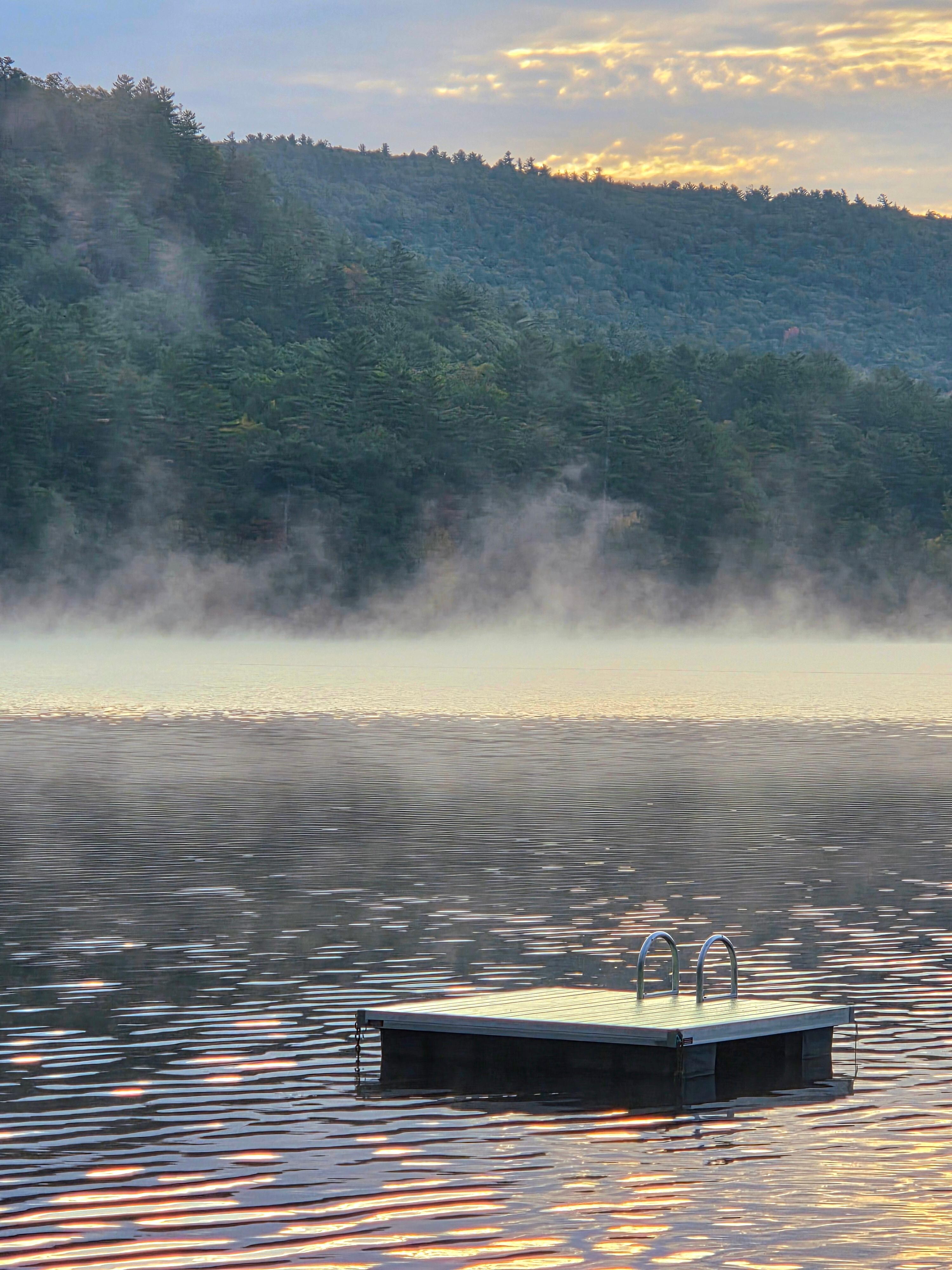 The stars of the show at Big Vista are the incredible views, covered screen porch, main deck, private floating swim dock, and your own private sundeck lakeside on a gorgeous Adirondack lake! Our floating dock is a blast for paddling from, swimming, jumping off, or just hanging out in the sun. Lake Luzerne is limited to 7.5 hp motors, so, without any speedboats buzzing around, the clean waters are ideal for swimming, fishing, and paddling.