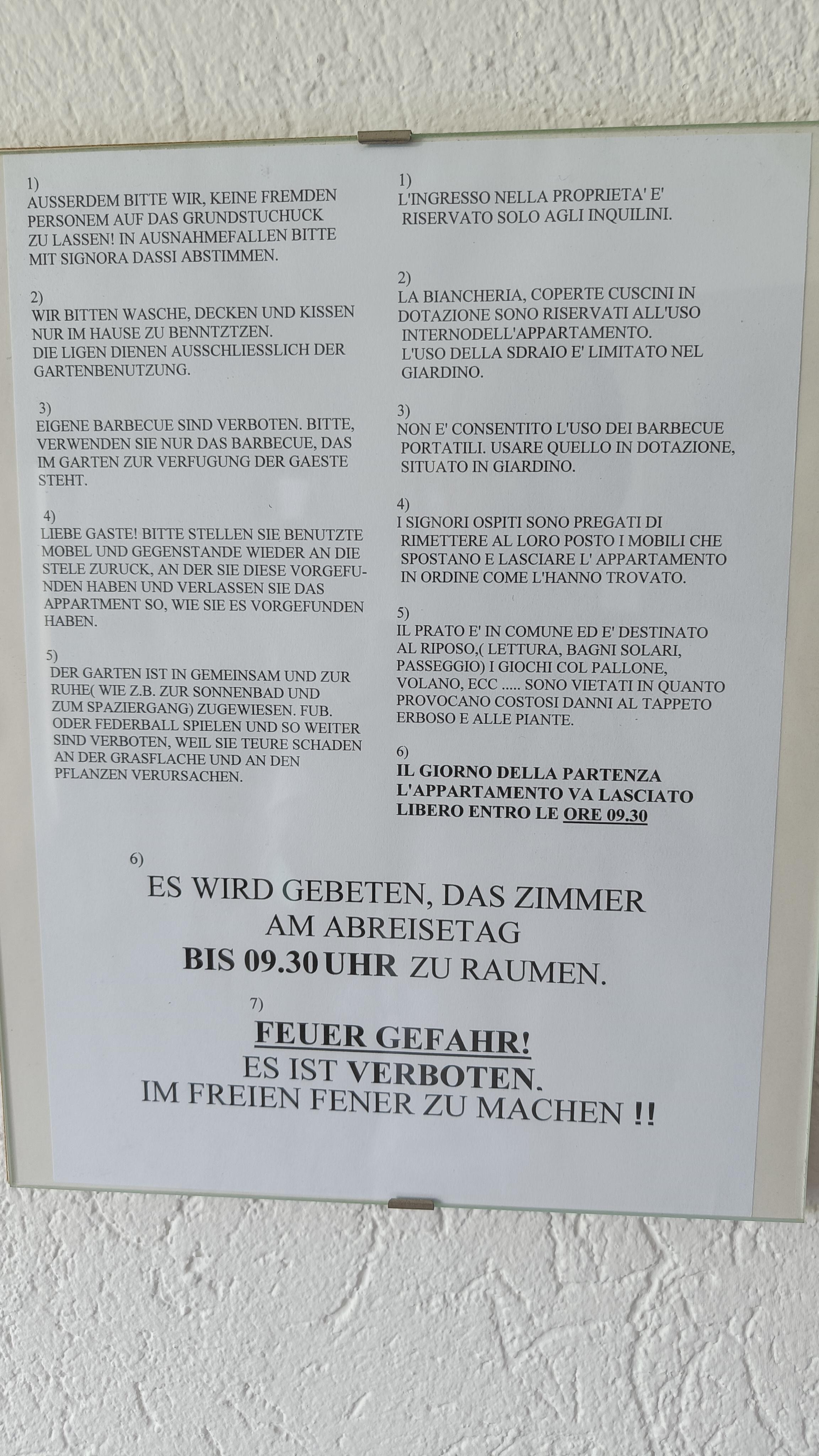 The three average furnished apartments are located in a sunny panoramic position about 600 m from the lake, the beautiful waterfront promenade with the pier and the place with its shops and restaurants away. The name "Villa Panorama" really is a part of this extraordinary spot, because you can enjoy a gigantic panoramic view of the lake and the mountains both from inside and outside. The approximately 1. 300 m² large well-kept garden property with azaleas, rhododendrons, camellias and palm trees completes the whole thing, and so you will take many beautiful impressions home with you. The fact that the three apartments are all located on the ground floor and have direct access to the communal garden, they are almost perfect for a complete rental with friends or family. If the rest should ever be too much, can connect to the free Wi-Fi Internet access with the rest of the world. By the way, if you want to escape nature and visit the Lombard metropolis of Milan, you can take the train from Porto Valtravaglia comfortably and stress-free in about 1 ½ hours. You park your car on the parking space belonging to the respective apartment within the enclosed property. Pets are not allowed. 5-room combination residential unit with approx. 130 m² living space, up to 10 persons: The 5-room combination residential unit consists of the three residential units "No. 1", "No. 2" and "No. 3", which are located next to each other on the ground floor , Distribution: 2-room apartment No. 1 with about 50 m² living space, up to 4 persons: light-flooded living room with large panoramic windows and lake view, pull-out sofa bed for 2 persons, satellite TV and exit to the terrace and garden Separate kitchen with Oven and 4-burner gas stove Bedroom with double bed (single mattresses) and lake view and exit to the terrace and the garden Bathroom with shower, bidet and window Approx. 15 m² large covered terrace with a gigantic view of the lake and the mountains opposite Ca. 1. 300 m² large garden with a gigantic view of the lake and the mountains opposite 2-room apartment No. 2 with about 50 m² living space, up to 4 persons: Light-flooded living room with large panoramic windows and lake view, pull-out sofa bed for 2 persons, satellite -TV and exit to the terrace and garden Separate kitchen with oven and 4-burner gas stove Bedroom with double bed (single mattresses) and lake view and exit to the terrace and into the garden Bathroom with shower, bidet and window Approx. 15 m² large, covered terrace with a gigantic view of the lake and the mountains opposite Ca. 1. 300 m² large community garden with a gigantic view of the lake and the mountains opposite 1-room apartment No. 3 with about 30 m² living space, up to 2 persons: light flooded living / bedroom with double bed (single mattresses), satellite TV , Panoramic windows, lake view and exit to the terrace and garden Small kitchenette with 2-plate stove Bathroom with shower, bidet and window Approx. 5 m² large terrace with a gigantic view of the lake and the mountains opposite Ca. 1. 300 m² large communal garden with a gigantic view of the lake and the mountains opposite