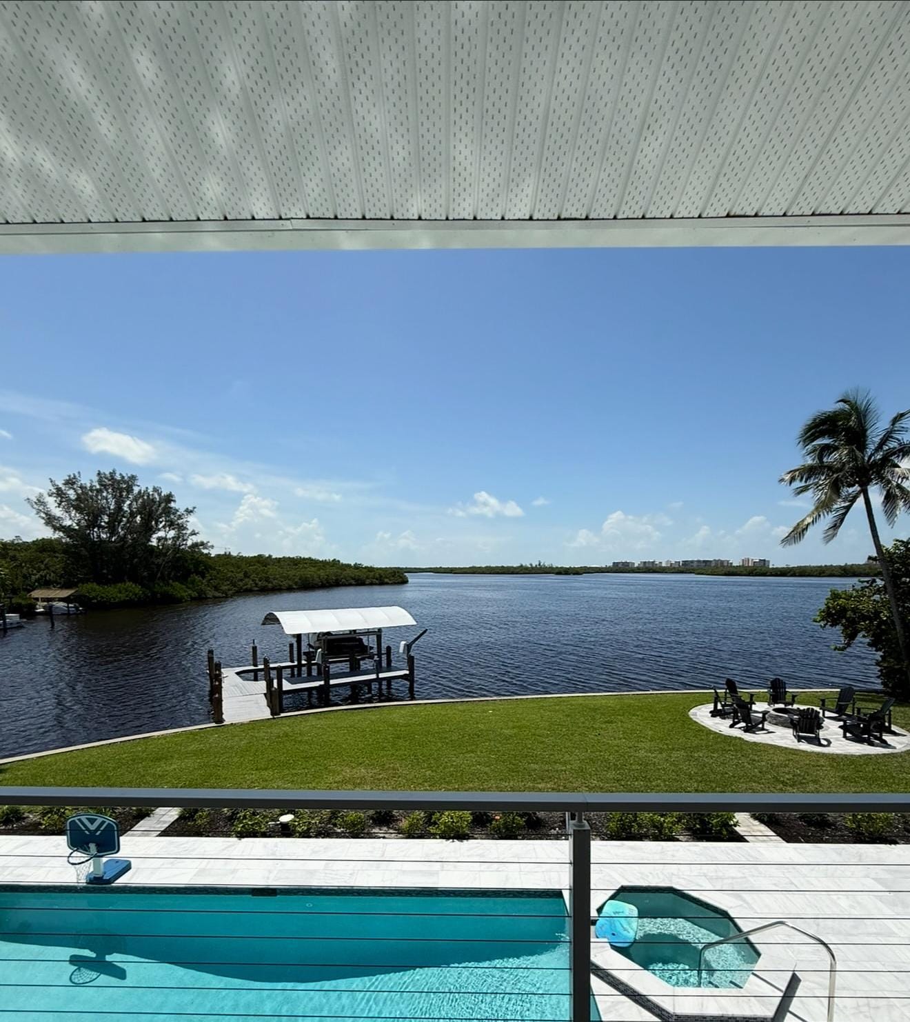 Outdoor Kitchen and Patio: Elevate your outdoor experience with a fully equipped outdoor kitchen. Grill your favorite meals while enjoying the fresh air and views of the bay. There is plenty of outdoor seating for al fresco dining, loungers around the pool for sunbathing or seating for simply sipping your favorite cocktails by the pool.