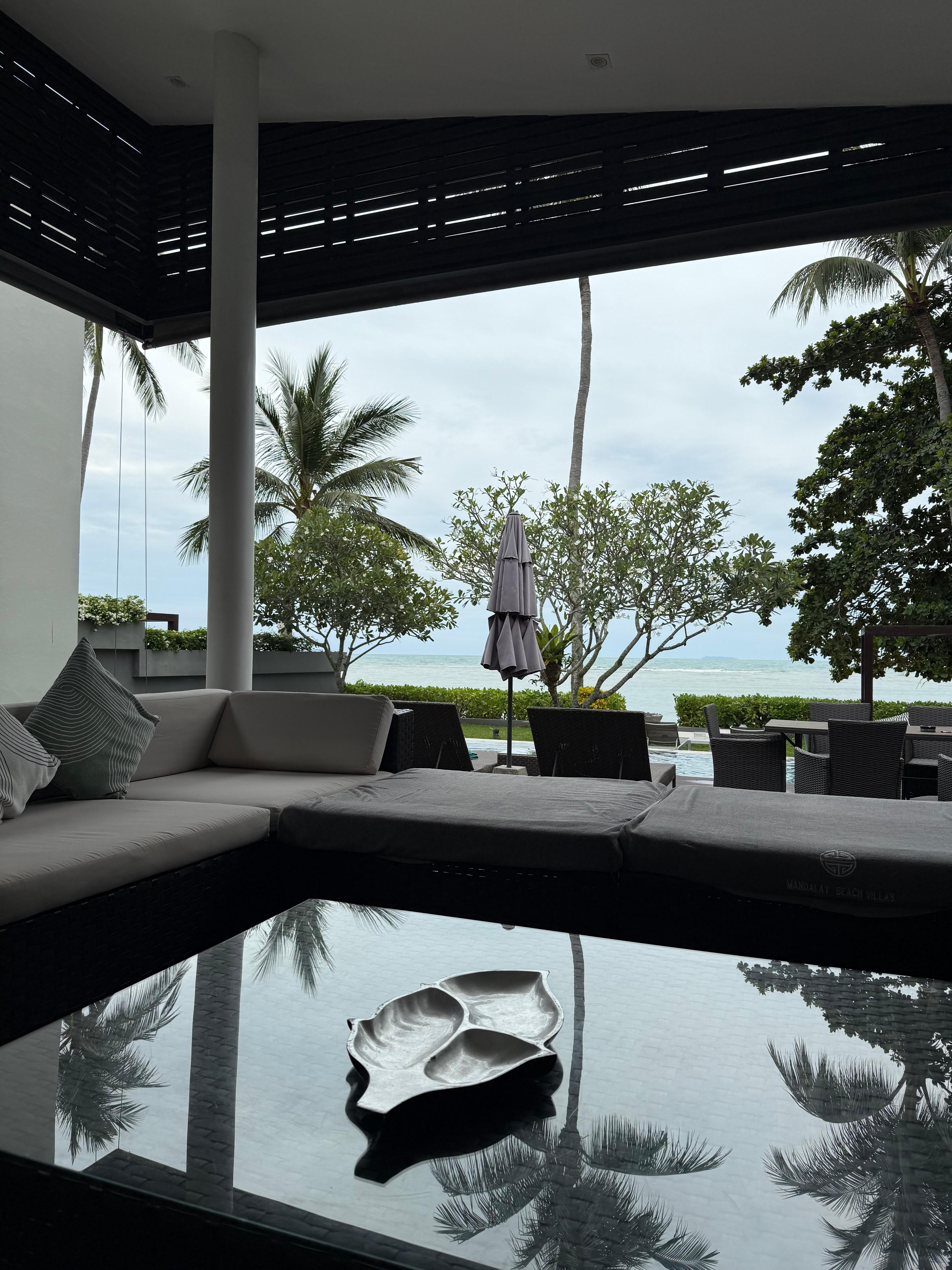 The beautifully appointed semi alfresco living area opens seamlessly on to the outdoor terrace and a beachfront garden lies just beyond the infinity pool. The infinity pool is bordered by a spacious deck and relaxation area, equipped with sun loungers and cosy armchairs, perfect for enjoying a Thai cocktail.