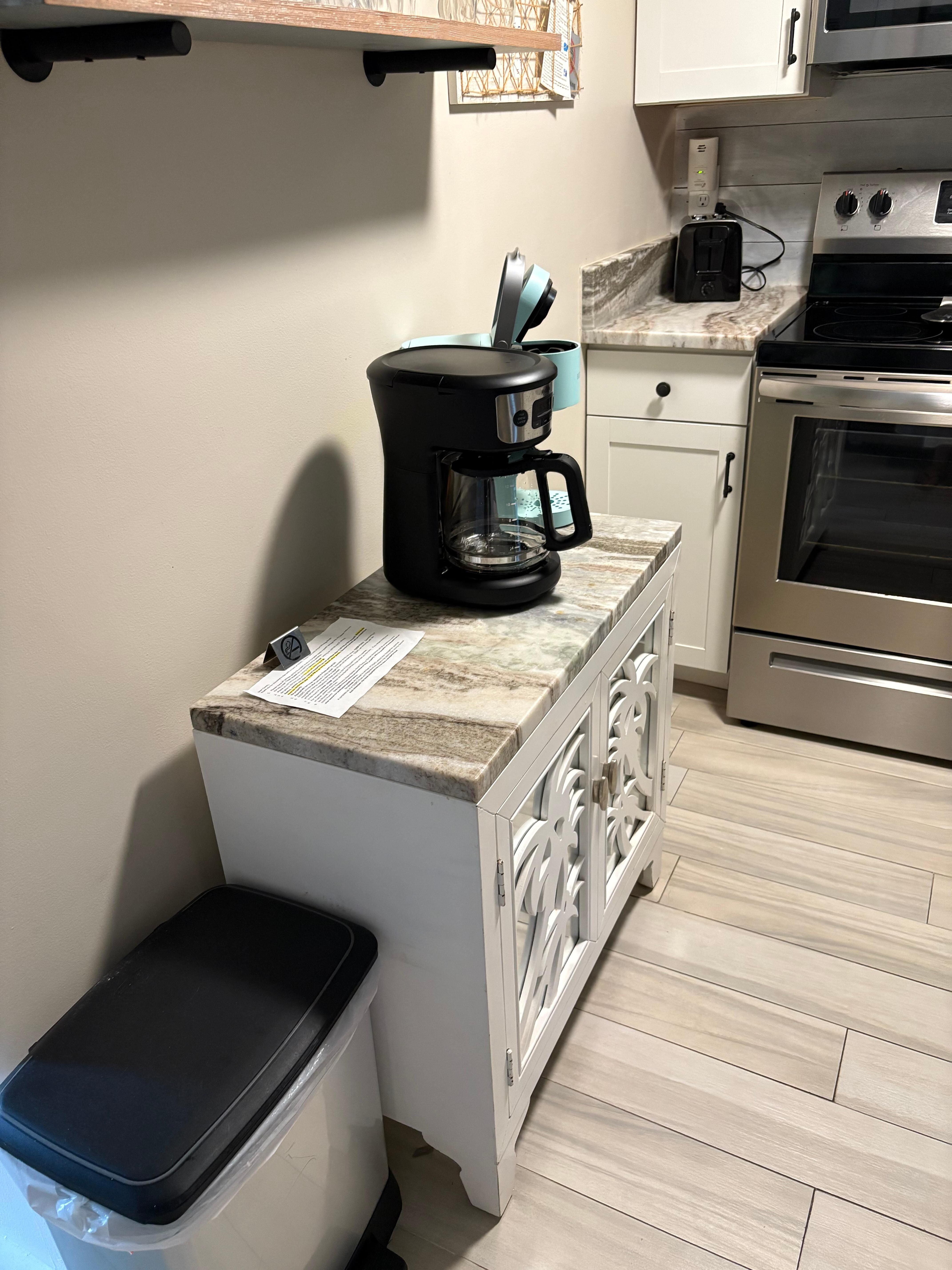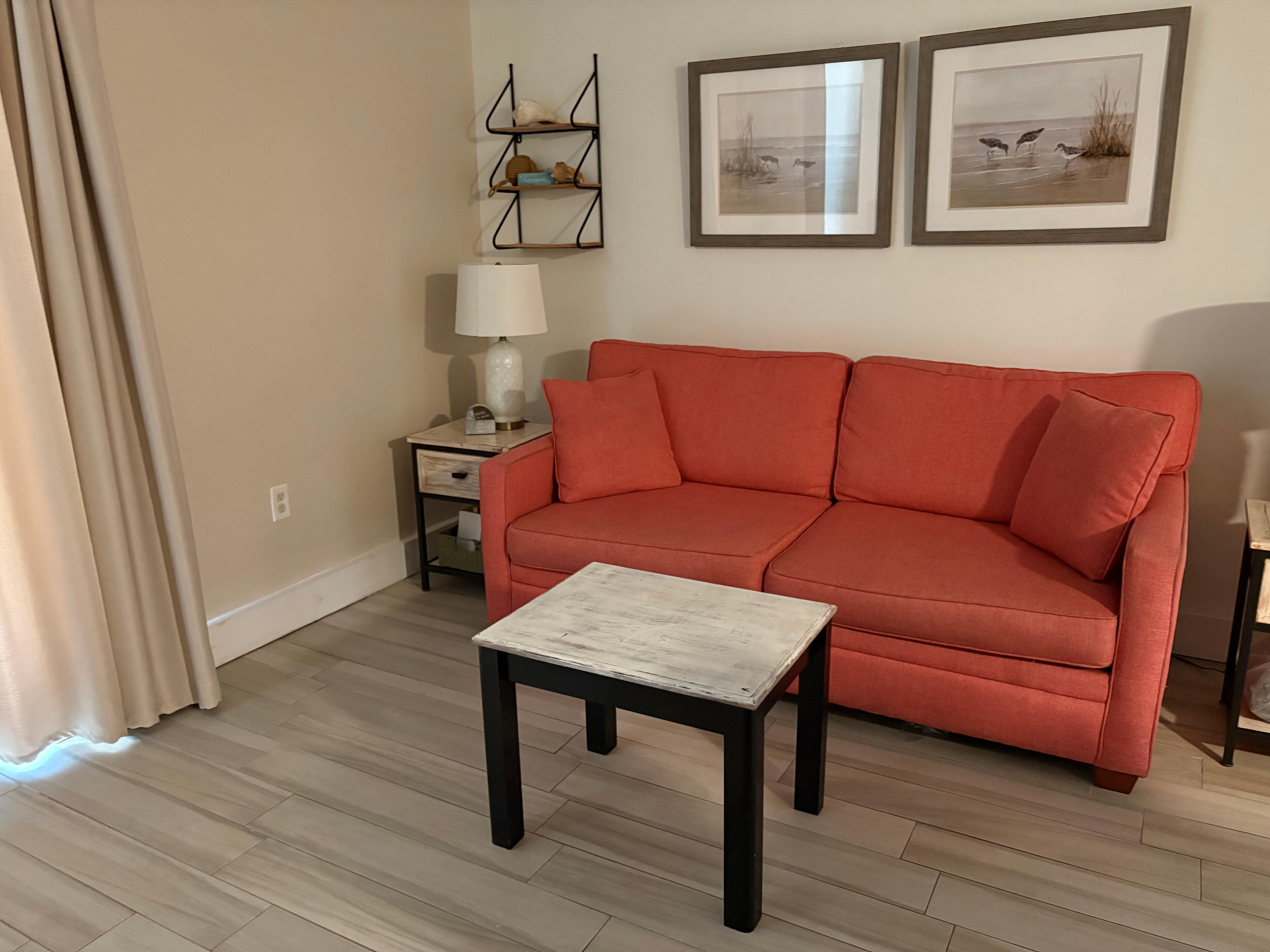 THE SPACE: Feel right at home in this coastal condo with every convenience you need to enjoy a vacation at the beach. Require a a view? We got it, with a beautiful view of the Gulf of Mexico from the living room! Take in a sunrise or sunset and enjoy the view from the patio. In the living room you have a queen size sofa sleeper and Roku TV with cable to enjoy. Love to cook? Relax, we have you covered. Our kitchen is fully stocked and includes all major appliances, an air fryer, along with Keurig coffee maker. There is no dining room, but there is seating for three at the bar. The master bedroom has a queen size bed and a Roku TV with cable. The full size bathroom is right next to the bedroom and has a tub/shower combo. For your convenience, we have a full size washer/dryer, free WiFi and worry-free key-less entry. NOTE: Elevator replacement is underway in Building A, Monday through Thursday 7:30 am to 5 pm until further notice. You may access the unit by the building B elevator.