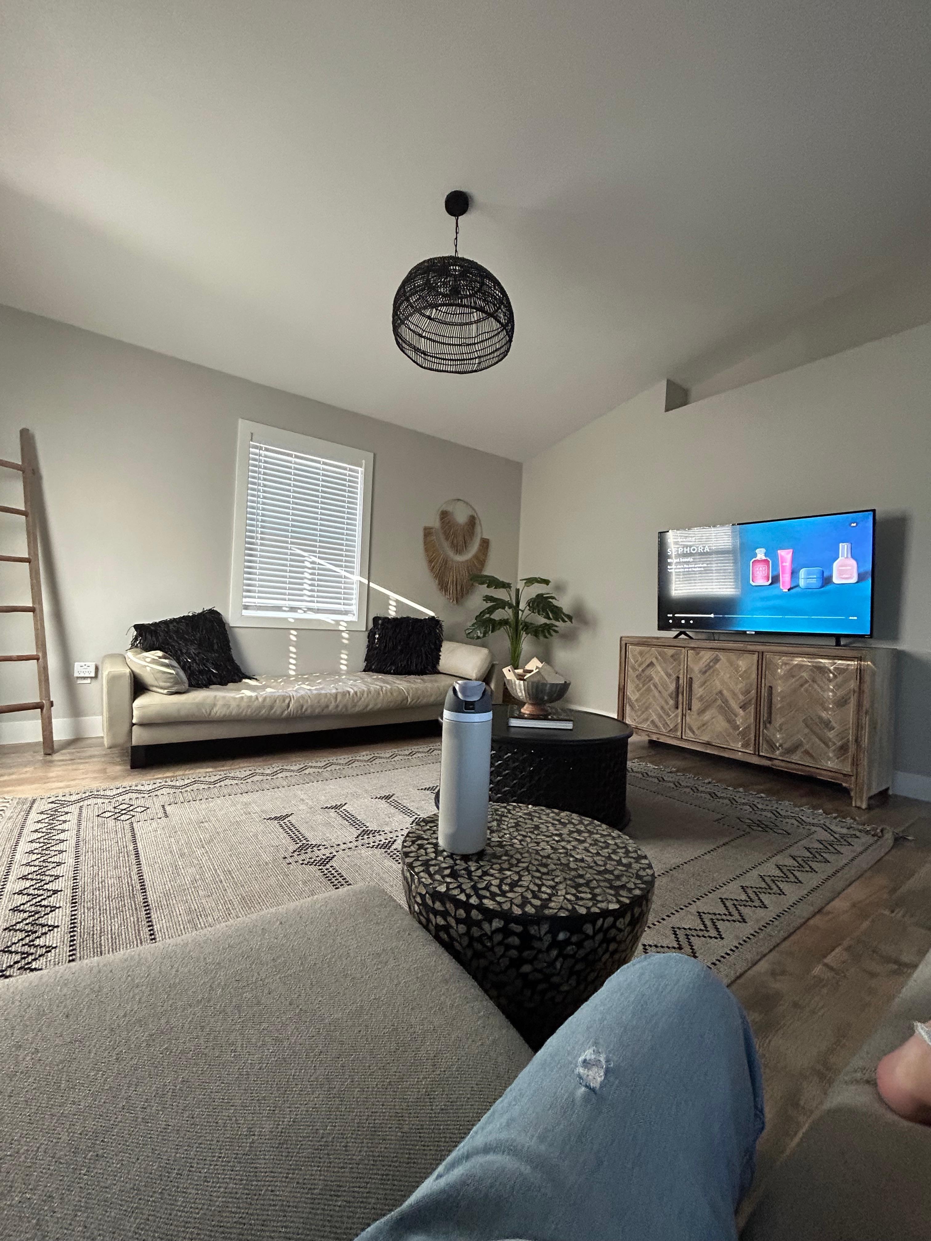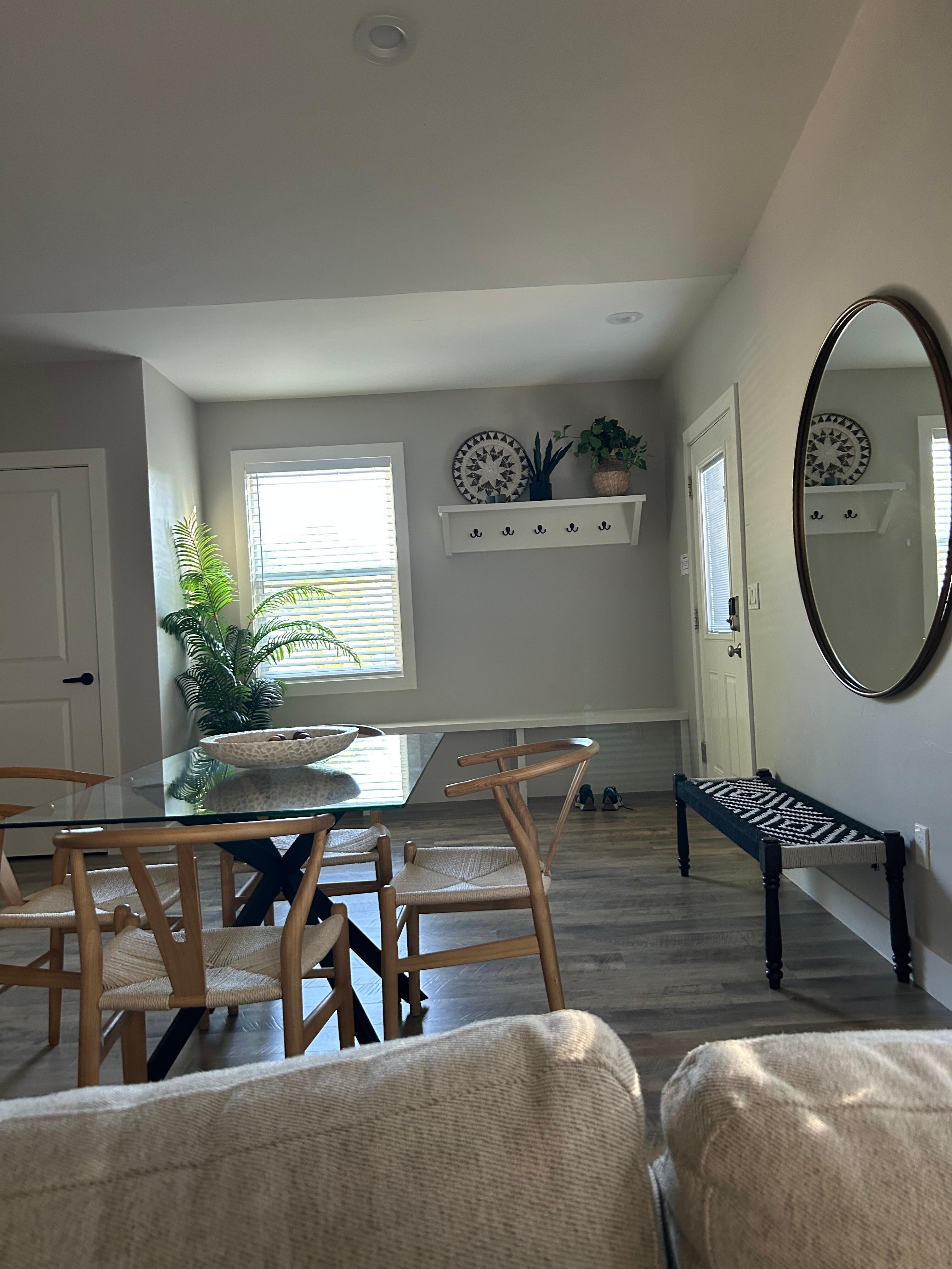 INDOOR LIVING: 50” Smart TV with complimentary Netflix, dining table with seating for 4, front entry with a coat closet, board games