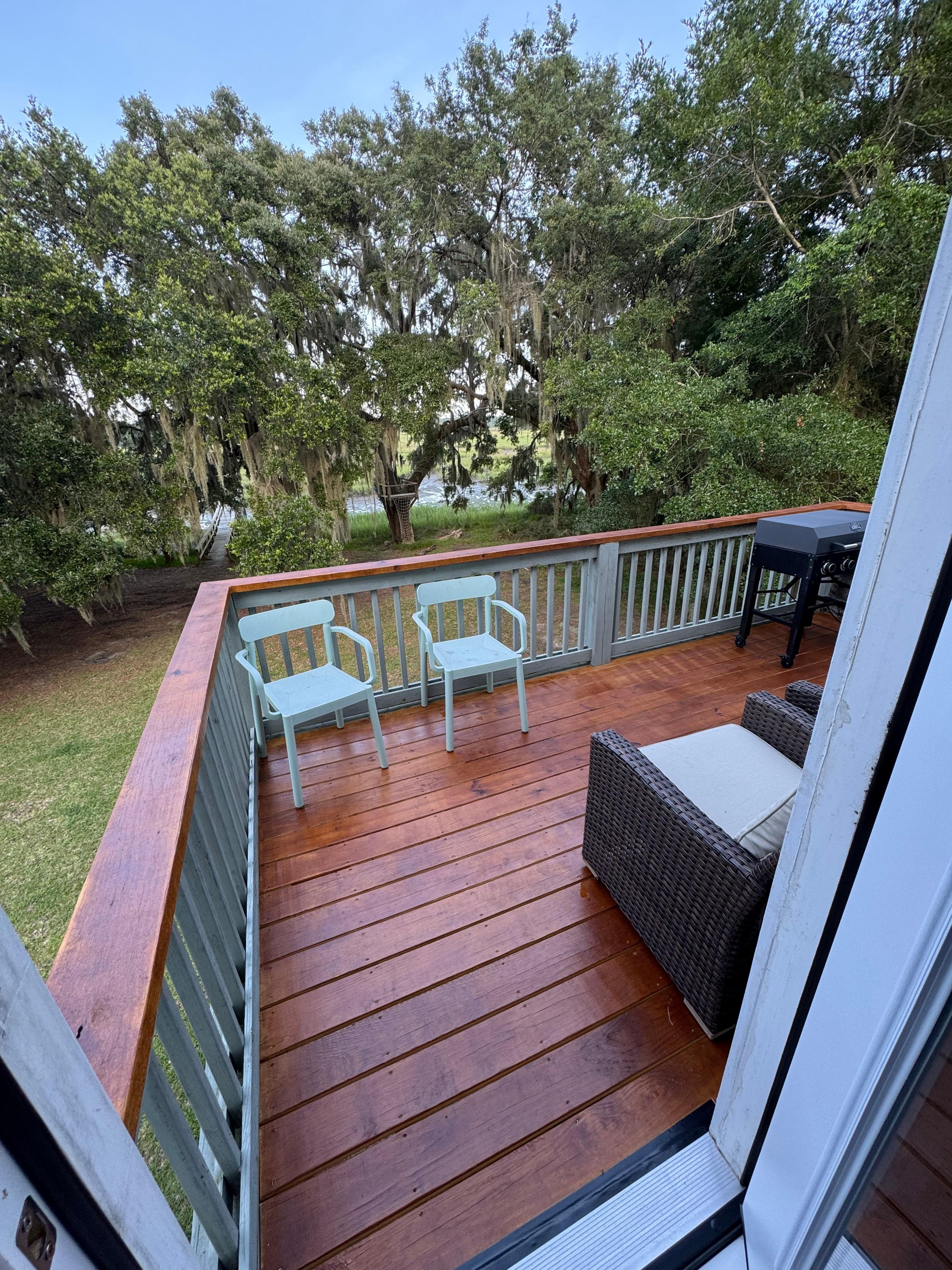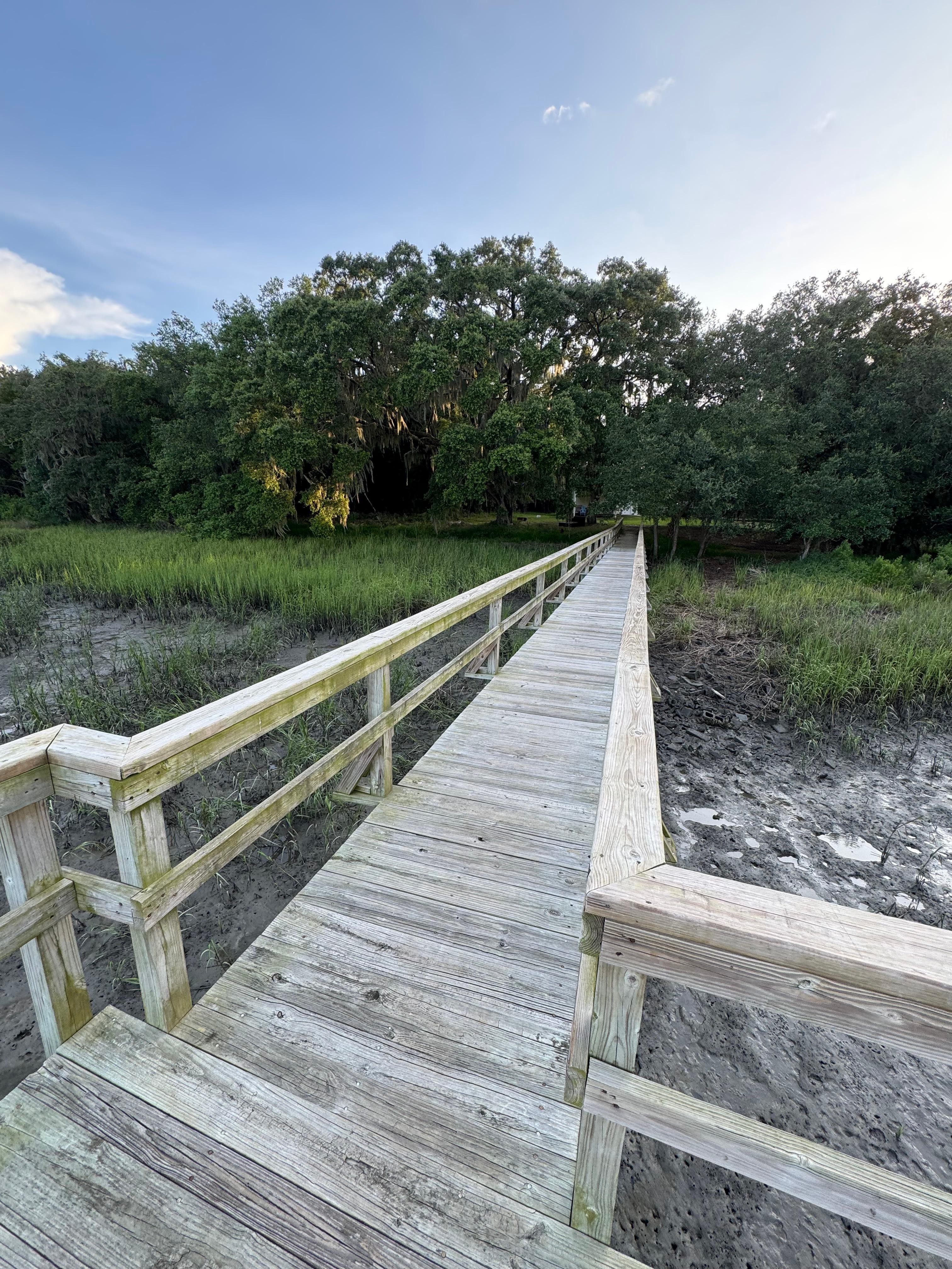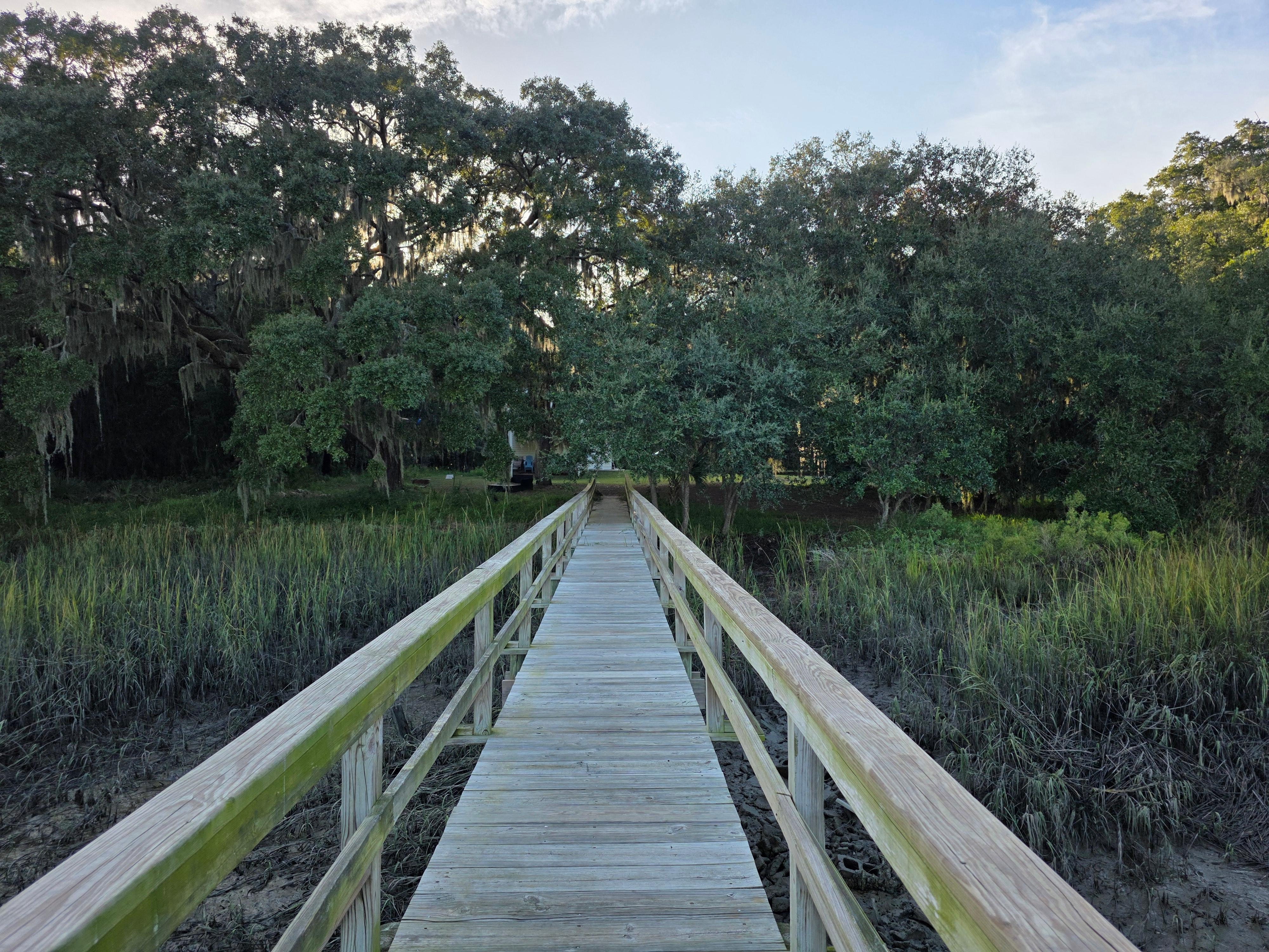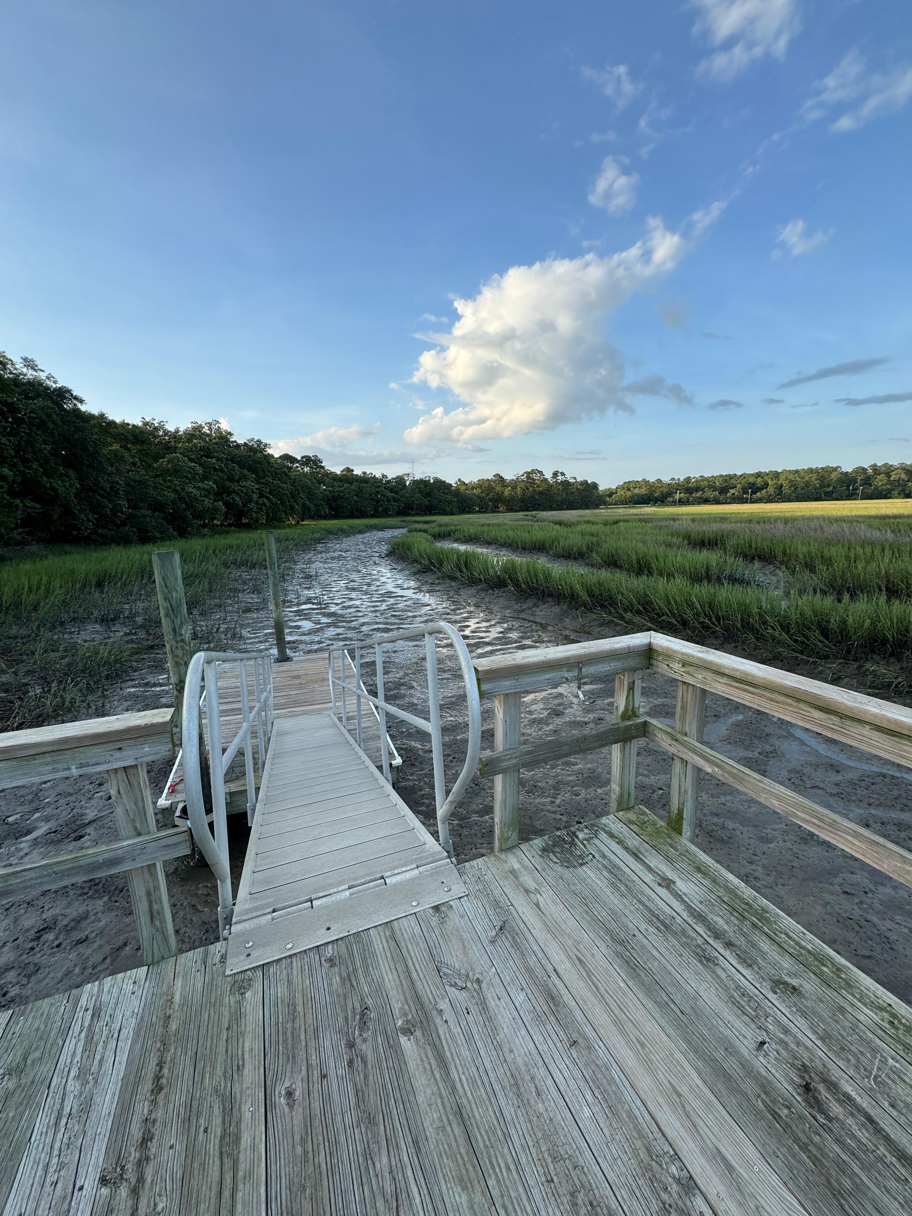 You'll have the entire 1 bedroom, 1 bath home on a private acre lot with private dock and beautiful views of the salt marshes of Capers Creek. Watch the sunrise over the marsh, then head just down the road to Low Country Cider Company for coffee and breakfast. Try fishing or crabbing from the dock and look out for the stingrays that come in and go out with the tide. Wallace boat landing is a short drive away to put your boat in. Cook your fresh catch in the full kitchen, on the gas griddle grill, or enjoy one of the great restaurants nearby. Also, keep your eyes open for deer out in the front yard.