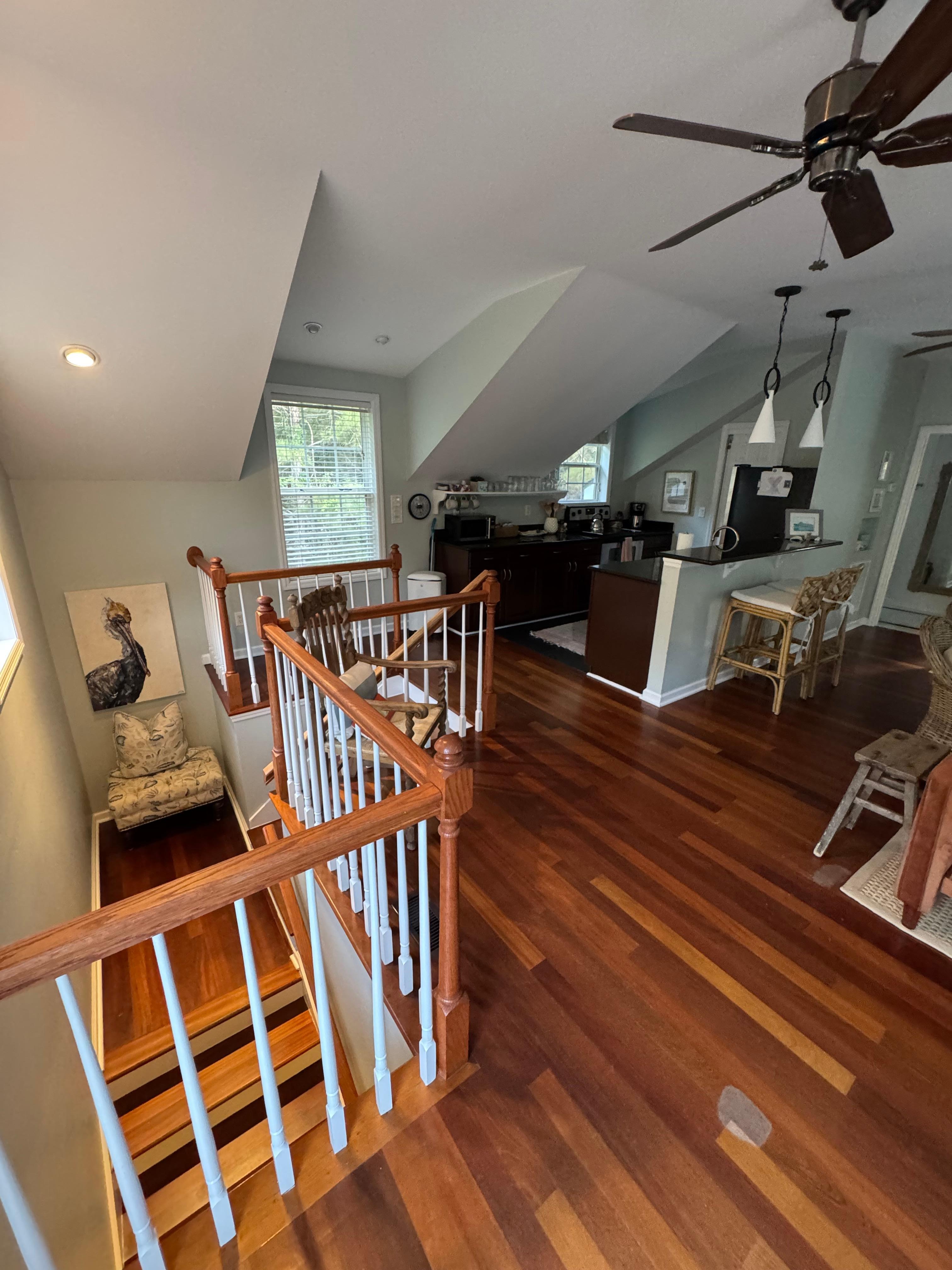Entire living area is upstairs above garage.