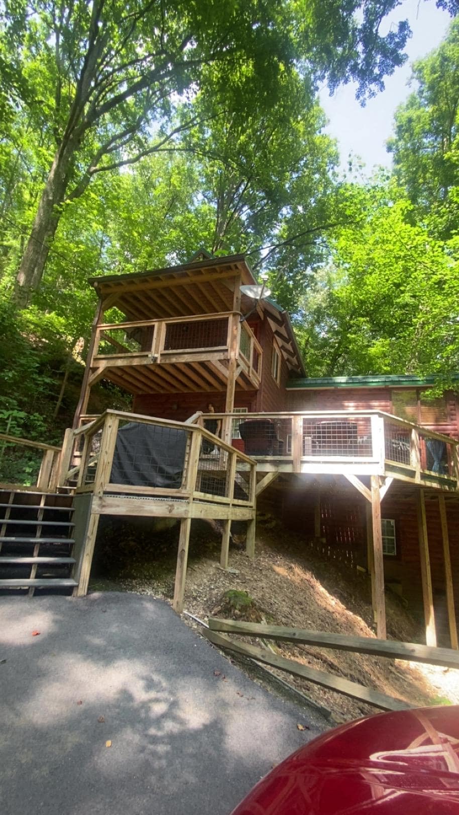 "Bubbling Creek" is a gorgeous 3 level log cabin decorated in western decor with all of the extra amenities, nestled in the 24/7 Guard gated community of the Shagbark Resort in a great location! You are literally 2 turns and 6 miles (only 10 minutes) from the Shagbark guard gate to the main parkway in Pigeon Forge and you come out at light #3 which is Wears Valley Rd., right in the middle of everything in Pigeon Forge! Something Great about the Shagbark Resort is all of the cabins are on at least 1/2 acre lots, so they are not stacked on top of each other like some resorts are!