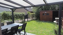Das Ferienhaus war mit allem ausgestattet, was wir für unsere Urlaub benötigen. Vor allem der eingezäunte Garten und das absperrbare Gartenhaus war für uns wichtig, damit wir unsere Fahrräder sicher unterbringen konnten.Das Bad war neu renoviert und in der Küche fehlte es uns an nichts. Die Schlafzimmer sind schön, bequem und nützlich eingerichtet.Stauraum war ausreichend vorhanden.Bettwäsche und Handtücher haben wir selbst mitgebracht, hätten wir aber auch mieten können.Es gab eine überdachte Terrasse mit bequemen Gartenmöbeln zum draußen Verweilen Bei Rückfragen war die Vermieterin immer sehr schnell erreichbar und hilfsbereit.Wir würden auf jeden Fall wiederkommen. Leider mussten wir am Anfang unseres Urlaubs zuerst einmal den Anfluss der Dusche reinigen, da das Wasser nicht abgelaufen war und die Duschtasse volllief und obwohl in der Beschreibung angegeben war, dass Toilettenpapier und Seife vorhanden sind, war nur eine halbe Rolle Toilettenpapier da und den Seitenspender war lediglich der Boden bedeckt. Auf diese Dinge sollte der Reinigungstrupp unserer Meinung nach mehr achten.