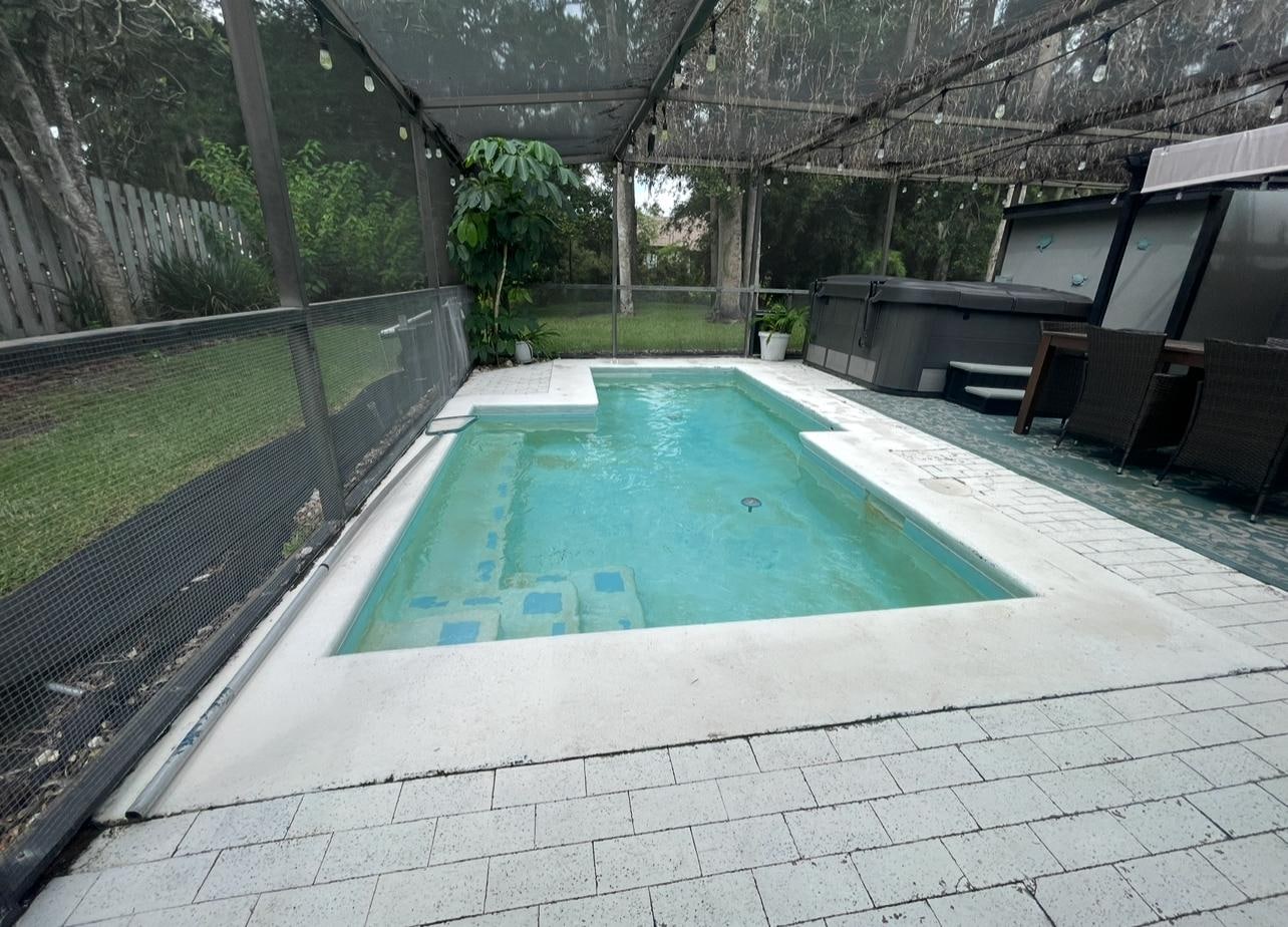 Of course, you can also simply relax in the screened patio featuring a luxury 6-person hot tub with a lounge seat, an outdoor dining area, a conversation area with fire table, and a small pool. Cook dinner for you and guests on the backyard grill station or in the full-service kitchen.